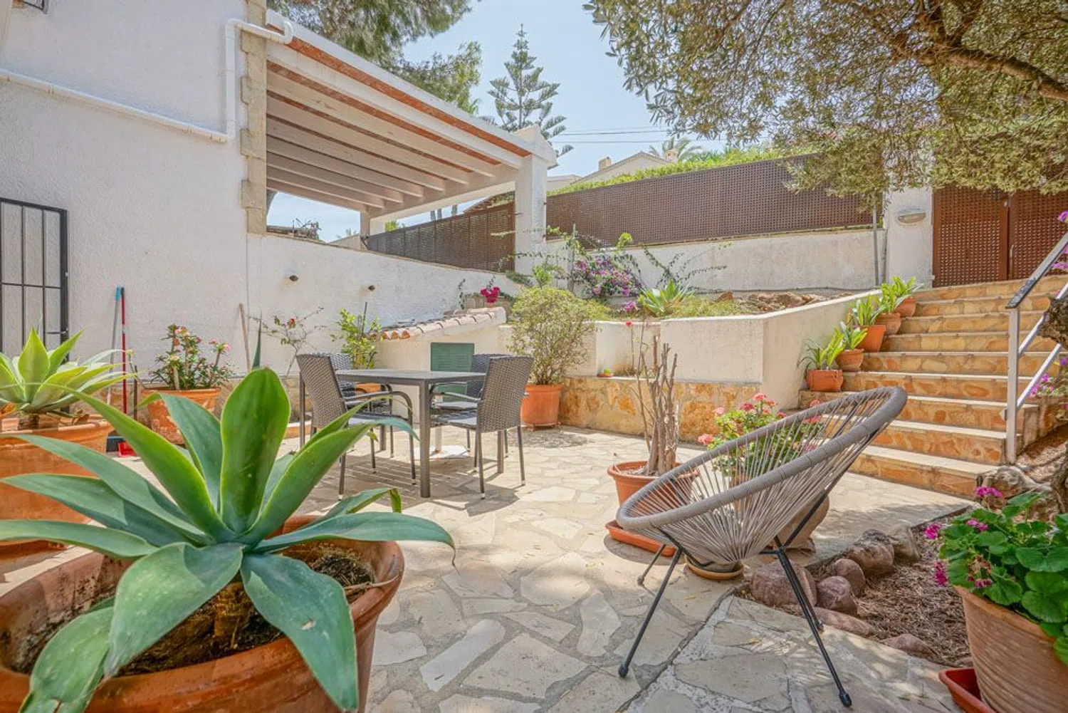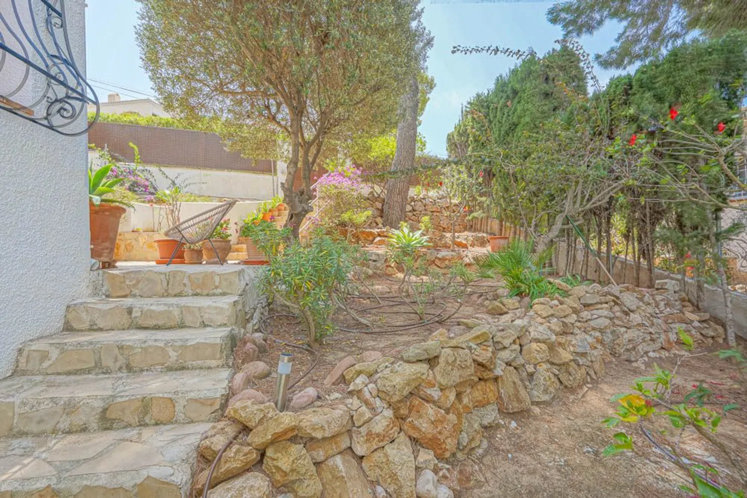 На верхнем этаже расположена главная спальня с ванной комнатой и рабочим кабинетом, а также просторным балконом, откуда открываются великолепные виды. Вилла окружена средиземноморским садом и включает в себя солнечную террасу с большим бассейном. Всего в 10 минутах можно добраться до пляжа с песком и оживлённой набережной, где находится множество отличных ресторанов и баров. В 10 минутах пешком расположена природная резервация, где можно совершить несколько живописных прогулок, включая путь к идиллическому пляжу.