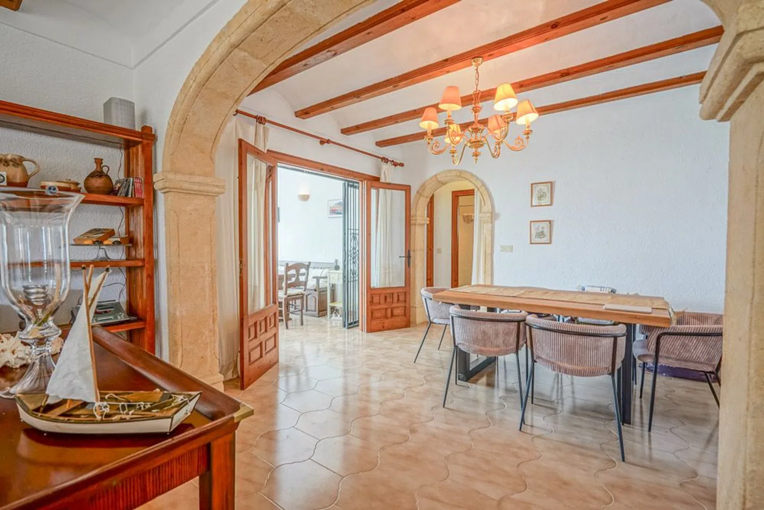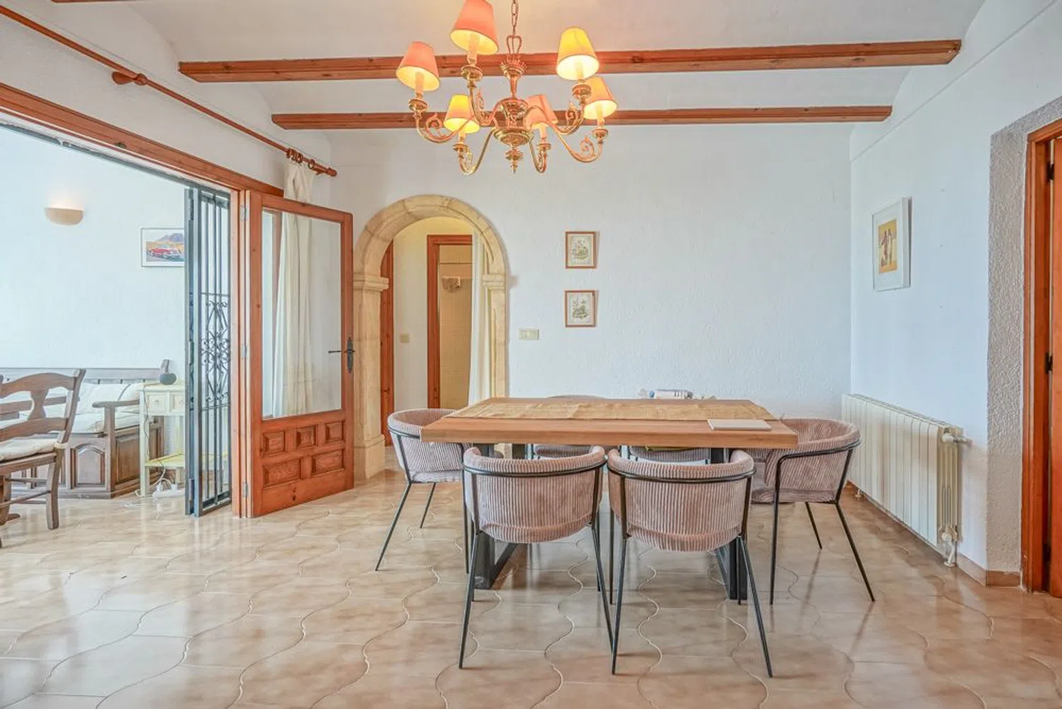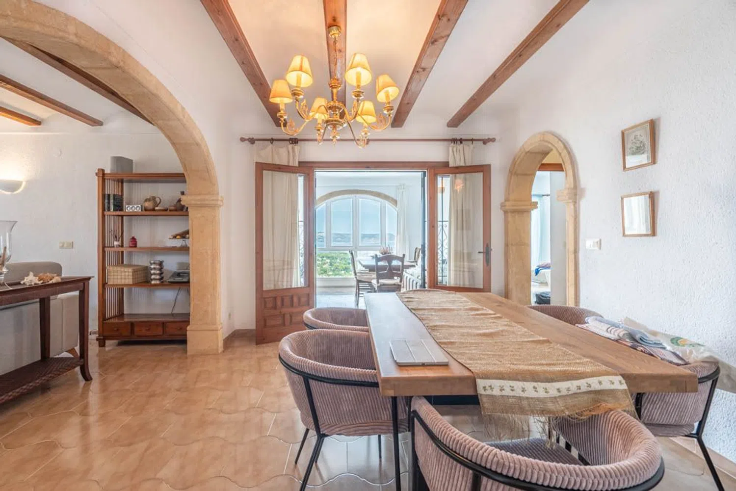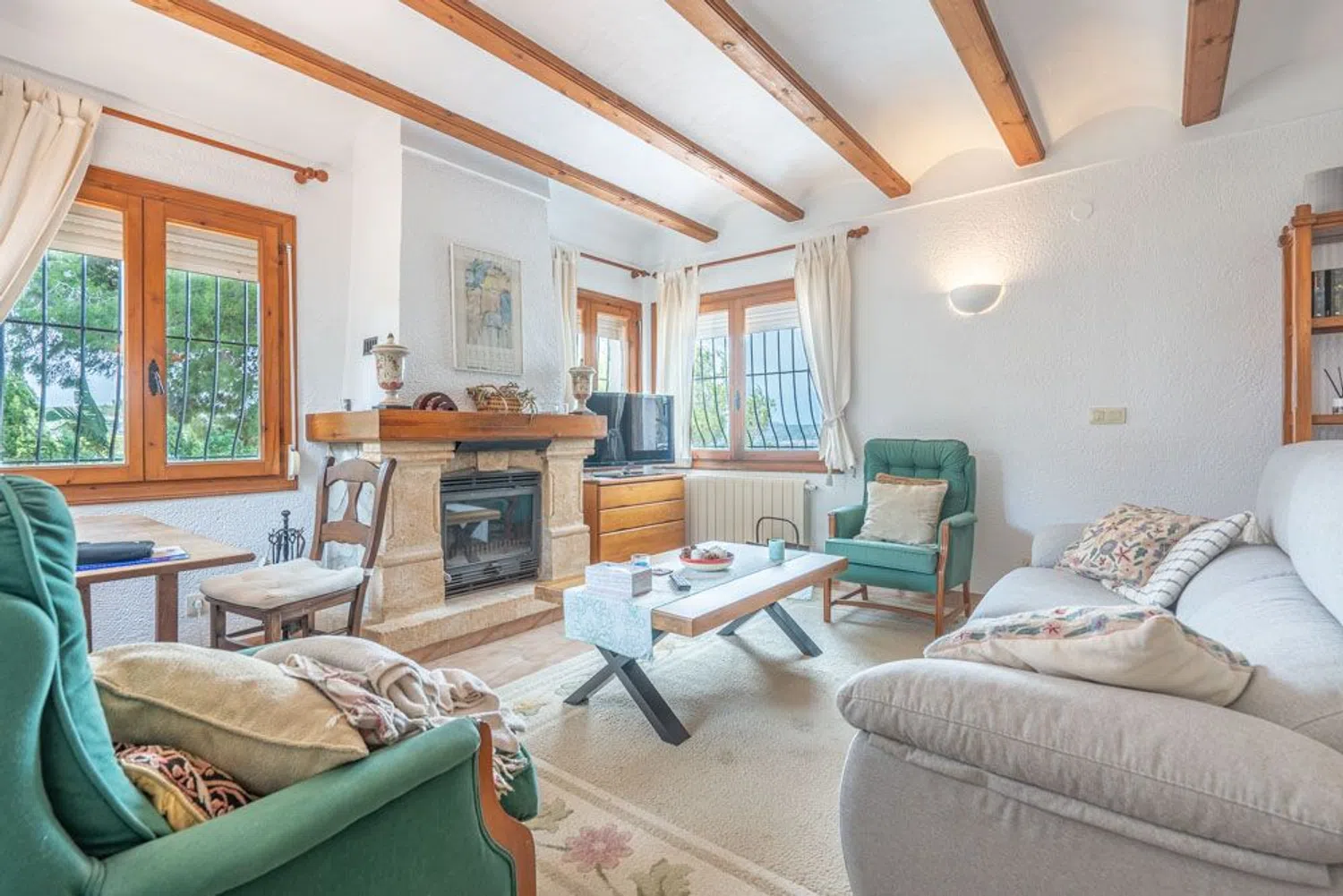 Справа от неё находится кухня, имеющая прямой выход на очаровательную южную террасу, идеально подходящую для обедов на свежем воздухе. Слева от гостиной располагается большая веранда, где можно наслаждаться прекрасными пейзажами. На том же этаже есть двухместная спальня и ванная комната. Еще выше, по лестнице, находится вторая спальня с небольшой ванной.