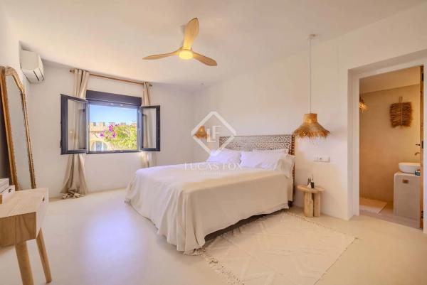 Ubicada en la codiciada zona residencial de Balcón al Mar, esta magnífica vivienda goza de una posición elevada que garantiza unas maravillosas vistas al mar desde cualquier punto. Recientemente renovada por completo, esta vivienda combina a la perfección el encanto mediterráneo atemporal con el lujo moderno. La renovación incluye puertas y ventanas de doble acristalamiento, suelos de microcemento y puertas originales Castellano con acabado arenado, conservando el carácter de la vivienda y a la vez aumentando el confort. La cocina, de estilo ibicenco, cuenta con electrodomésticos de alta gama, acabados elegantes y un diseño relajado a la par que sofisticado. Se puede acceder a la vivienda a través de una puerta peatonal o mediante el garaje privado, que ofrece aparcamiento para un vehículo grande. Desde el garaje, una escalera interior conduce a la planta baja de la casa, mientras que una segunda escalera conecta con el vestíbulo principal. La bonito/a puerta principal de madera da paso a un elegante recibidor con aseo de cortesía y armario empotrado. Desde el recibidor central se accede a dos dormitorios, ambos con baño privado, al amplio salón y a la cocina totalmente equipada. Desde la cocina, el luminoso comedor se abre a través de puertas acristaladas a la terraza, desde donde se disfruta de vistas a la piscina, el jardín y el mar. El salón también ofrece impresionantes vistas al mar y cuenta con una acogedora chimenea de leña, que aporta calidez y ambiente durante los meses más fríos. La luz natural inunda la vivienda a través de sus numerosas ventanas, y cuenta con aire acondicionado frío/calor en todas las habitaciones para mayor comodidad durante todo el año. La planta baja de la casa cuenta con lavandería y trastero, donde también se encuentran todas las instalaciones técnicas. Además, dispone de una estancia multiusos con baño privado y acceso directo a la terraza, ideal para utilizar como gimnasio, spa o dormitorio de invitados. Una escalera de caracol desde la terraza principal conduce al solárium de la terraza en la azotea, un verdadero refugio que ofrece espacio y espectaculares vistas al mar, creando una atmósfera tranquila y lujosa. La terraza de la piscina es uno de los elementos más destacados de la propiedad. Todo el exterior ha sido recientemente revestido con azulejos de piedra alemana, lo que le confiere un toque refinado y contemporáneo. La piscina de 10x5 metros ha sido completamente revestida con elegantes azulejos verdes balineses y está rodeada de un amplio espacio para tomar el sol y relajarse, además de una ducha exterior. El jardín mediterráneo, de fácil mantenimiento, está ajardinado con grava, setos maduros para mayor privacidad y una variedad de plantas y árboles frutales bien adaptados al clima local. La vivienda también incluye una casa de huéspedes independiente, con entrada propia, cocina totalmente equipada, sala de estar/naya cubierta y una amplia dormitorio doble con baño privado, ideal para invitados o familiares que buscan independencia y privacidad. Junto a la casa de huéspedes hay dos trasteros adicionales, y en la parte trasera de la vivienda, un despacho con terraza propia y vistas al mar, un lugar perfecto para trabajar desde vivienda en un entorno tranquilo. Esta maravillosa villa, completamente renovada, con su casa de huéspedes independiente, espacios adicionales versátiles e impresionantes vistas al mar, es perfecta como residencia familiar o como un lujoso refugio mediterráneo. Llámenos hoy para concertar una visita privada.