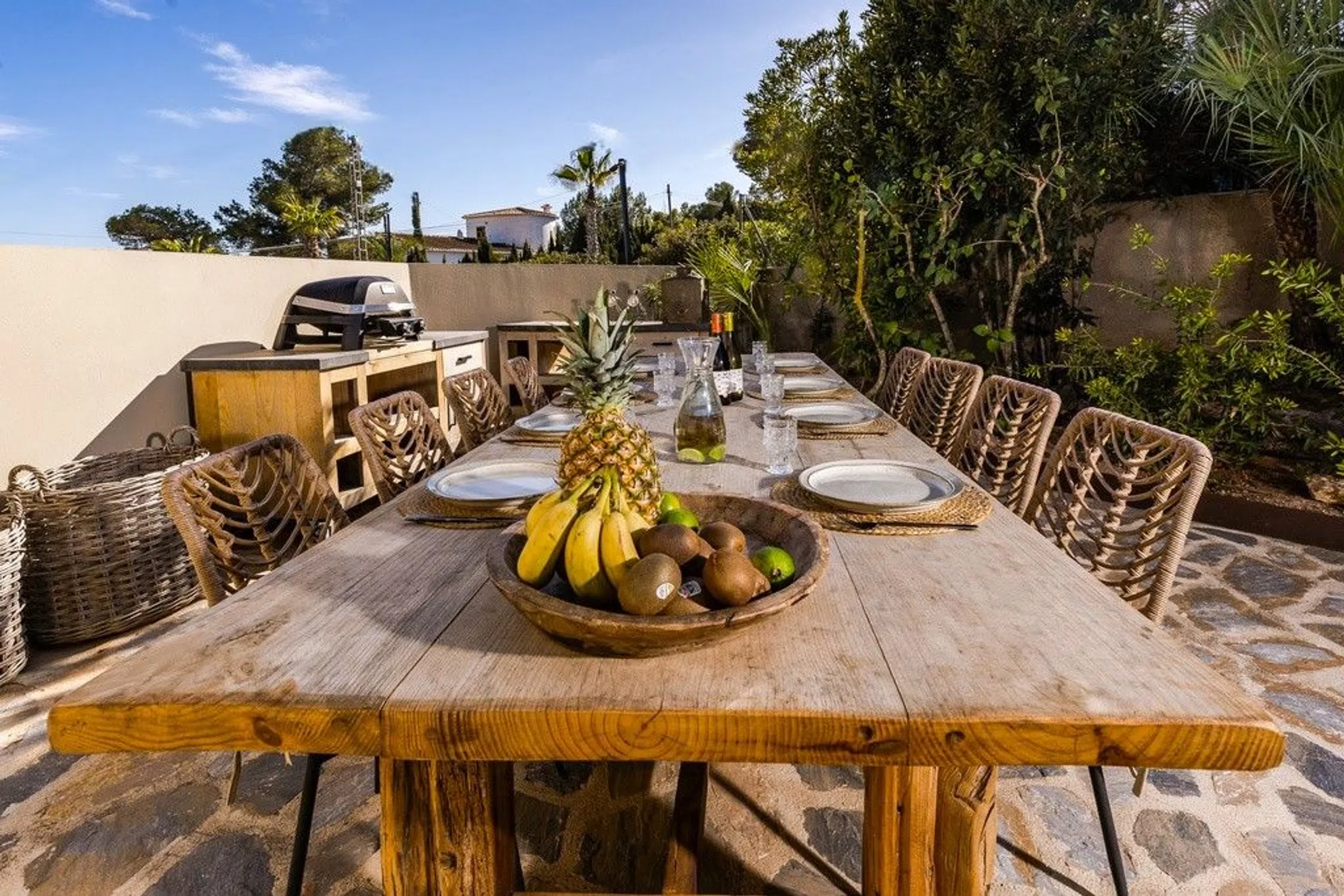 Una exquisita fusión de arte moderno y encanto mediterráneo atemporal, esta villa de cinco dormitorios bellamente reinventada es una oferta excepcional en uno de los enclaves costeros más codiciados de la Costa Blanca Norte. Ubicada sobre las aguas azules cerca de la playa de Granadella, la propiedad ha sido completamente reformada con los más altos estándares, combinando materiales naturales y texturas refinadas con elementos de diseño audaces y artesanía a medida. Las baldosas de terracota, los arcos y los detalles de hierro forjado honran su herencia española, mientras que las líneas limpias, las obras de arte seleccionadas y los acabados de alta gama introducen un toque lujoso y contemporáneo. Con vistas al mar y a la montaña, múltiples terrazas de entretenimiento, una plataforma flotante sobre una piscina climatizada de agua salada y serenas zonas de bienestar, esta villa ofrece un estilo de vida interior-exterior sin esfuerzo diseñado para el comprador exigente. Arquitectura y Diseño Esta villa es una obra maestra en diseño transformador: conserva la calidez de la arquitectura tradicional española al tiempo que adopta una estética audaz y moderna. Características distintivas como tejas de terracota, arcos y balaustradas de hierro forjado rinden homenaje a sus raíces mediterráneas. Sin embargo, la presentación general es inconfundiblemente contemporánea, con líneas limpias, detalles en acero y madera, y detalles personalizados en todas partes. El estilo artístico de la casa es evidente en cada rincón: desde obras de arte a medida y características de paredes de corcho hasta azulejos de diseño e iluminación llamativa, cada elemento ha sido cuidadosamente seleccionado para ofrecer un impacto visual y un atractivo duradero. Distribución Interior La propiedad se extiende por varios niveles con conexiones fluidas entre la vida interior y exterior. La entrada es a través de una elegante cocina de planta abierta, completa con electrodomésticos integrados, amplio espacio de almacenamiento y una elegante isla central con asientos de bar. Esto conduce a un comedor y un elegante salón con una chimenea, grandes puertas correderas que se abren a una terraza con vistas al mar. En el mismo nivel hay dos dormitorios serenos con baños en suite, incluida una suite principal destacada con una bañera independiente y tocador doble. Un aseo para invitados y acceso directo a la piscina y los jardines mejoran la comodidad y el flujo. El nivel inferior alberga tres dormitorios más con baño, cada uno con un estilo único, uno con puertas francesas a una terraza privada y otro con vistas panorámicas a la bañera. Servicios de Lujo Cada detalle de esta casa ha sido considerado pensando en el lujo. Los cinco dormitorios exudan una sensación de hotel boutique, completos con baños en suite de última generación y accesorios de primera calidad. La villa está equipada con un sistema de sonido Sonos zonificado, tanto en el interior como en el exterior, que mejora el ambiente para el entretenimiento o la relajación. Una sala de lavandería/servicio dedicada, una terraza de gimnasio/yoga con vistas a la montaña y aire acondicionado en todas partes garantizan la practicidad y la comodidad en todas las estaciones. Los acabados de alta calidad, los tejidos naturales y los tonos neutros relajantes completan el ambiente lujoso. Vida al Aire Libre Los espacios exteriores son igualmente impresionantes, centrados alrededor de una espectacular piscina climatizada de agua salada de 10 x 5 m con una plataforma flotante de teca, una característica distintiva que distingue a esta propiedad. Múltiples zonas de descanso, terrazas sombreadas y un comedor al aire libre con barbacoa brindan disfrute durante todo el año. Una ducha al aire libre diseñada por el célebre artista local Toni Mari es a la vez funcional y escultórica, lo que añade un toque artesanal único. Ya sea yoga matutino, cócteles al atardecer o tardes de