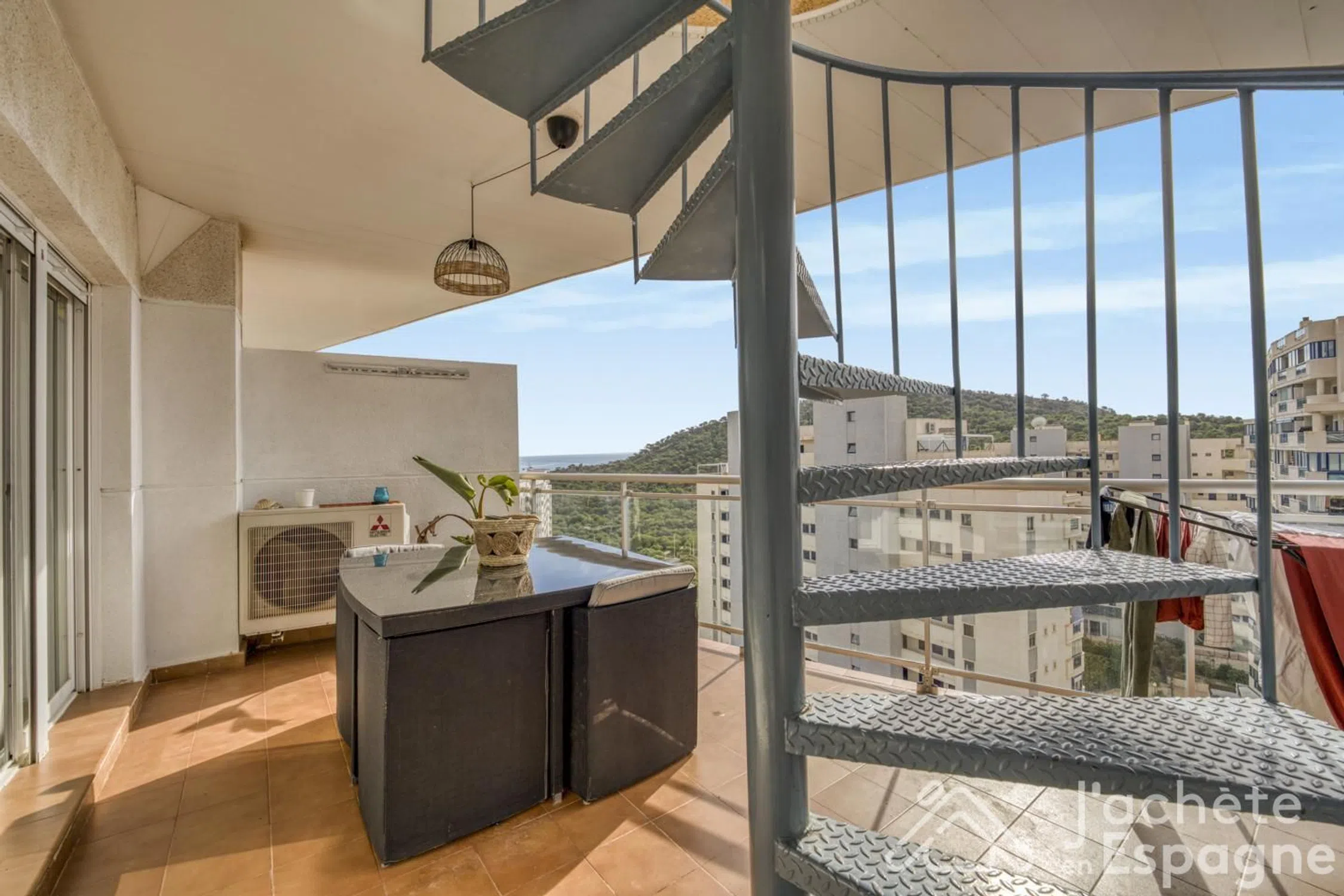 En exclusiva presentamos este magnífico ático dúplex frente al Mediterráneo, un lugar donde cada día es un regalo en este paraíso. Ubicado en las plantas 14 y 15, ofrece impresionantes vistas panorámicas al mar, la montaña y la ciudad, totalmente despejadas, que invitan a disfrutar y despertar todos los sentidos. Con acabados de máxima calidad, la planta principal se compone de un amplio salón-comedor con acceso directo a una gran terraza, dos baños completos, uno de ellos en suite, y dos dormitorios dobles totalmente exteriores, todos con maravillosas vistas. La cocina independiente está equipada y diseñada con todo detalle, convirtiendo cada espacio en un deleite para los sentidos. Desde la terraza, unas elegantes escaleras de caracol nos conducen a la planta superior, una espectacular terraza solárium que no deja indiferente. En ella encontramos una zona chill out, piscina desmontable, ducha exterior, barbacoa y varios espacios diferenciados desde los que disfrutar de la grandeza del mar y la montaña. La urbanización de lujo ofrece piscinas comunitarias, amplias zonas ajardinadas, y la vivienda incluye una plaza de garaje subterránea numerada y trastero. Un hogar único, donde el confort, el diseño y las vistas se combinan para ofrecer una experiencia de vida inigualable frente al Mediterráneo. Vous cherchez un bien en Espagne? Nous offrons un service de chasseur immobilier qui vous accompagne de A à Z. Rendez-vous sur jacheteenespagne.com pour discuter avec notre équipe francophone. En exclusivité, nous vous présentons ce magnifique attique en duplex face à la Méditerranée, un lieu où chaque jour est un véritable cadeau dans ce petit paradis. Situé aux 14ᵉ et 15ᵉ étages, il offre de superbes vues panoramiques sur la mer, la montagne et la ville, entièrement dégagées, invitant à la détente et à l’éveil de tous les sens. Avec des finitions de la plus haute qualité, l’étage principal se compose d’un vaste salon-salle à manger avec accès direct à une grande terrasse, de deux salles de bains complètes, dont une en suite, ainsi que de deux chambres doubles entièrement extérieures, toutes dotées de vues magnifiques. La cuisine indépendante, entièrement équipée et conçue avec soin, fait de chaque espace un véritable plaisir pour les sens. Depuis la terrasse, un élégant escalier en colimaçon mène à l’étage supérieur, une spectaculaire terrasse-solarium qui ne laisse personne indifférent. On y découvre un espace chill-out, une piscine démontable, une douche extérieure, un espace barbecue, ainsi que plusieurs zones distinctes permettant d’admirer la splendeur de la mer et de la montagne. La résidence de luxe offre des piscines communautaires, de larges espaces verts, et le logement comprend une place de parking souterraine numérotée ainsi qu’un débarras. Un logement unique, où confort, design et vues exceptionnelles se conjuguent pour offrir une expérience de vie incomparable face à la Méditerranée. – ¿Vendes tu casa? Contamos con una amplia cartera de clientes internacionales y somos una de las inmobiliarias que más invierte en publicidad y marketing. – La información de este anuncio es precisa, pero puede contener errores y cambiar sin previo aviso. El precio no incluye gastos adicionales como notaría e impuestos. Al enviar sus datos por email o formulario, acepta su tratamiento según nuestra política de privacidad. Compro en España Servicios Inmobiliarios S.L.U. usará sus datos para la relación comercial y comunicaciones sobre nuestros productos. Los datos se conservarán mientras sea necesario y se eliminarán de forma segura cuando ya no se requieran. No se compartirán con terceros, salvo por ley. Puede retirar su consentimiento y ejercer sus derechos contactando a Calle Lluis Vives 6-6, 46003 Valencia, o a.