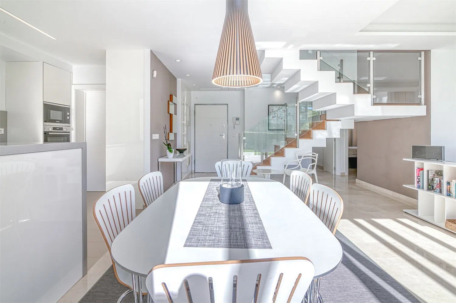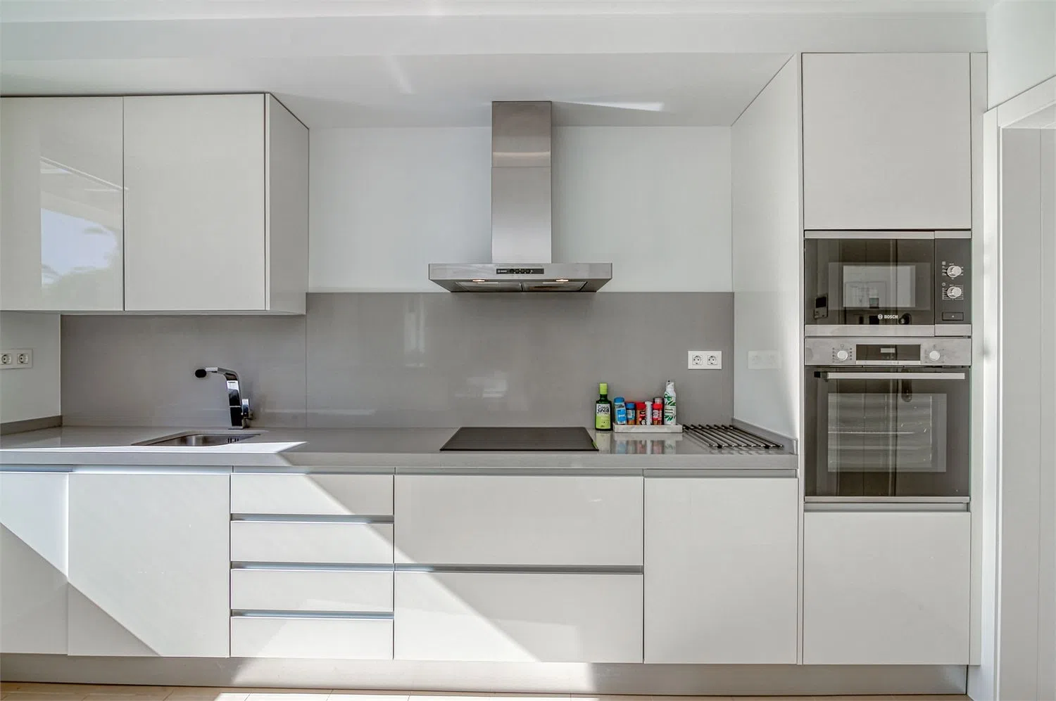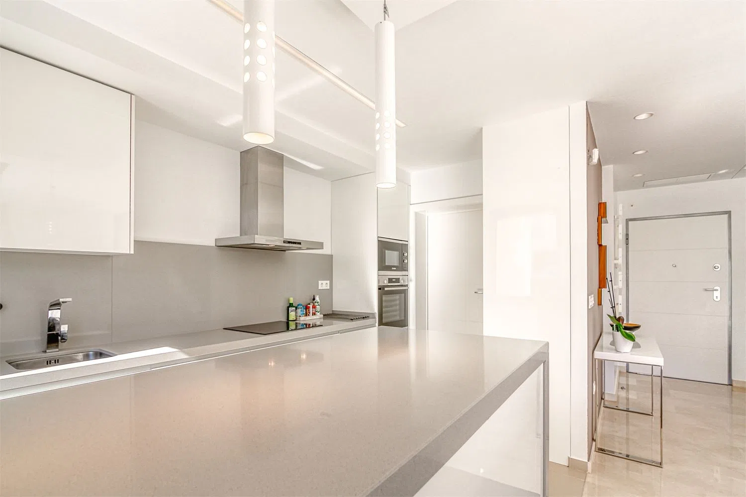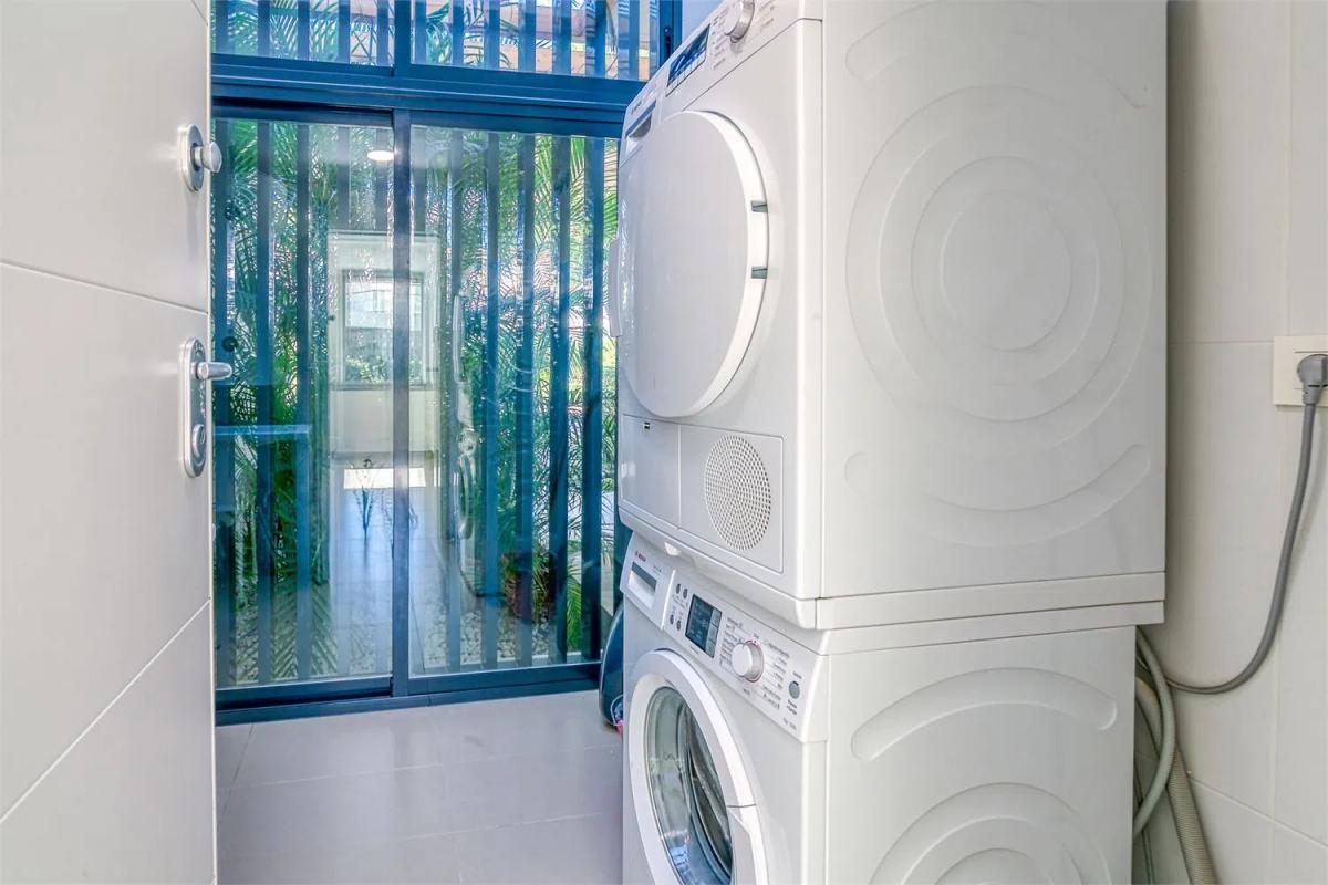 Собственность оснащена централизованным кондиционированием и продается полностью меблированной, включая все необходимые бытовые приборы. Кухня имеет плиту индукционного типа, вытяжку, встроенную духовку, микроволновую печь, холодильник с морозильной камерой и посудомоечную машину, что удовлетворит даже самых требовательных поваров. Рядом с кухней находится закрытая прачечная, в которой размещен водонагреватель, а также достаточное пространство для стиральной и сушильной машин, что обеспечивает максимальный комфорт в повседневной жизни.