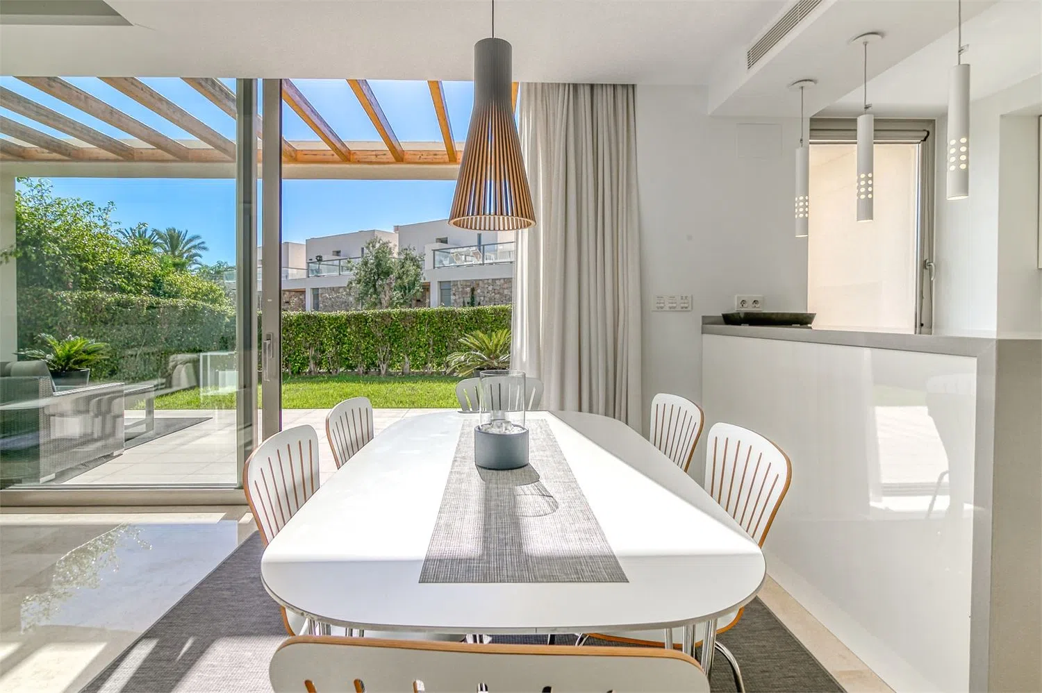 Для повышения комфорта в дом установлены большие электрические маркизы, которые укрывают главную террасу, а также электрические жалюзи в каждой спальне. Кроме того, в собственности предусмотрена система сигнализации с удаленным мониторингом через мобильное приложение и подключение к профессиональной службе охраны для вашей безопасности и спокойствия. Жилой комплекс охраняется, с автоматическими воротами и кодами для входа. Резиденты также могут наслаждаться тремя открытыми бассейнами, ухоженными зелеными территориями и эксклюзивной парковкой.