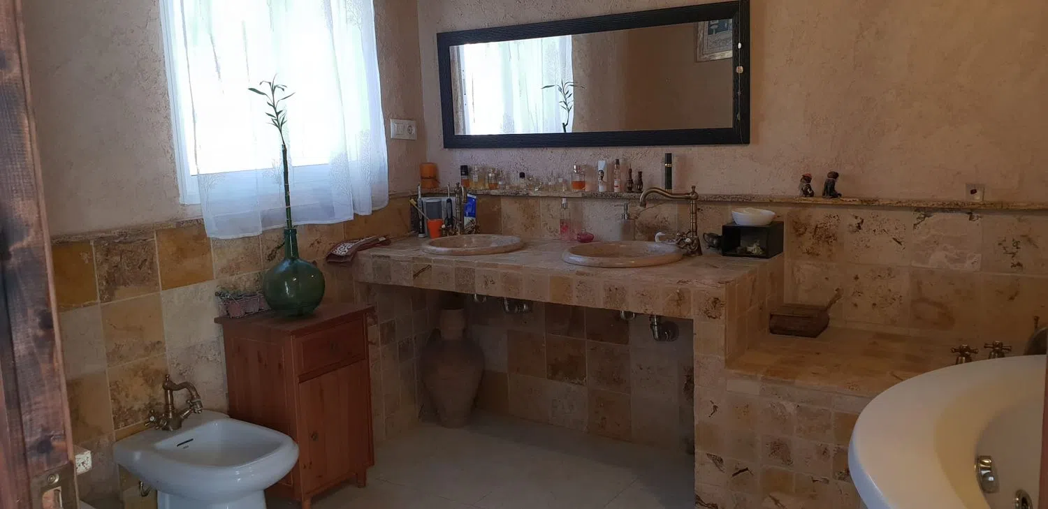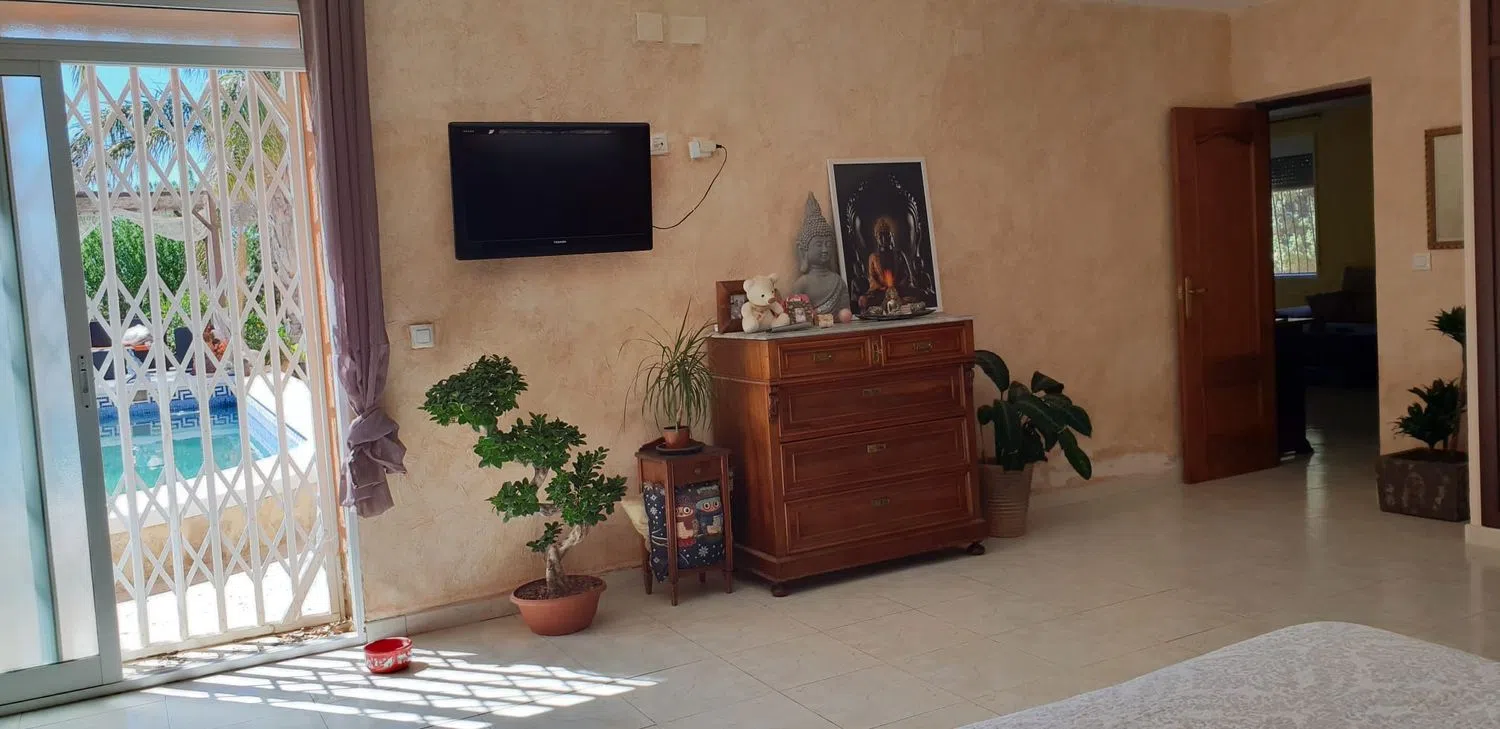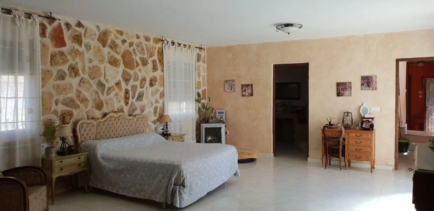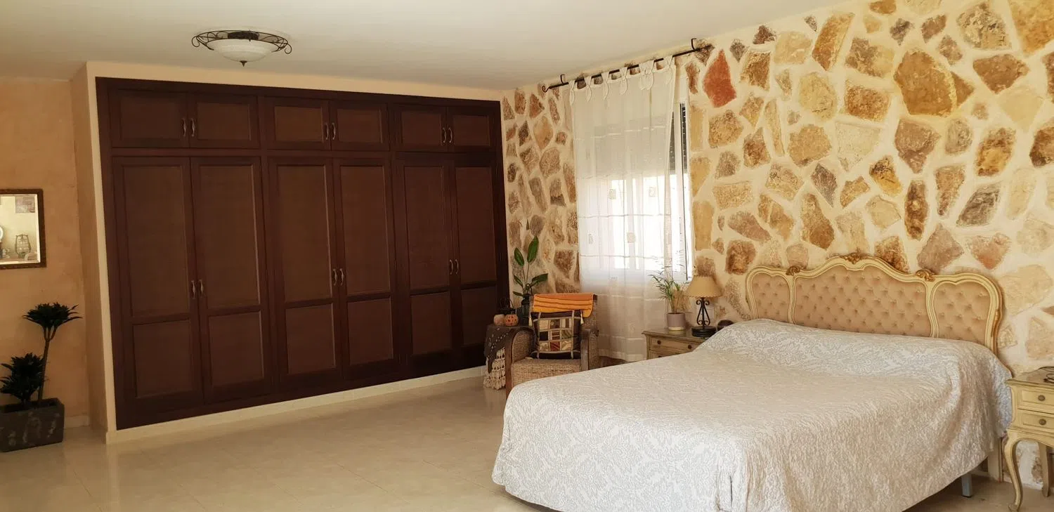 Просторный дом с бассейном и гостевой квартирой в живописном районе, готовый к заселению. Главный дом имеет две этажи, а гостевая квартира расположена на одном уровне. Здесь находятся восемь очень просторных спален, все с двуспальными кроватями, а также пять ванных комнат. В главной спальне предусмотрена зона для гардероба и отдельный шкаф, в то время как остальные спальни оборудованы встроенными шкафами.