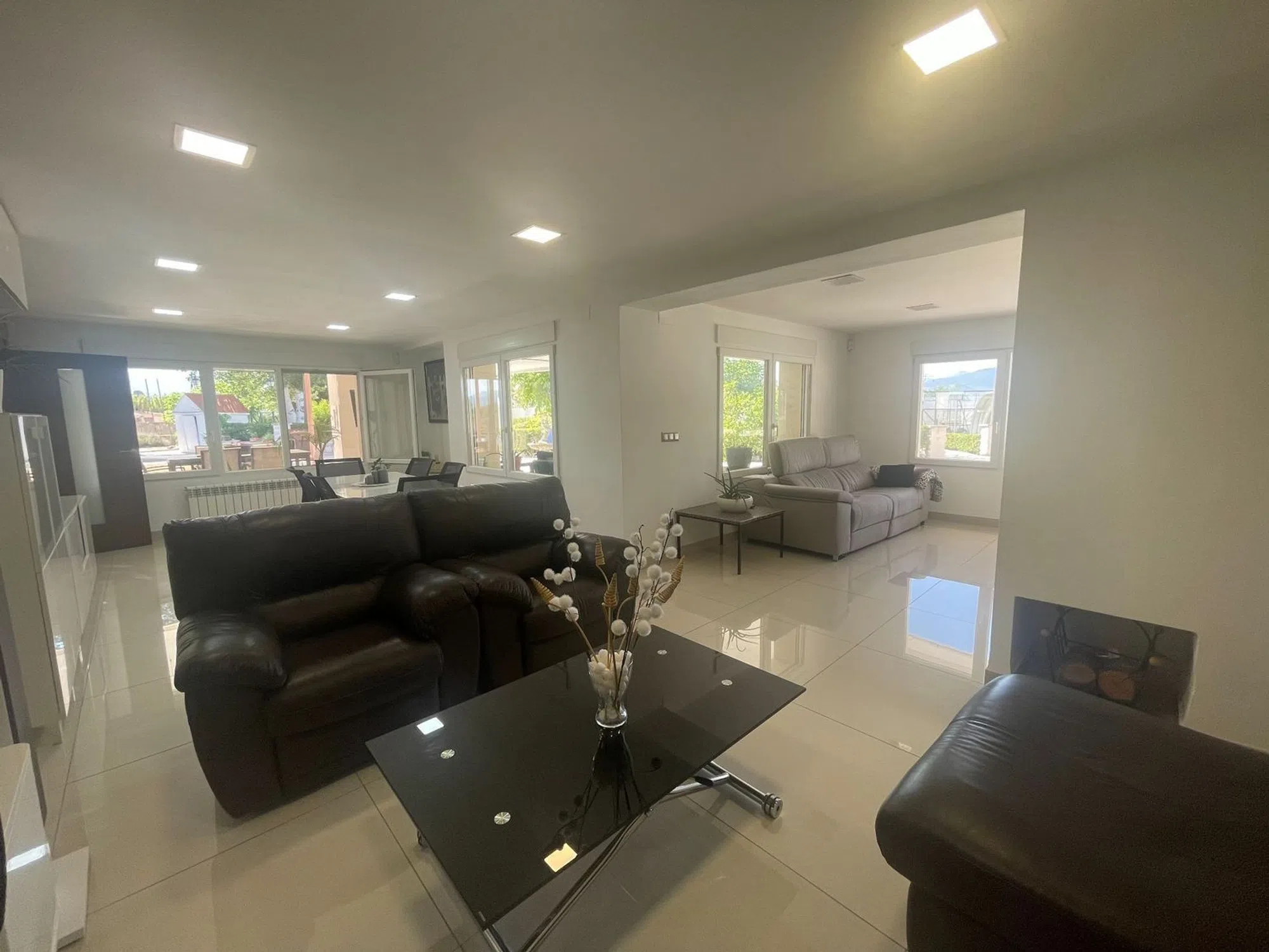 Espectacular chalet distribuido en dos plantas sobre una parcela de 3.700 m2 totalmente vallada con puerta de acceso a la propiedad motorizada. En la planta principal se accede a un amplio recibidor, salón comedor con chimenea, cocina con salida a barbacoa, habitación con vestidor y baño en suite, otra habitación y baño completo. En la planta superior tenemos dos habitaciones grandes y dos baños completos. Piscina 8x4 con cambiadores, pozo legalizado, bodega, pista de tenis, garaje, parking cubierto para varios vehículos, trastero, diferentes plantas y arboles. Alcantarillado, fibra óptica. Spectacular two-story villa on a fully fenced 3,700 m² plot with a motorized access gate. The main floor includes a spacious entrance hall, living-dining room with fireplace, kitchen with access to the barbecue, bedroom with dressing room and en suite bathroom, another bedroom and a full bathroom. The upper floor features two large bedrooms and two full bathrooms. There is an 8x4m pool with changing facilities, a legal well, a wine cellar, a tennis court, a garage, covered parking for several vehicles, a storage room, and various plants and trees. Sewage and fiber optics are provided. [IW].
