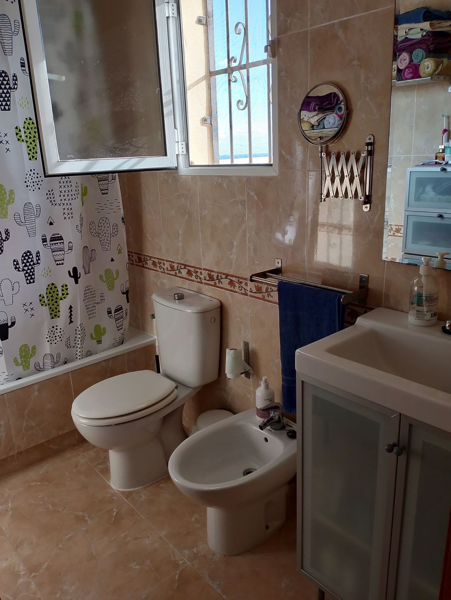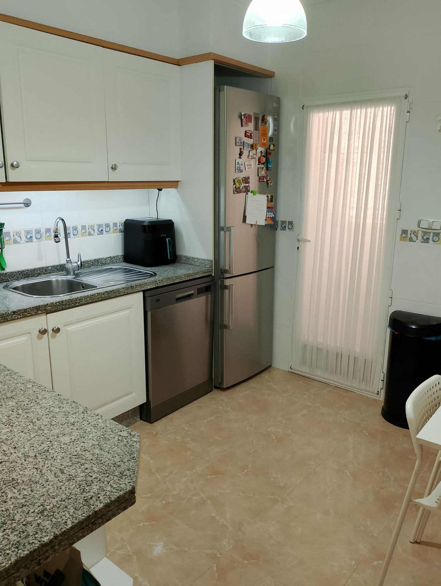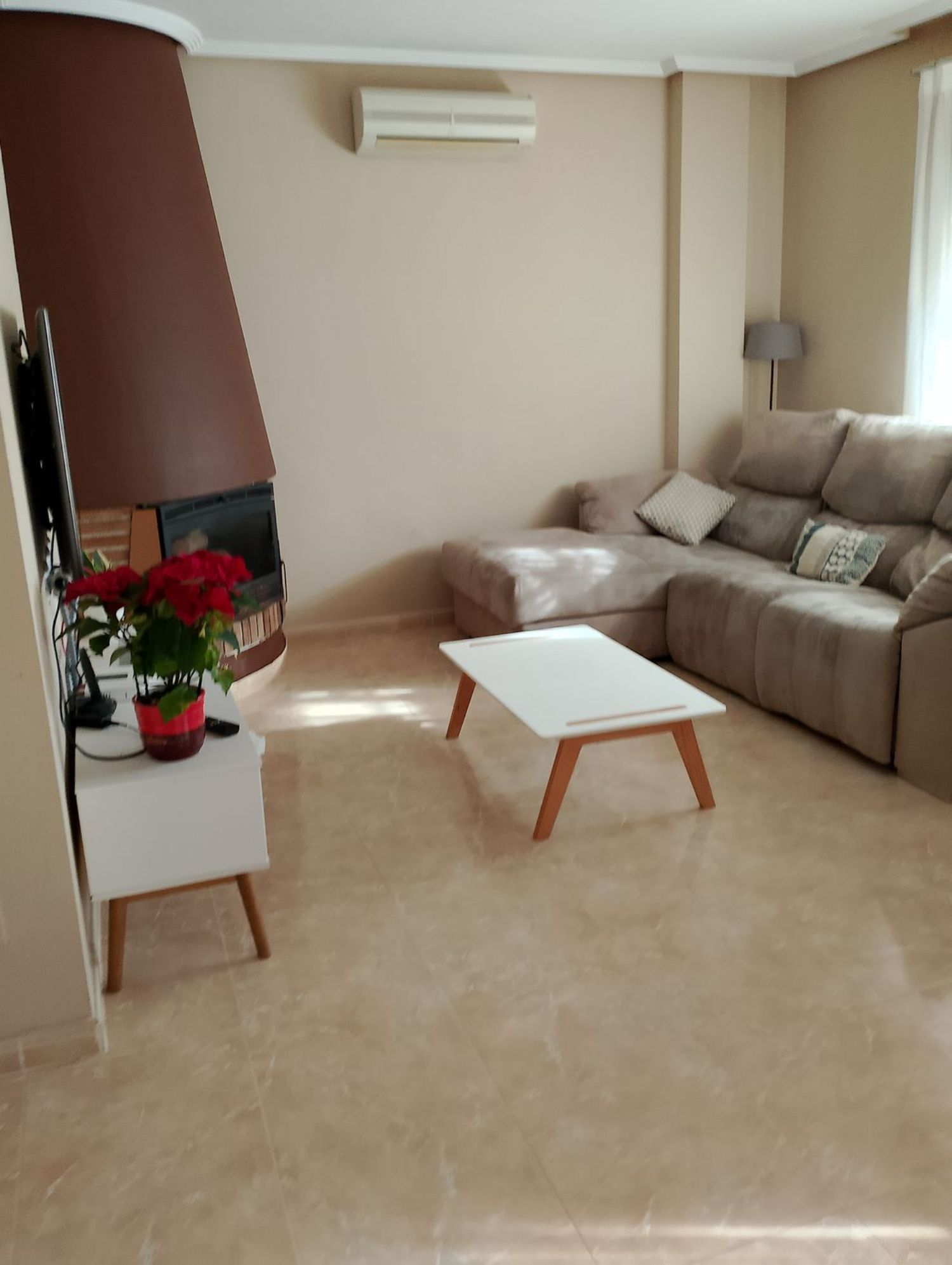 Гостиная просторная и уютная, с камином и двумя зонами для отдыха, идеально подходит для расслабления и общения с близкими. Здесь есть все необходимые удобства: кондиционер, гараж, кладовая, а также система солнечной энергии, которая обеспечивает 100% автономность.