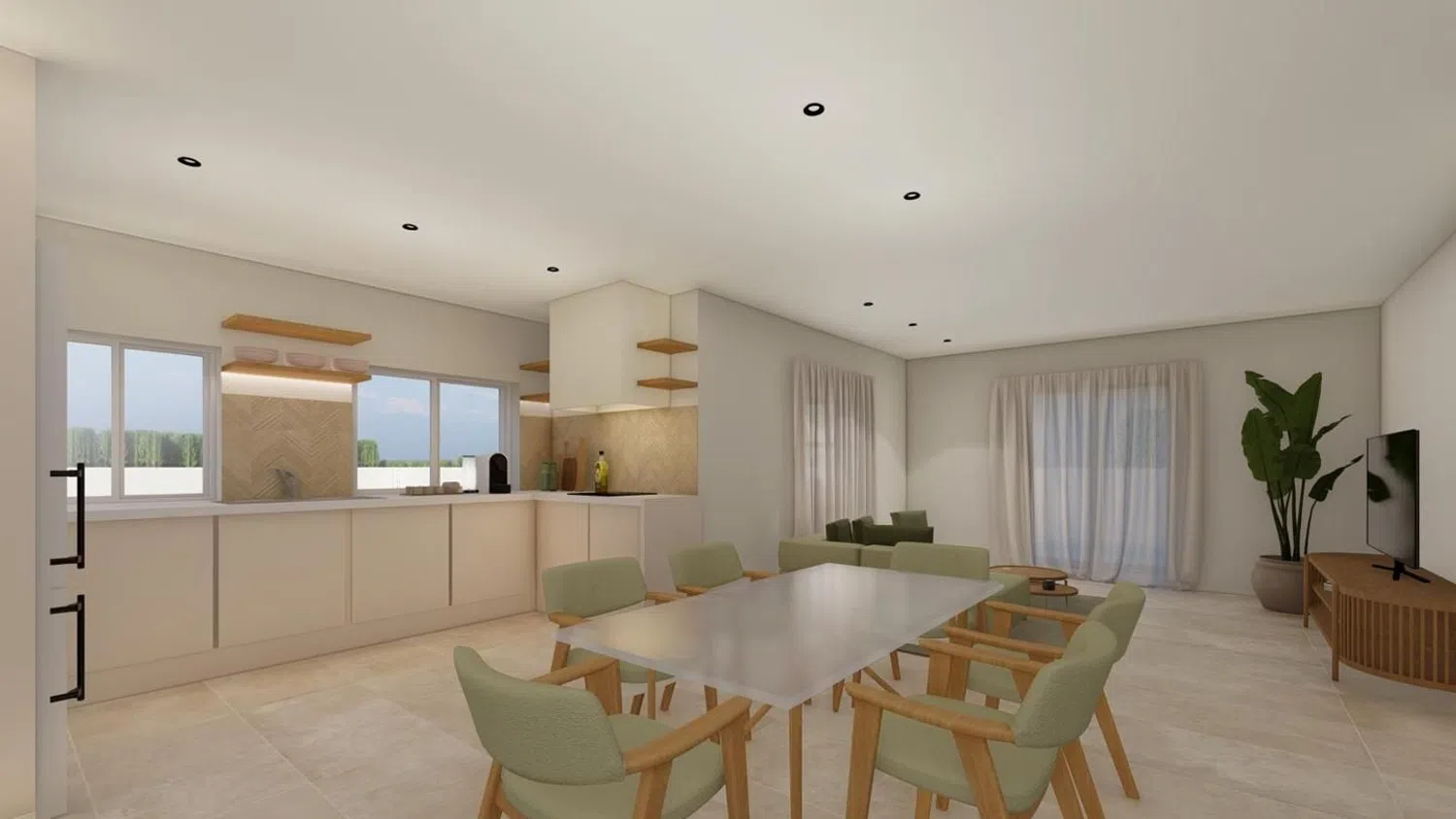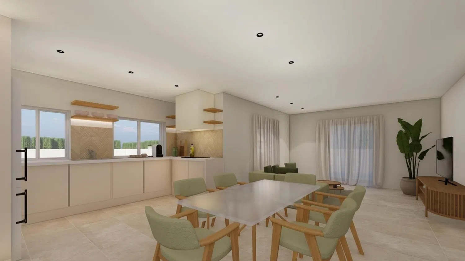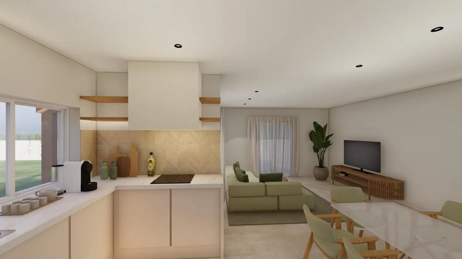 На территории есть частный бассейн с уютным боковым патем, а также зона для барбекю и пергола в саду. Внутри дома размещена современная кухня с антицарапинными фасадами, а в ванных - душевые кабины. В качестве дополнительного удобства предусмотрена возможность установки камина.