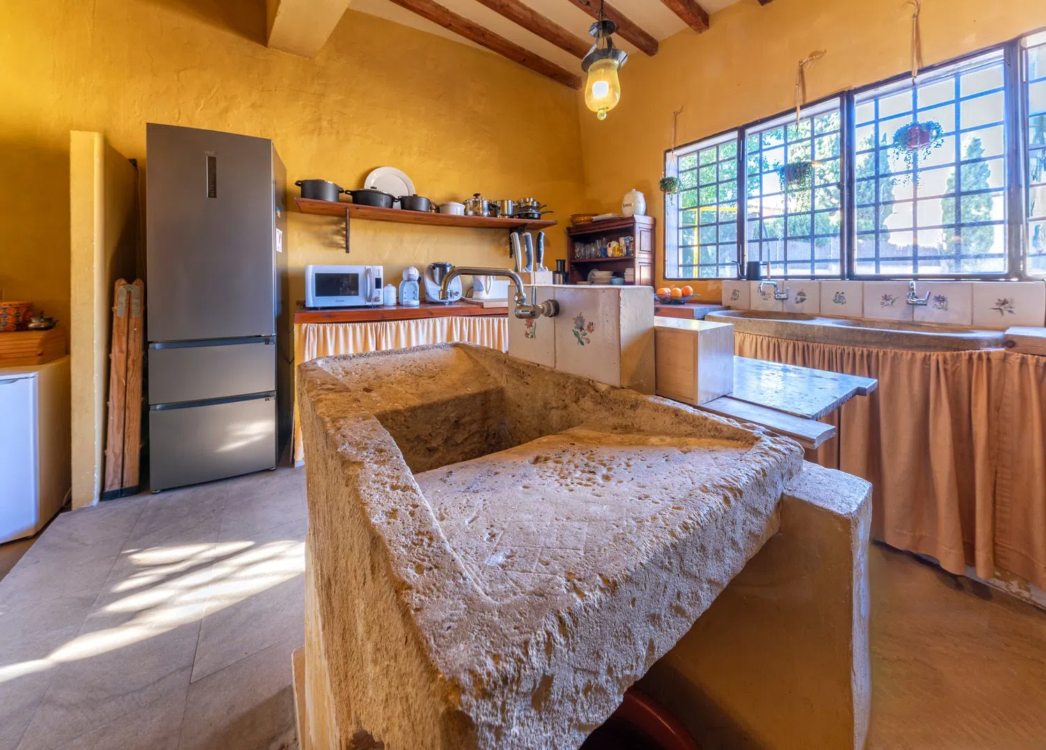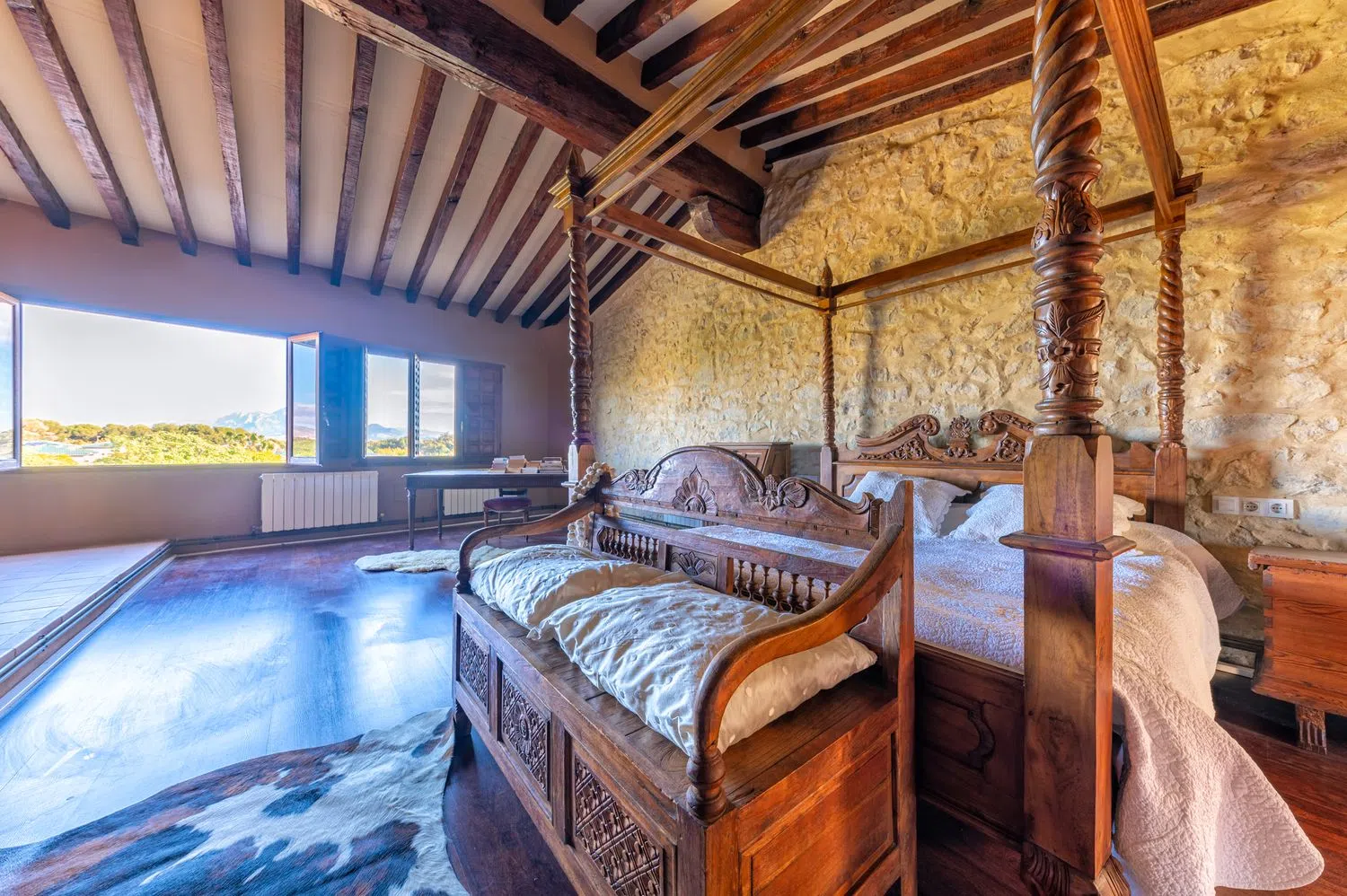 Отреставрированная экспертами, масия сохранила свои оригинальные черты, включая высокие потолки с балками из древесины высшего качества, каменные арки, просторные залы и комнаты, камины, уникальные внутренние детали и красивые виды на сад из окон.