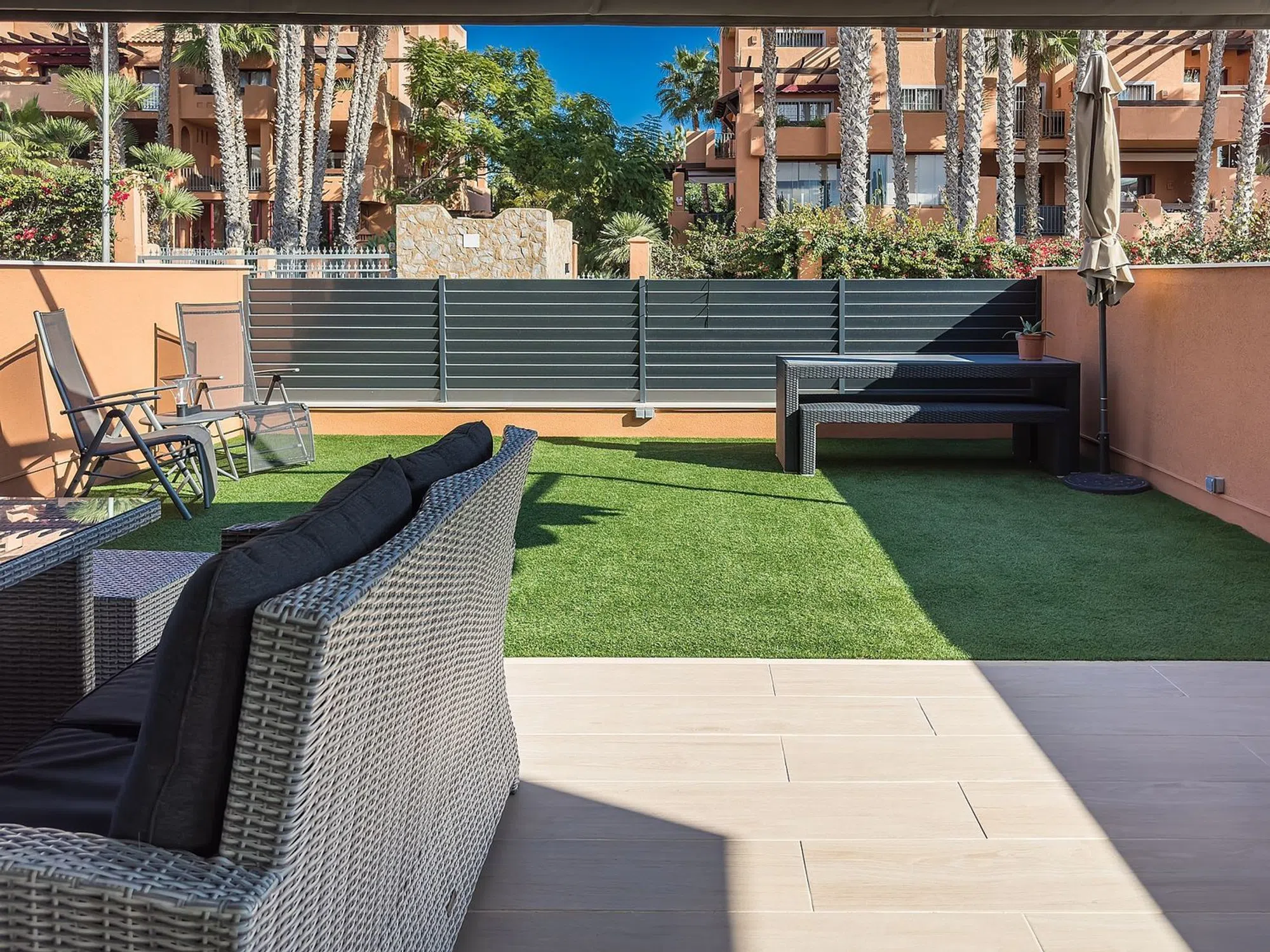 NO SE ALQUILA Impresionante apartamento en planta baja totalmente amueblado en Villa Martin Orihuela Costa con piscina comunitaria. Hay 2 campos de golf muy cerca y un hermoso Boulevard para disfrutar de restaurantes y tiendas de su elección. Las playas de bandera azul están a 5 minutos en coche y los restaurantes y cafeterías están a poca distancia a pie. El apartamento consta de un pasillo con un gran dormitorio principal con armarios empotrados modernos que conducen a un baño en suite y luego a un lavadero, a la izquierda del pasillo hay un moderno baño equipado y ducha que pasa a través de una cocina abierta con todos los electrodomésticos, incluidos lavavajillas, lavadora, secadora y frigorífico. Esta moderna cocina da a un gran comedor/salón de planta abierta. A la izquierda del salón se encuentra el segundo dormitorio completo con armarios empotrados y desde allí se accede a un invernadero/comedor que también podría utilizarse como tercer dormitorio. Tanto el comedor como el salón conducen a un hermoso jardín privado con césped con un hermoso patio y una moderna persiana con control remoto para brindar mucha sombra. El apartamento está orientado al sureste para que pueda disfrutar del sol todo el día. Esta propiedad cuenta con una impresionante piscina comunitaria grande rodeada de jardines privados y su propio espacio de estacionamiento seguro privado que se encuentran a un paso del lado oeste de la propiedad. Los vendedores incluyen todos los muebles de alta especificación que se suman a hacer de esta una casa impresionante, ya sea para una casa permanente o de vacaciones. Una hermosa propiedad que necesita ser vista.