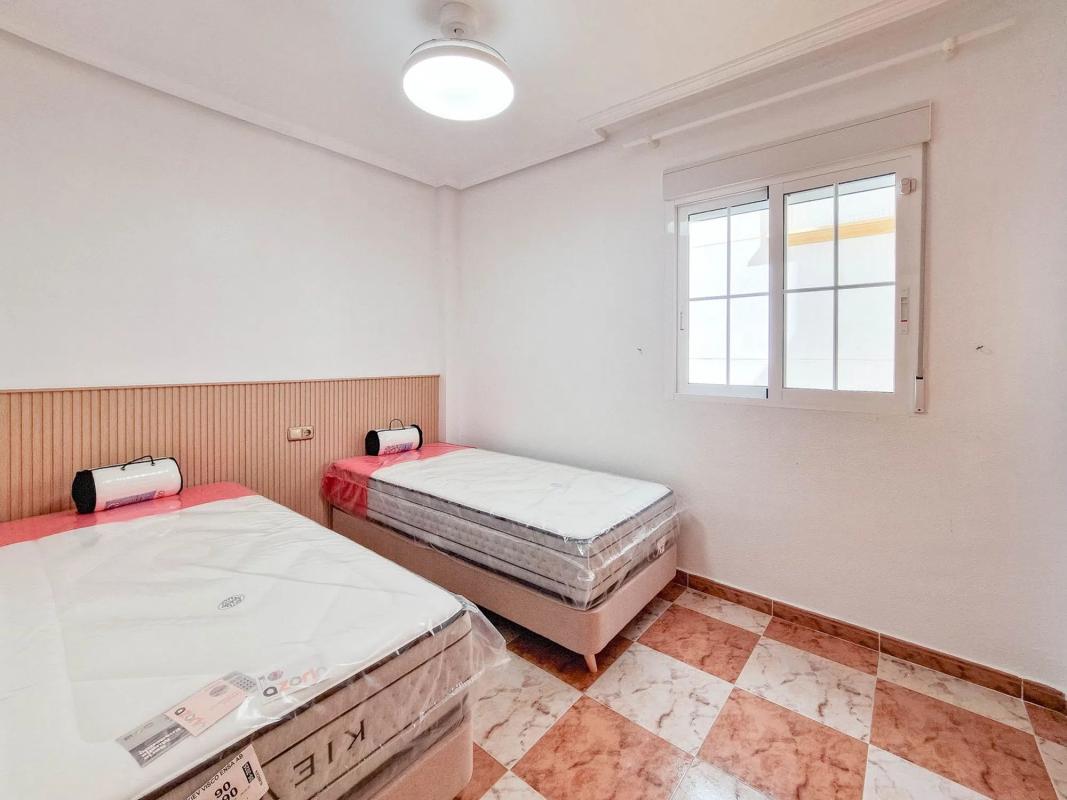 Apartamento al sur con balcon Agradable apartamento en Lomas de Cabo Roig, dentro del residencial Playa Golf II. Ubicado en primera planta cuenta con dos dormitorios, un baño y ampla terraza con una excelente orientación sur para disfrutar del sol todo el año. Muebles y electrodomésticos nuevos a estrenar. La urbanizacion tiene piscina comunitaria y zonas verdes donde tomar el sol. Muy cerca encontraras supermercados y restaurantes. A 5 minutos en coche de las hermosas playas de la zona y de la Zenia Boulevard.