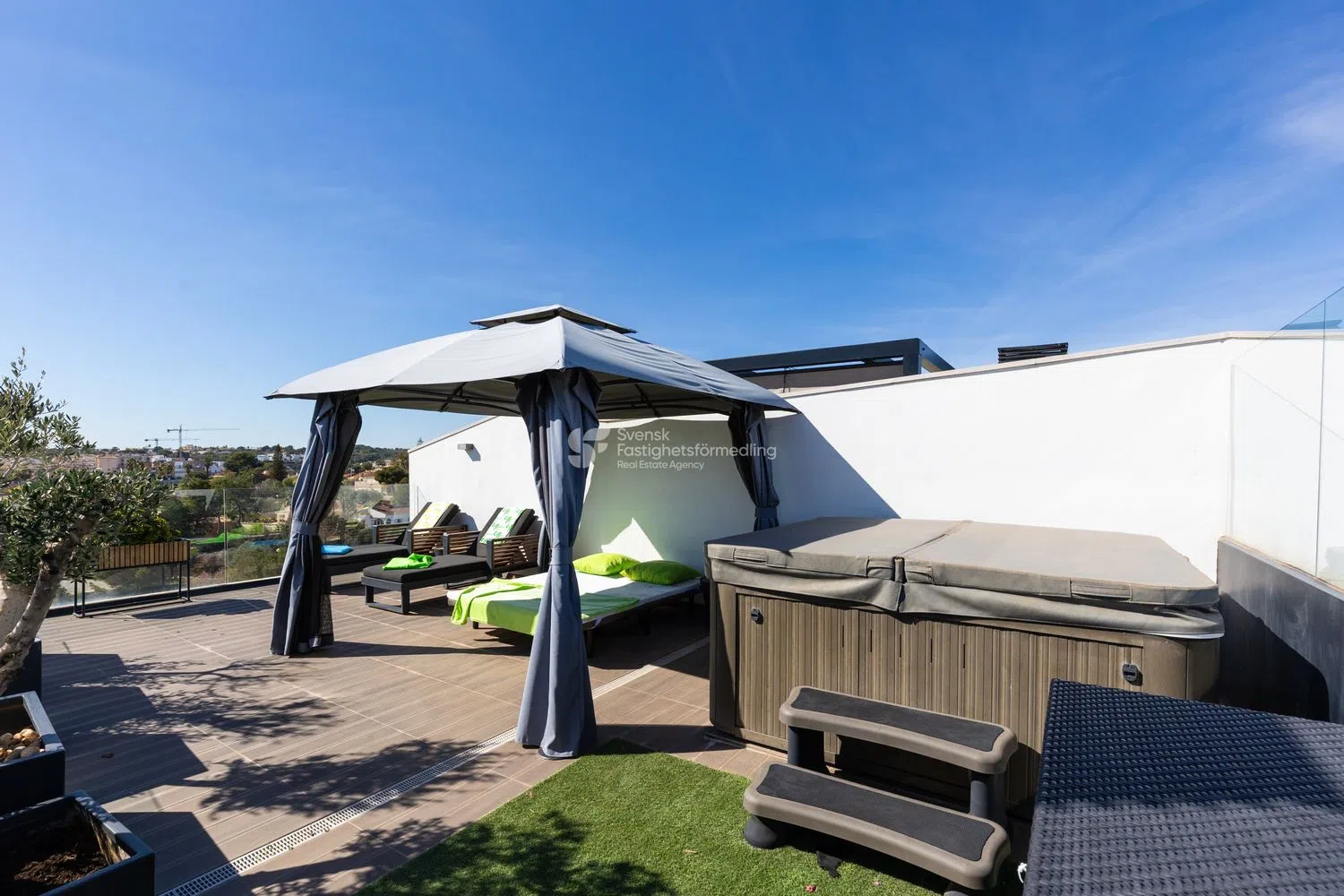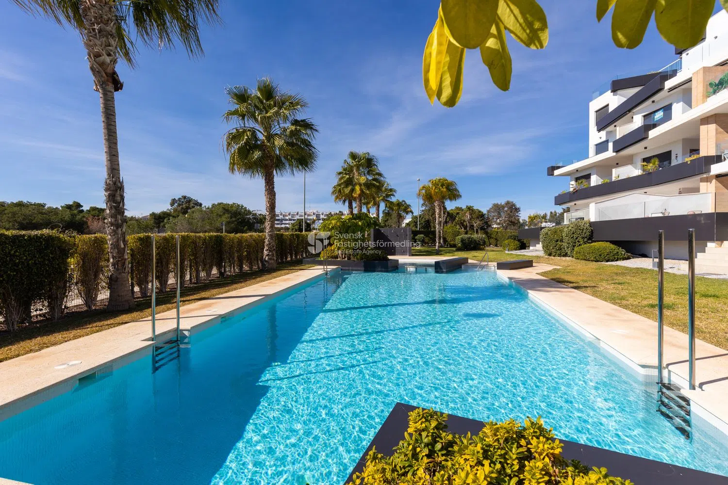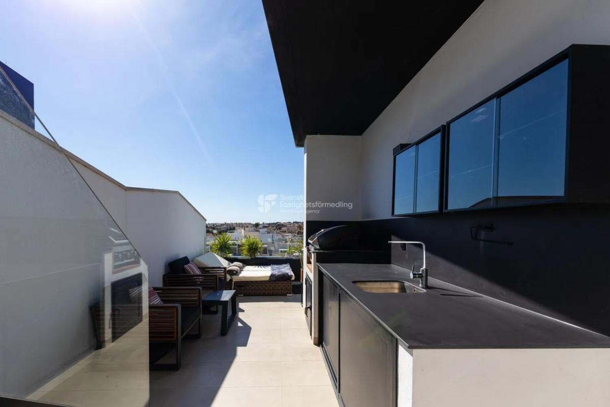 Descubre este exclusivo ático situado en el corazón de Villamartín, una zona que combina lujo y confort con excelentes servicios. Con su equipamiento moderno y espacios bien planificados, este apartamento de cuatro dormitorios ofrece un equilibrio perfecto entre elegancia y funcionalidad. Varias terrazas brindan la oportunidad de disfrutar de las impresionantes vistas al mar y crear momentos inolvidables bajo el sol. En la terraza de la azotea, hay espacio suficiente para muebles de salón, tumbonas y barbacoas. Aquí también encontramos un jacuzzi. Esta propiedad es ideal tanto como alojamiento vacacional como para vivir durante todo el año, gracias a su estratégica ubicación cerca de tiendas, campos de golf e instalaciones de pádel. Para aquellos que buscan relajación, hay una piscina comunitaria, piscina cubierta climatizada, sauna, spa, vestuarios y gimnasio disponibles en el lugar, ofreciendo la oportunidad de llevar un estilo de vida activo y saludable. A pesar de su tamaño, el ático se siente espacioso y acogedor, lo que lo hace perfecto para familias y amigos. Plazas de aparcamiento en garaje y trastero incluidos. Impuesto de bienes inmuebles (IBI): 351 euros/año Suma garaje: 53 euros/año Impuesto de comunidad (Comunidad): euros/año Número de propiedad: 424112 Contáctenos para obtener más información o para reservar una visita. Una cálida bienvenida de Svensk Fastighetsförmedling en Torrevieja.