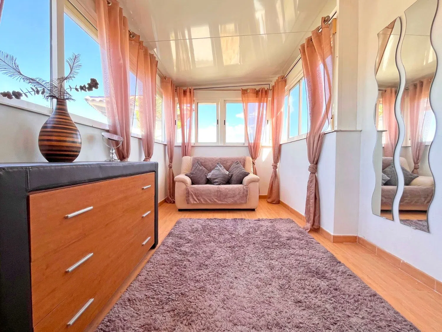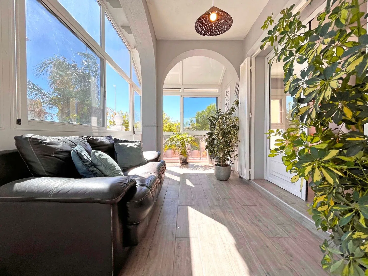 На нижнем этаже имеется полностью независимая квартира с двумя спальнями, ванной комнатой, гостиной и кухней. С отдельным входом, это пространство идеально подходит для гостей, расширенной семьи или как арендная единица.