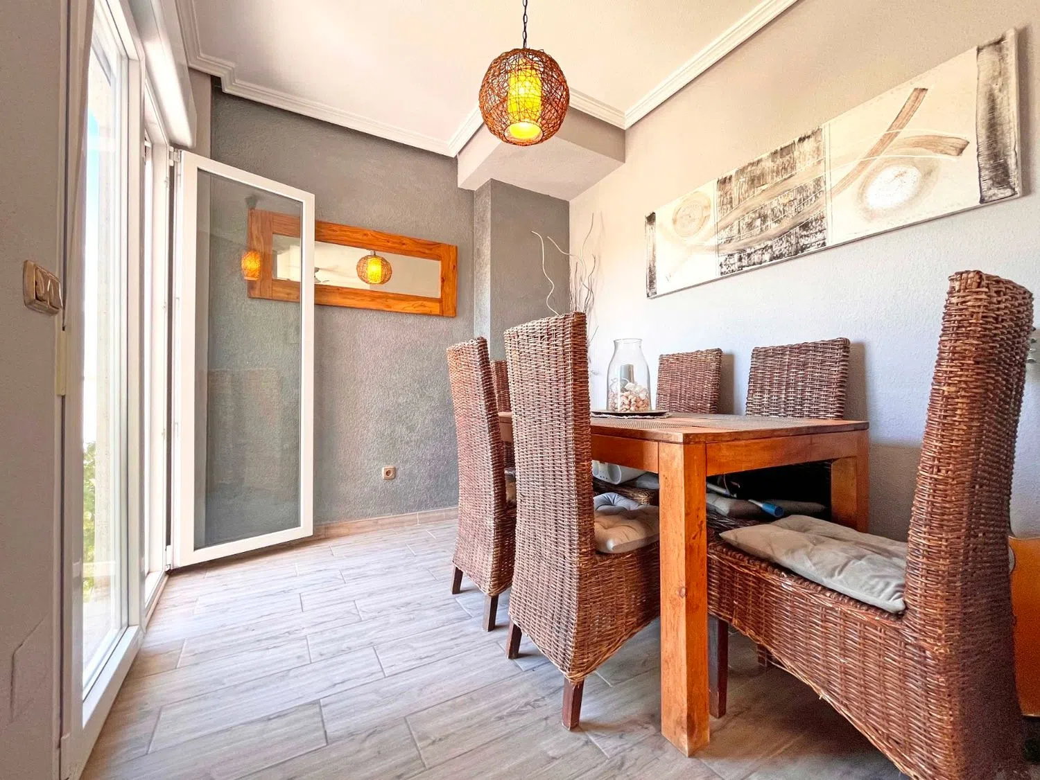 На главном этаже находится просторная и светлая гостиная с обеденной зоной, полностью оборудованная кухня и современная ванная комната. Остекленная терраса открывает виды на частный бассейн и сад, создавая идеальное место для отдыха и наслаждения природой в любое время года.