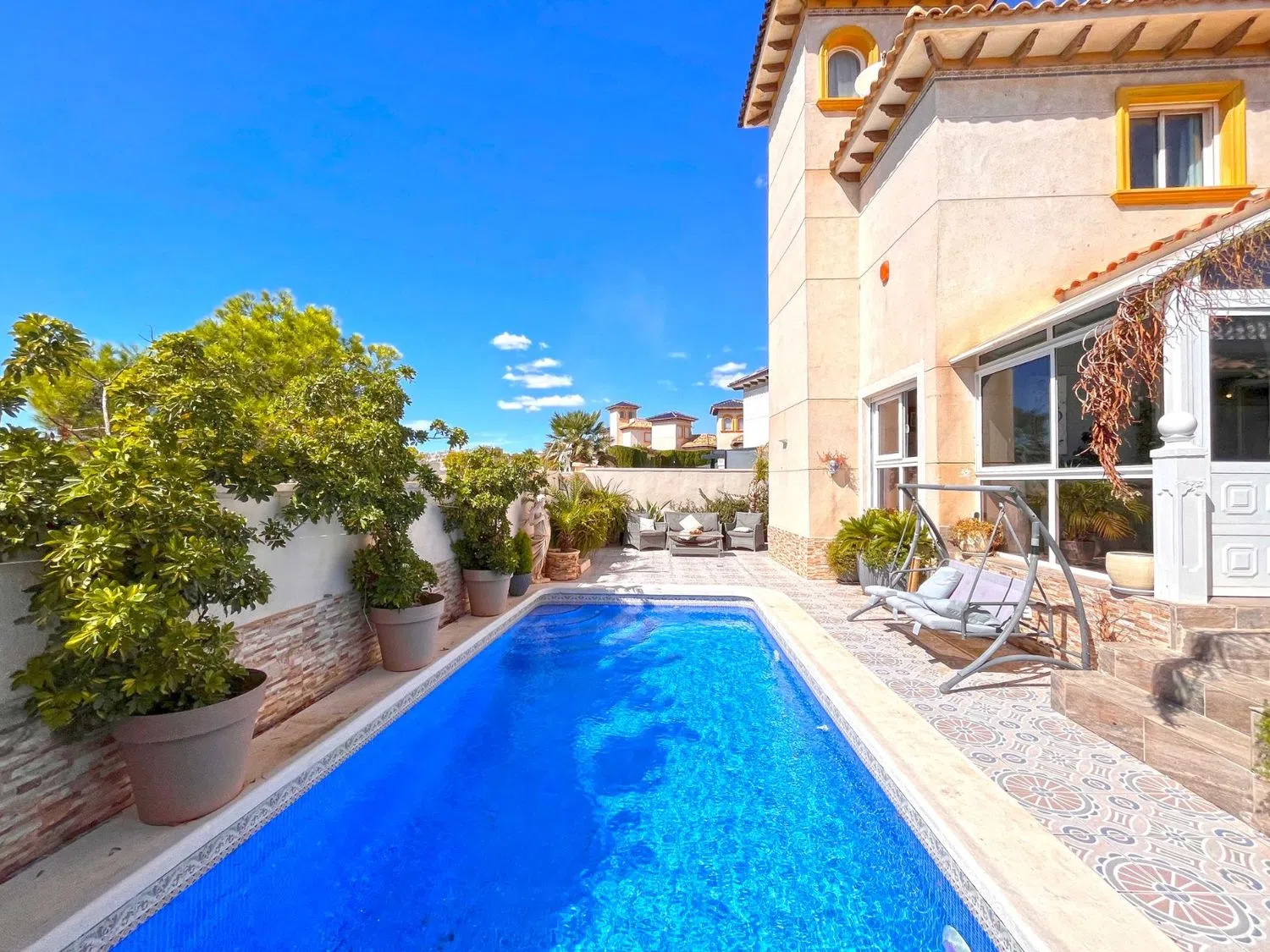 Эта великолепная независимая вилла с 4 спальнями и 3 ванными комнатами расположена в конце тихой улицы, обеспечивая идеальное сочетание уединения и комфорта, всего в нескольких минутах от центральной части города. Проектирована для комфортной семейной жизни и возможности принимать гостей, данная собственность предлагает гибкие пространства, распределенные на нескольких уровнях.