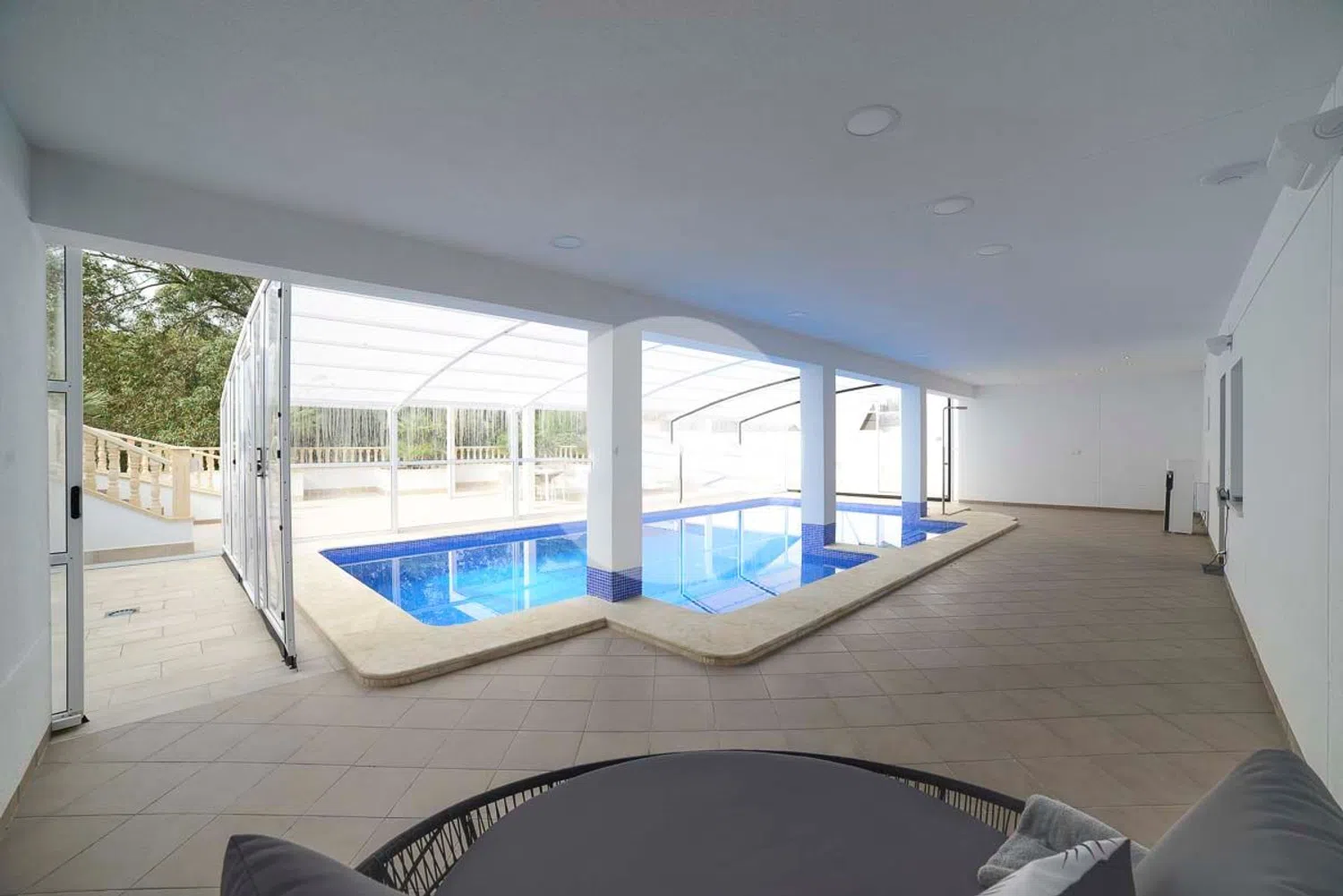 Поражающий уютный дом, расположенный всего в 400 метрах от пляжа, предлагает невероятное качество жизни. Здесь вас ждёт роскошный крытый бассейн с подогреваемой водой, который идеально подходит для круглогодичного отдыха. Установленная зона для отдыха и солнечные площадки создают атмосферу уюта и расслабления.