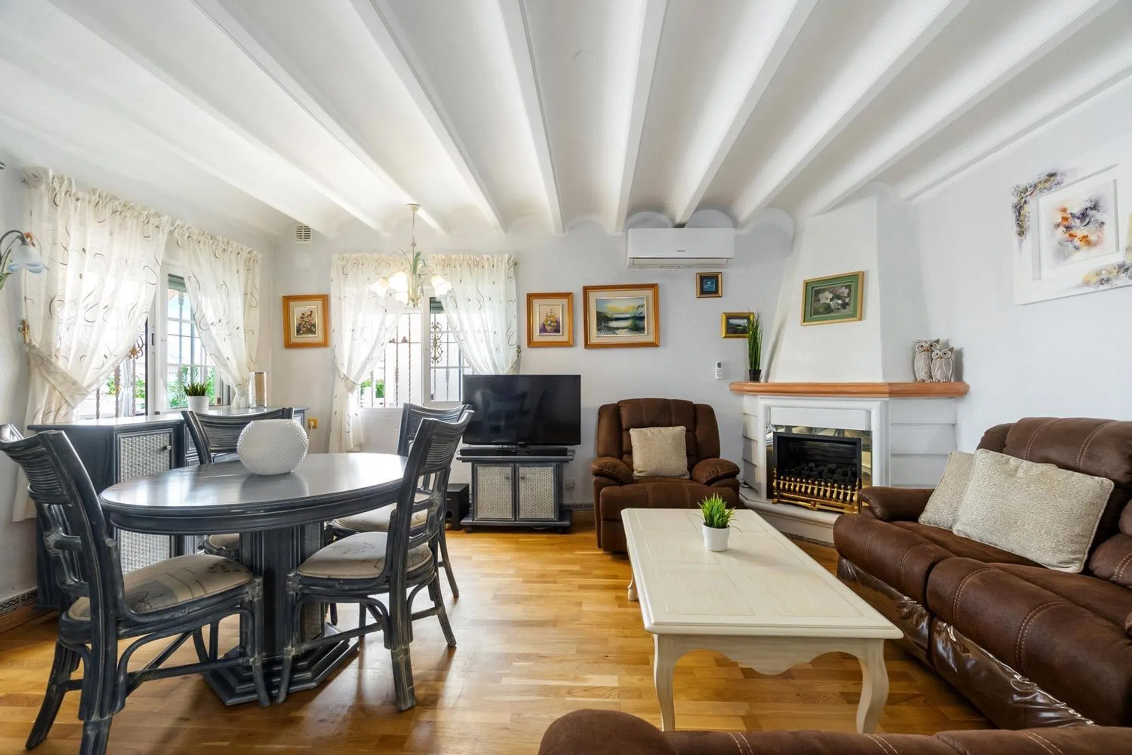 Chalet independiente de estilo Mediterráneo en Playa Flamenca Te presentamos esta encantadora vivienda con 303 m² de parcela privada, ubicada en una de las zonas más deseadas de Orihuela Costa: Playa Flamenca. Aquí podrás disfrutar de un clima excepcional durante todo el año, con más de 300 días de sol y temperaturas suaves que invitan a vivir al aire libre. La casa ofrece todo lo que necesitas para tu comodidad: Piscina privada para refrescarte en los días soleados. Espacio en la parcela par aparcamiento con pérgola. Un acogedor jardín embaldosado que rodea toda la vivienda. Un caseta de madera perfecta como trastero, taller o para guardar bicicletas. En la parte delantera, la vivienda cuenta con un porche abierto con toldo y otra zona acristalada que se convierte en una salita de estar ideal para relajarse. En el interior encontrarás: Luminoso salón comedor con chimenea de gas. Cocina americana, integrada y práctica. 3 dormitorios amplios. 2 baños completos. Trastero adicional para almacenaje. Además, dispone de solárium privado para disfrutar del sol y las noches mediterráneas. Su ubicación es inmejorable: a menos de 700 metros del mar y a un paso de todos los servicios. Muy cerca encontrarás el famoso Centro Comercial La Zenia Boulevard, un espacio al aire libre con más de 150 tiendas de moda, ocio, restaurantes y zonas de entretenimiento para toda la familia. También tendrás supermercados, bares y restaurantes a pocos minutos andando. La vivienda se vende amueblada y equipada, lista para entrar a vivir. Es ideal tanto como residencia familiar como para vacaciones o largas estancias. No dejes pasar esta oportunidad de tener tu propio hogar en la Costa Mediterránea. Llámanos hoy mismo y pide tu cita para visitarla. ¡Te encantará!
