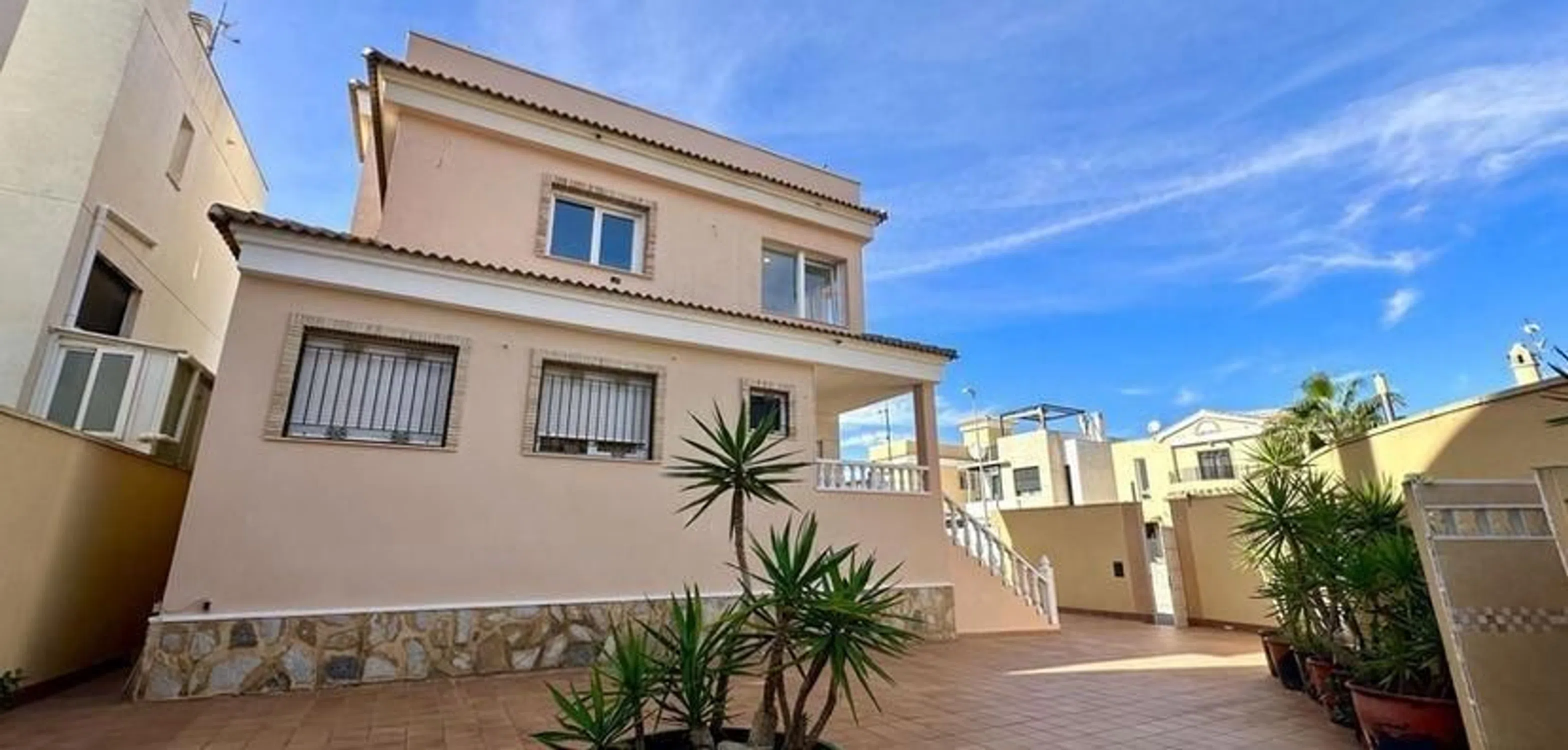 Este chalet independiente en Orihuela Costa representa una excelente oportunidad para quienes buscan una vivienda amplia, versátil y situada en una de las zonas con mayor demanda residencial y turística de la Costa Blanca. Ubicado a solo unos minutos de las playas y muy próximo a reconocidos campos de golf como Villamartín, Las Ramblas, Campoamor y Las Colinas, ofrece un entorno privilegiado rodeado de naturaleza, ocio y servicios. La propiedad cuenta con 120 m2 construidos, un sótano de 75 m2 perfectamente aprovechable y una parcela de 280 m2 que incluye una extensa terraza, aparcamiento privado y espacio suficiente para la futura construcción de una piscina. Gracias a su orientación y distribución, la vivienda destaca por su luminosidad y por ofrecer diferentes ambientes para relajarse, recibir visitas o disfrutar en familia durante todo el año. El sótano completamente habilitado aporta un extra de funcionalidad, con un salón adicional, dos dormitorios, un baño y un lavadero, lo que permite destinar esta planta a invitados, zona de ocio, despacho o incluso alojamiento independiente. En la planta baja, la casa ofrece un amplio salón-comedor muy luminoso, una moderna cocina americana, un aseo de invitados y un segundo lavadero, creando un espacio práctico y cómodo para el día a día. La primera planta alberga dos dormitorios —incluyendo un dormitorio principal con vestidor— y un baño completo. Finalmente, el solárium privado en la azotea proporciona un espacio perfecto para relajarse al aire libre, tomar el sol o disfrutar de las vistas despejadas. En conjunto, esta vivienda combina comodidad, funcionalidad y grandes posibilidades de personalización, lo que la convierte en una opción ideal tanto como residencia habitual como para uso vacacional o inversión inmobiliaria con excelente potencial de rentabilidad.