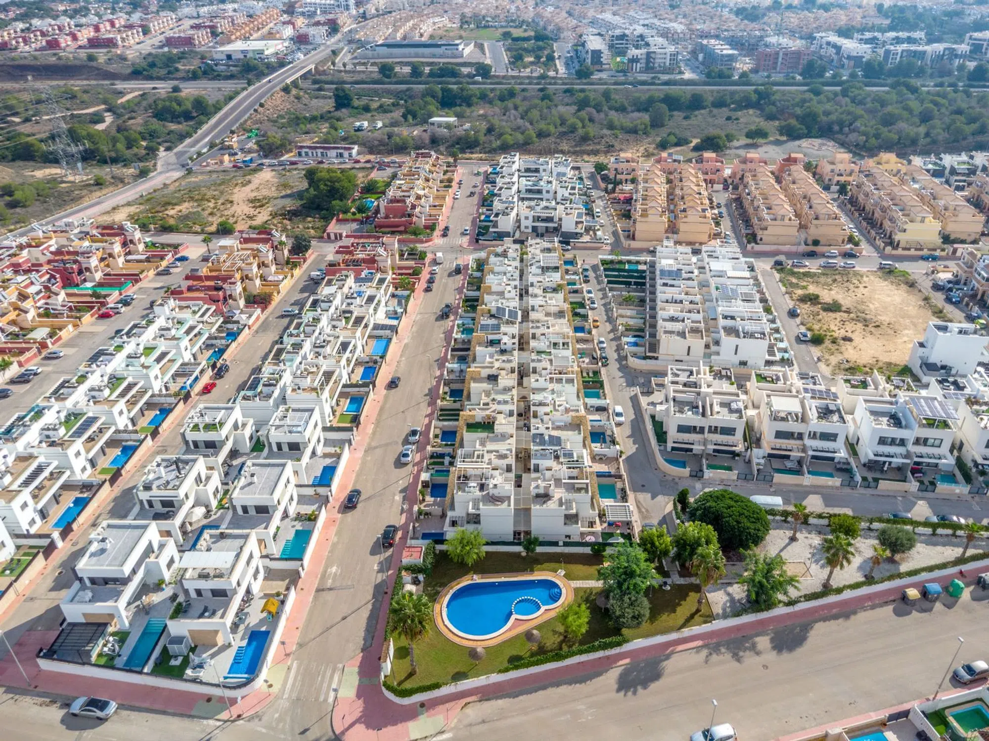 Moderno adosado con piscina privada y solárium Te presentamos este moderno adosado que ofrece 3 dormitorios, 3 baños, una piscina privada y un precioso solárium con vistas. La vivienda se distribuye en dos plantas y combina un diseño contemporáneo con el máximo confort, siendo ideal tanto como residencia habitual como vivienda vacacional. En la planta baja se encuentra un luminoso y amplio salón con cocina abierta de estilo moderno, que se entrega totalmente equipada con electrodomésticos. En esta planta también hay un dormitorio y un baño, perfecto para invitados o para quienes prefieren tener una habitación en la planta principal. La primera planta cuenta con dos dormitorios adicionales, ambos con su baño en suite, lo que aporta mayor comodidad y privacidad. El solárium bien aprovechado ofrece unas vistas fantásticas de la zona, ideal para tomar el sol o disfrutar de agradables veladas bajo las estrellas. La vivienda se vende completamente amueblada, y se ha cuidado cada detalle: dispone de aire acondicionado en toda la casa y suelo radiante en los baños, garantizando confort durante todo el año. En el exterior podrás disfrutar de tu propia piscina privada y de varias terrazas, perfectas para relajarse o pasar momentos agradables con familia y amigos. Además, los residentes tienen acceso a una zona comunitaria con piscina y zonas verdes, donde se puede disfrutar de un ambiente tranquilo y acogedor. Situada en la prestigiosa zona de Villamartín, en la Costa Blanca, esta vivienda goza de una ubicación privilegiada, rodeada de hermosos paisajes y con excelentes servicios. A pocos minutos encontrarás campos de golf, restaurantes, cafeterías y tiendas, así como las maravillosas playas de Orihuela Costa. El aeropuerto de Alicante se encuentra a unos 45 minutos en coche. Villamartín es la elección perfecta para quienes sueñan con un hogar moderno, soleado y tranquilo, cerca de todo lo mejor que ofrece la Costa Blanca.