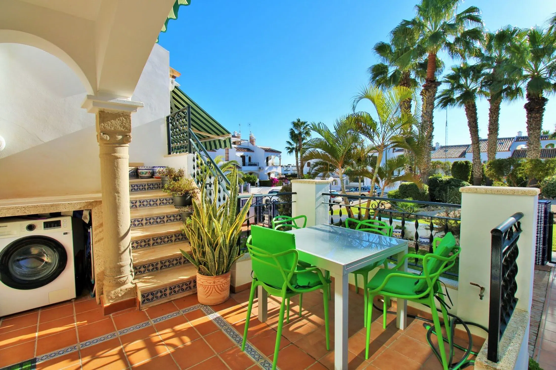 Bungalow estilo Lola mejorado en venta en la codiciada comunidad cerrada de R9 en Pau 8, Villamartin. Cuidado con mimo por el mismo propietario desde nuevo, esta encantadora vivienda disfruta de una ubicación inmejorable, a solo 10 minutos a pie de la Plaza de Villamartin y del campo de golf de Villamartin, rodeada de una excelente oferta de bares, restaurantes y servicios. La comunidad está bien mantenida, con piscina comunitaria, parking comunitario, y será re-pintada por completo antes de finales del segundo trimestre de 2026. La propiedad ofrece jardines privados delantero y trasero, además de una terraza delantera ampliada con vistas a las zonas verdes. En el interior, cuenta con un luminoso y cómodo salón-comedor, una cocina renovada completamente equipada con galería, y dos dormitorios dobles con armarios empotrados. El dormitorio principal dispone de baño en suite con ducha a ras de suelo y acceso directo al jardín trasero. El segundo dormitorio ha sido mejorado con puertas correderas acristaladas que dan a una terraza tipo Julieta con escalera de acceso al jardín, además de almacenaje adicional debajo. Desde la terraza delantera, unas escaleras externas conducen al solárium privado, donde se ha añadido un ánexo adicional con dormitorio para invitados y baño en suite. Se vende amueblado, con electrodomésticos, aire acondicionado, calefacción central y gas ciudad. Una magnífica oportunidad en una de las zonas más populares de Villamartin — se recomienda una visita temprana.