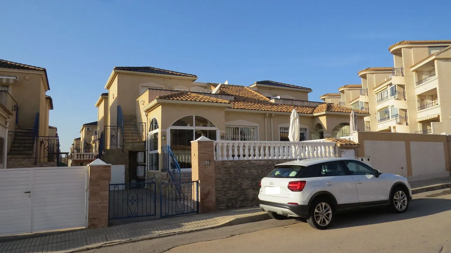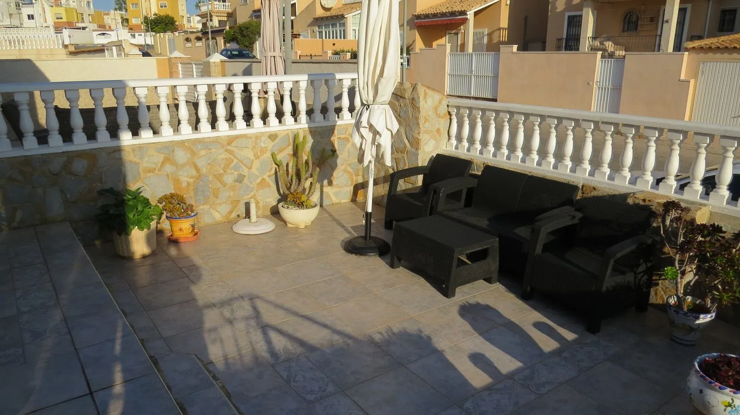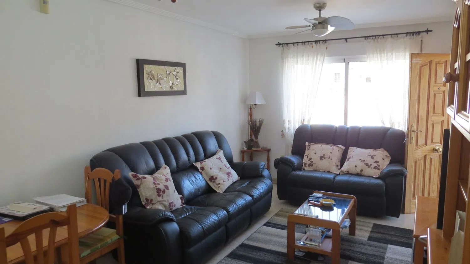 NO SE ALQUILA. Esta encantadora propiedad se encuentra a poca distancia del supermercado Consum en el tranquilo barrio de Los Altos. Situado en Orihuela Costa, una zona en el sur de la Costa Blanca Sur. Hay un montón de tiendas, restaurantes, tiendas especializadas, entretenimiento, playas de arena, etc. Su céntrica ubicación hace que nada esté lejos, rodeado de varios campos de golf, bonitos pueblos, espacios naturales, lugares de interés y centros comerciales. Todo ello garantiza que en sus inmediaciones encontrará todo lo que necesita para unas vacaciones perfectas o para vivir de forma permanente. La urbanización a la que pertenece esta propiedad dispone de un verde jardín con una gran piscina comunitaria y una acogedora zona para tomar el sol. La propiedad en sí tiene un acogedor jardín delantero/terraza, con acceso para su coche. Antes de entrar en la casa hay una acogedora veranda con zona para sentarse. Después, se accede a un acogedor salón/sala de estar seguido de una cocina abierta que da acceso directo a un trastero/lavadero situado detrás. Además, en esta planta la casa cuenta con 2 dormitorios más y un cuarto de baño familiar. Una escalera en el exterior de la casa da acceso a un solarium con vistas al mar. Aquí también encontrará un tercer dormitorio con baño en-suite y una pequeña zona de estar con cocina americana y amplio espacio de almacenamiento. Además, esta propiedad tiene vistas al mar, persianas, alarma, armarios empotrados, mucho espacio de almacenamiento y aire acondicionado (frío/calor). Esta propiedad se vende sin muebles. En resumen, ¡una gran oportunidad de tener su propio lugar bajo el sol español! Suma: 250 euros/año Gastos de comunidad: 320 euros/año.