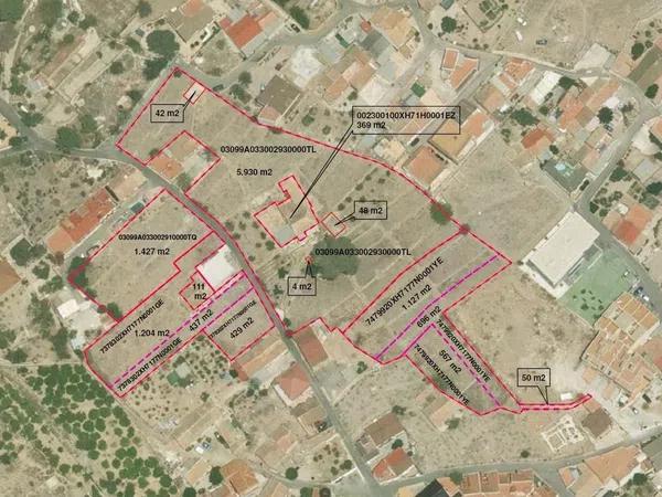 ¡GRAN OPORTUNIDAD DE INVERSIÓN! Finca de 12.441 m2 en Raiguero de Bonanza. La finca se distribuye en: - 3.488 m2 de suelo urbano residencial del núcleo de la pedanía, edificable en dos plantas más sótano y altillo, con ocupación del 100 % del suelo para construcción de viviendas adosadas, y del 40 % para construcción de viviendas aisladas. Orientación de las parcelas edificables a mediodía. Se pueden construir 30 chalets adosados, cada uno de ellos en una parcela de 6 metros de fachada por unos 18 metros de fondo. - 1.133 m2 de suelo urbano destinado a viales. - 7.451 m2 de suelo rústico, que linda con el casco urbano de la pedanía y tiene servicios de asfaltado y alcantarillado en calles, agua potable, luz, y teléfono. - 369 m2 de suelo urbano residencial, situado como enclave en el suelo rústico, ocupado por una casa bonita de 431 m2 construidos. Esta casa tiene siete habitaciones, dos salones, dos miradores, una cocina, un cuarto de baño, un patio, un almacén y una ermita. - Infraestructuras (pozo, 2 balsas, etc. ). Derecho al aprovechamiento de 10.000 m3/año de agua del pozo para riego de toda la finca. Cerca de todos los servicios necesarios, como supermercados, colegios, peluquerías, bancos, cafeterías, iglesia, farmacia, centro médico, transporte urbano, etc. A tan sólo 2 km de la ciudad de Orihuela, a 20 km de Murcia Capital, a 30 km de las Playas de Orihuela Costa, Torrevieja y Guardamar, y a 60 km del aeropuerto internacional de Alicante Referencia: ATT-198.