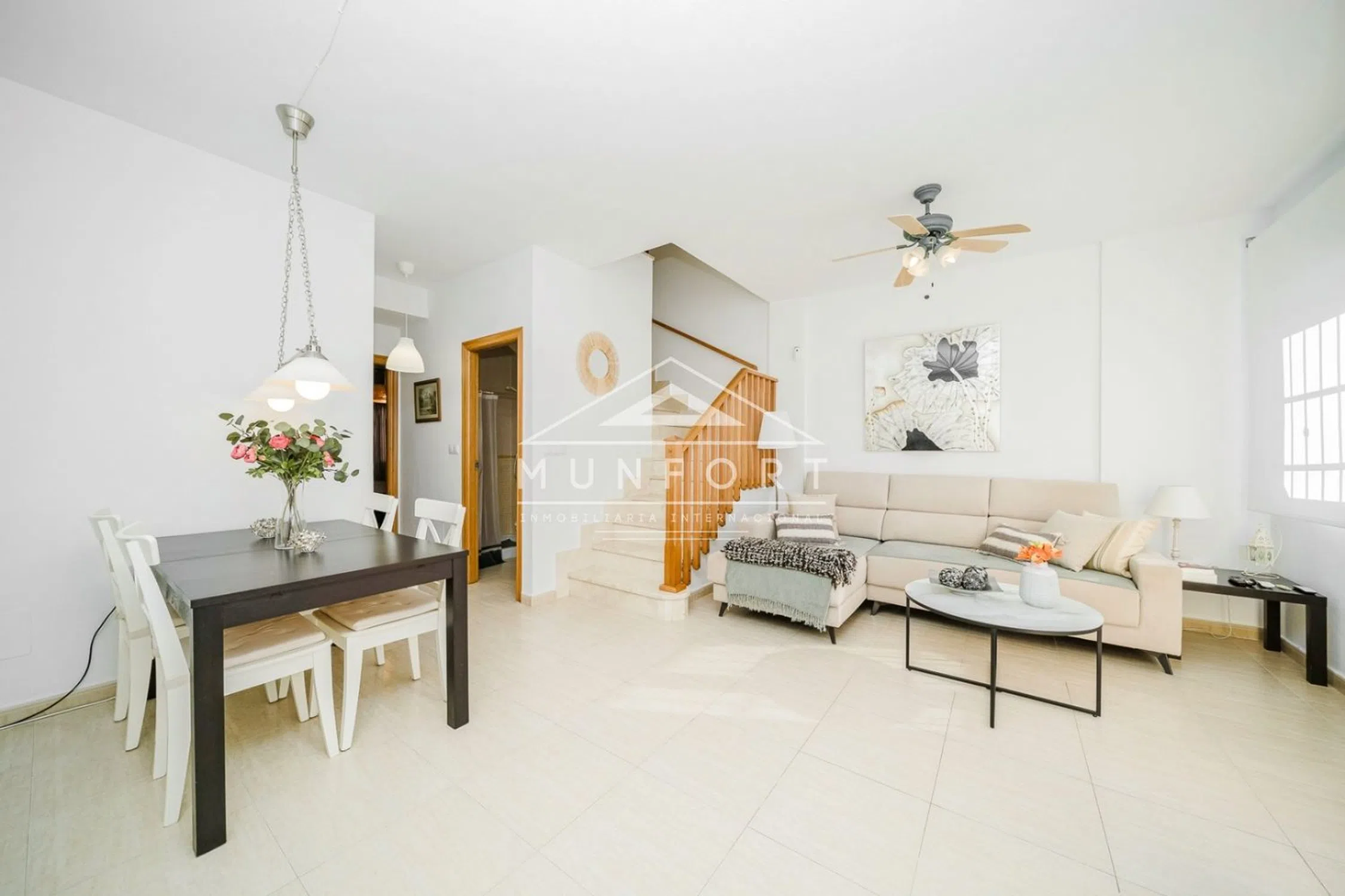 CASA ADOSADA EN TORRE DE LA HORADADA, A 400m DEL MAR VIVIENDA: (REF: MF031) 99㎡ CONSTRUIDOS ¡A SOLO 400m DE LA PLAYA! 4 DORMITORIOS · 2 BAÑOS JARDÍN DELANTERO + PATIO TRASERO TERRAZA EN DORMITORIO PRINCIPAL SOLARIUM PRIVADO PLAZA DE GARAJE INCLUIDA URBANIZACIÓN CON UBICACIÓN PRIVILEGIADA VENTILADORES Y AIRE ACONDICIONADO EN VARIAS ESTANCIAS AÑO CONSTRUCCIÓN: 2008 Podemos ayudar con la financiación hasta el 80%*. ¿Estás buscando una vivienda amplia cerca del mar? ¡Esta casa adosada en Torre de la Horadada puede ser perfecta para ti! En la planta baja encontrarás un dormitorio y un baño, además de un espacioso jardín en la entrada y un patio exterior en la parte trasera. En la primera planta la vivienda ofrece 3 dormitorios y un baño adicional; el dormitorio principal cuenta con acceso a una terraza con bonitas vistas. Desde la segunda planta se accede al solárium privado, ideal para disfrutar del sol y las vistas despejadas. La propiedad se vende con plaza de garaje incluida, a tan solo 400 m del mar. La urbanización ofrece una ubicación privilegiada entre la playa y los servicios. Torre de la Horadada cuenta con algunas de las mejores playas de la Costa Blanca, tres de ellas galardonadas con Bandera Azul por su calidad. Además, ofrece una gran variedad de bares, restaurantes y opciones deportivas como pádel, tenis y deportes de aventura. Dispone de excelentes conexiones por carretera. El aeropuerto de San Javier se encuentra a solo 18 minutos en coche. El centro de salud más cercano es el Centro de Salud del Pilar de la Horadada (a 2 km) y muy cerca se encuentra el Hospital Universitario de Torrevieja. También está cerca del Aeropuerto Internacional de la Región de Murcia (a 30 km) y del Aeropuerto de Alicante (a 51 km). Este anuncio y contenido visual no es vinculante, debe ser considerado únicamente a efectos informativos y puede estar sujeto a posibles errores y/o modificaciones. Por favor, consulte MUNFORT para más detalles.