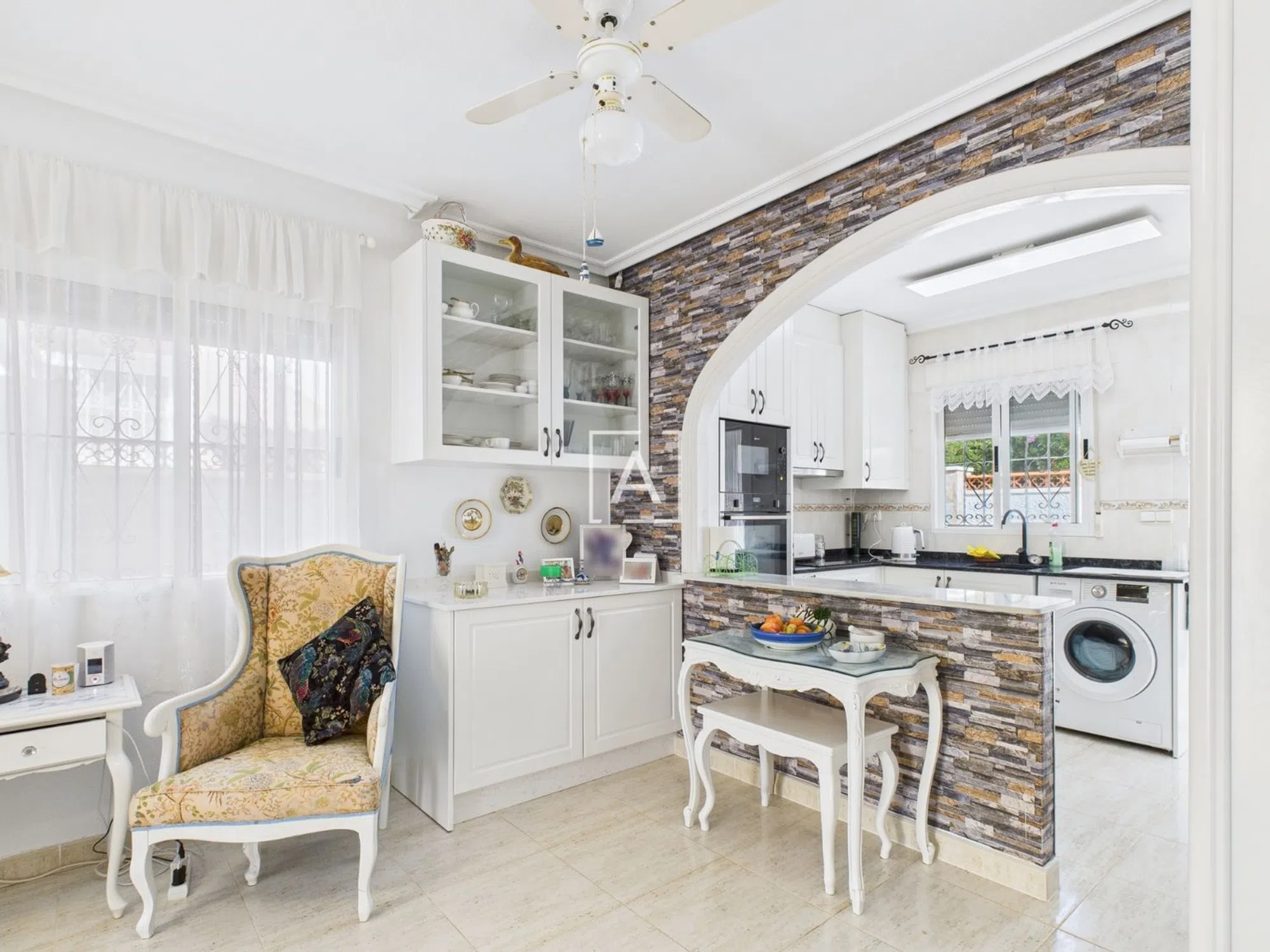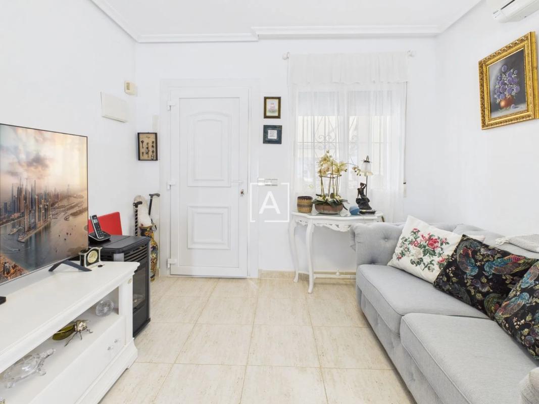 Nos complace presentar esta casa adosada de dos dormitorios y un baño, en excelente estado, con la ventaja añadida de una vivienda independiente en la primera planta. Con una ubicación ideal en el corazón de este codiciado pueblo, la propiedad se encuentra a poca distancia de supermercados, servicios locales y un bar. Se accede a la propiedad a través de un amplio porche cerrado con persianas, que da paso a un luminoso salón y una cocina americana. Desde el salón se accede a los dos dormitorios, ambos con armarios empotrados. El moderno baño ha sido reformado recientemente e incluye una ducha a ras de suelo. La cocina cuenta con una amplia gama de armarios altos y bajos, una barra americana y acceso directo al jardín trasero, un espacio ideal para comer al aire libre y relajarse. Una escalera exterior conduce a un apartamento independiente con salón-dormitorio diáfano, cocina y baño, perfecto para invitados o para obtener ingresos por alquiler. Además, la planta superior dispone de un trastero y un solárium orientado al sur. Al costado de la propiedad hay un camino de acceso privado que ofrece estacionamiento fuera de la vía pública. Esta versátil propiedad es ideal como residencia permanente, casa de vacaciones o una excelente oportunidad de inversión.