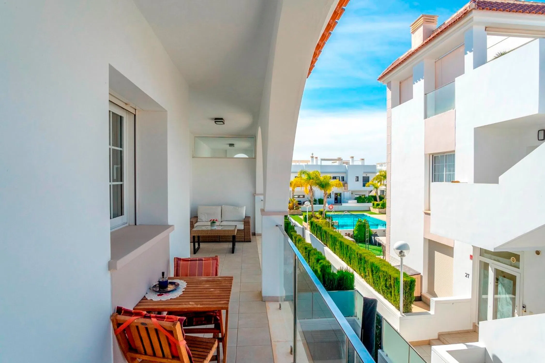 Descubra el encanto de vivir en un ático con esta encantadora residencia de dos dormitorios y dos baños que cuenta con 85 metros cuadrados de cómodo espacio habitable. Ubicada cerca del corazón de Ciudad Quesada, esta propiedad ofrece un refugio acogedor con todo lo esencial para un estilo de vida relajado. Al ingresar, será recibido por un atractivo diseño de planta abierta que conecta a la perfección las áreas de cocina, sala de estar y comedor. La cocina cuenta con electrodomésticos modernos y tiene vistas a la acogedora sala de estar, ideal para reuniones informales o tardes tranquilas en casa. Salga a la amplia terraza y disfrute de las pintorescas vistas de la piscina y sus alrededores, incluidas las impresionantes puestas de sol que pintan el cielo en tonos naranja y rosa. Este espacio al aire libre es perfecto para disfrutar de comidas tranquilas o simplemente relajarse con un buen libro al aire libre. Ascienda a la amplia terraza privada en la azotea, donde encontrará múltiples áreas para sentarse que ofrecen un entorno sereno para la relajación al aire libre. Una pérgola montada proporciona sombra en los días soleados, mientras que una cocina al aire libre con barbacoa permite cenar informalmente al aire libre con amigos y familiares. Los residentes de esta encantadora comunidad tienen acceso a hermosas áreas comunes con palmeras, una refrescante piscina y exuberante vegetación, creando un ambiente tranquilo para paseos tranquilos o baños por la tarde. Hay aparcamiento privado fuera del apartamento y las hermosas playas de Guardamar del Segura están a 10 minutos en coche. Este ático se vende completamente amueblado, listo para entrar a vivir, ya sea que esté buscando una residencia permanente o una escapada de vacaciones. Ubicada a solo unos pasos de restaurantes, servicios y tiendas, esta propiedad ofrece comodidad sin sacrificar la tranquilidad. No pierdas esta oportunidad de ser dueño de un pedazo de paraíso en Ciudad Quesada. Contáctenos hoy para programar una visita y experimentar el encanto de vivir en un ático en la Costa Blanca.
