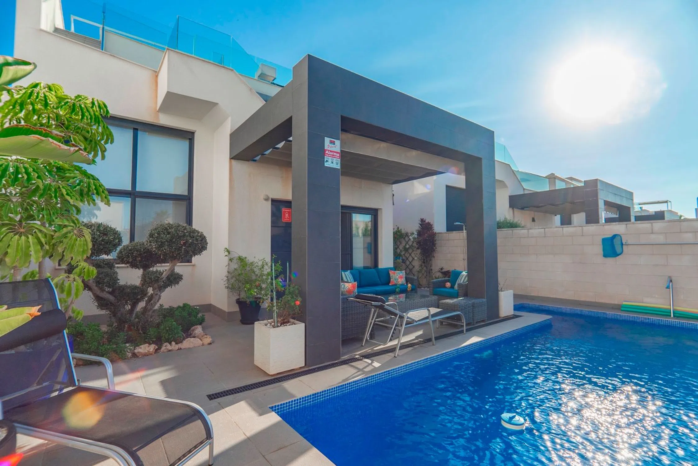 Villa moderna de 3 dormitorios y 2 baños con piscina privada y aparcamiento ubicada en Pueblo Bravo, Ciudad Quesada.