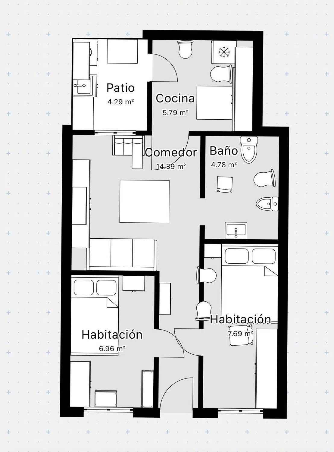 м2 полезной площади55 m²