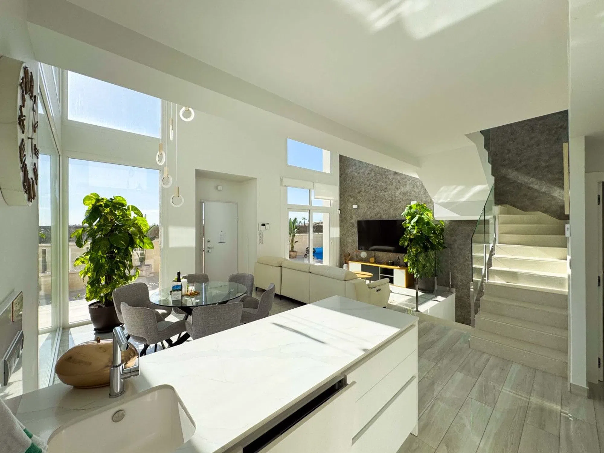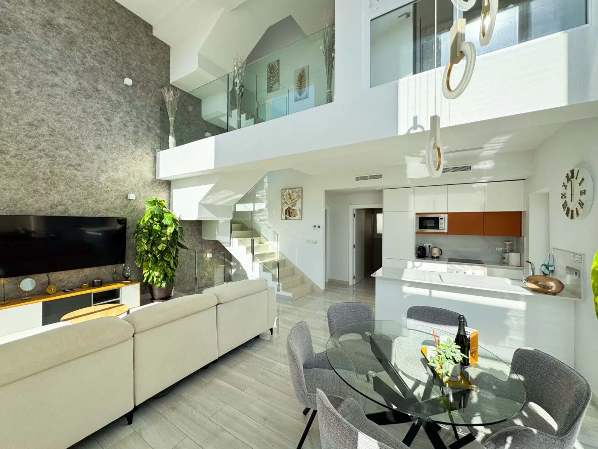 Esta villa moderna en Ciudad Quesada, Costa Blanca, cuenta con 3 dormitorios, piscina climatizada, parking privado y solárium en la azotea con vistas panorámicas al lago. Construida en 2023, se distribuye en cuatro niveles con espacios flexibles, incluyendo una sala de juegos en sótano convertible en hasta dos dormitorios adicionales. La cocina luminosa con isla y techos de 6 metros ofrece impresionantes vistas al lago. Dos dormitorios amplios con armarios empotrados y dos baños se encuentran en la primera planta, con orientación sur que maximiza la luz natural. El solárium en la azotea dispone de cocina de verano, suelo reforzado preparado para jacuzzi y espacio para cine al aire libre. En el exterior, la parcela de 250 m² incluye piscina climatizada con cascada, zona de descanso y barbacoa. Ubicada cerca de supermercados, restaurantes, colegios, campos de golf y playas, esta villa es ideal para vivir, vacaciones o inversión en alquiler. Contáctenos para visitar o solicitar visita virtual y descubrir esta propiedad excepcional.