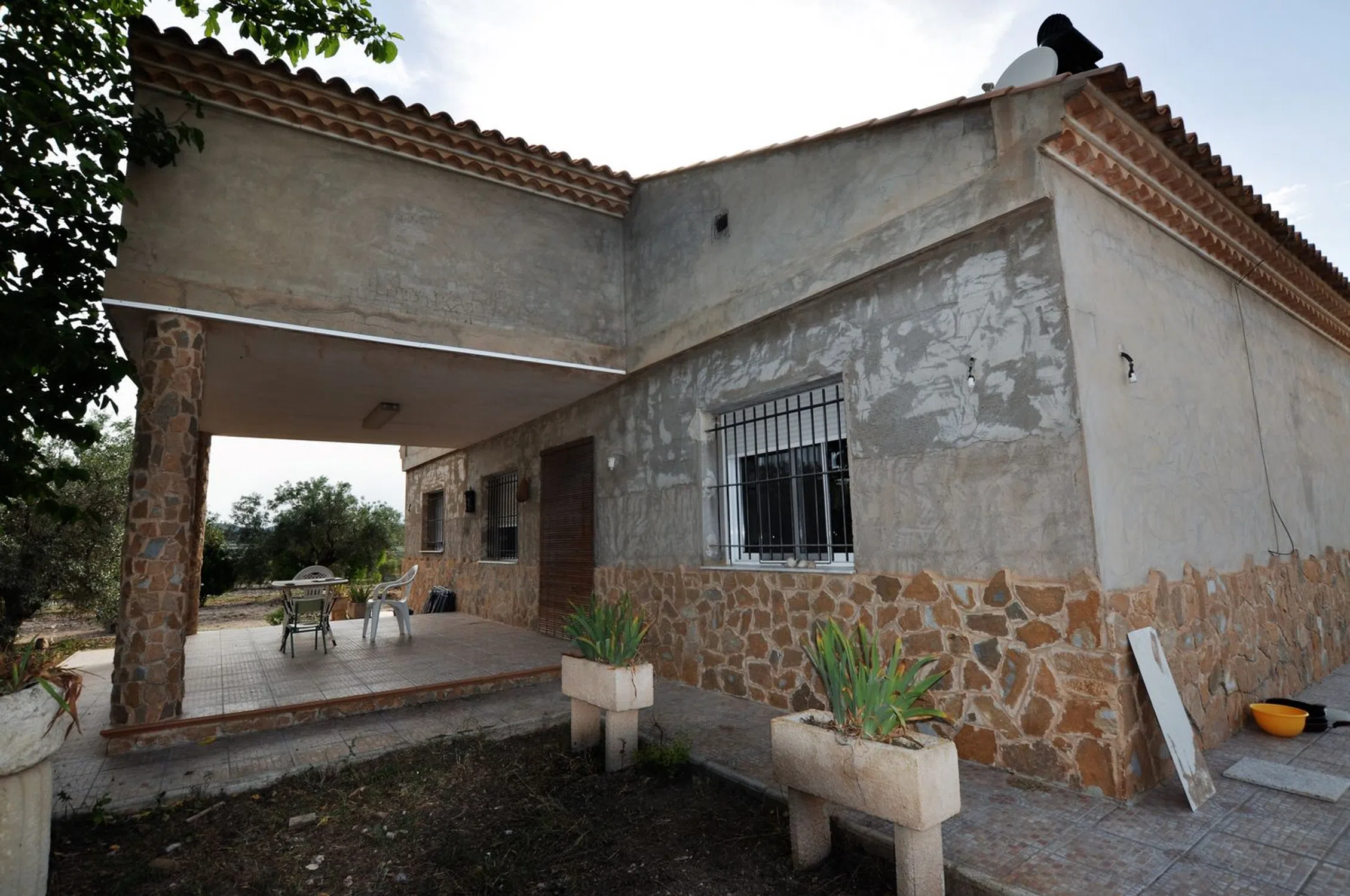 NO SE ALQUILA. Amplia casa de campo con 3 dormitorios, olivar y magníficas vistas Escondida entre más de 200 olivos productivos, esta casa de campo de generosas dimensiones ofrece tranquilidad, privacidad y todo el encanto de la vida rural, a solo unos minutos del pueblo más cercano. Construida en 2004 con estándares modernos, cuenta con aislamiento térmico y una barrera antihumedad para evitar daños por humedad ascendente. En la planta baja encontramos un luminoso salón-comedor con cocina abierta, dos dormitorios dobles con armarios empotrados y un cuarto de baño con bañera. Una chimenea en la zona de estar proporciona un ambiente acogedor en las estaciones más frías. Junto a la cocina hay un lavadero, ideal para la lavadora y almacenamiento adicional. Puedes disfrutar del desayuno en la barra americana o sentarte en la mesa del comedor. La preinstalación para calefacción central de gasoil ya está hecha; solo haría falta instalar los radiadores y la caldera. En la planta superior se encuentra el tercer dormitorio y un segundo baño, que conectan con una gran estancia diáfana, ideal como sala de juegos, oficina o segundo salón. La casa se asienta sobre una parcela vallada de aprox. 3.300 m², en la que también hay un garaje con cocina de verano anexa, perfecta para disfrutar del buen tiempo al aire libre. La excavación para una piscina ya está realizada, por lo que solo queda finalizar la obra. Fuera de la zona vallada, el terreno está plantado de olivos en producción, con una cosecha de más de 3.000 kg de aceitunas el año pasado. Para que la casa luzca en todo su esplendor, aún falta enlucir la fachada exterior. El jardín maduro también puede ser acondicionado o ajardinado a gusto del comprador. Ubicación: La propiedad está situada cerca de Salinas, un pequeño pueblo que ofrece todos los servicios básicos: tiendas, bancos, farmacia, colegio, guardería y centro de salud. La ciudad más cercana, Sax, se encuentra a unos 5 minutos en coche, el acceso a la autovía está a unos 10 minutos, y la ciudad de Elda, con hospital y una amplia oferta comercial, está a unos 15 minutos. El mar Mediterráneo se encuentra a unos 50 km. Las localidades cercanas con sus centros históricos y castillos impresionantes también merecen una visita y ofrecen una ventana a la historia de España. Una oportunidad excepcional para adquirir una espaciosa casa de campo con gran potencial en un entorno natural privilegiado.