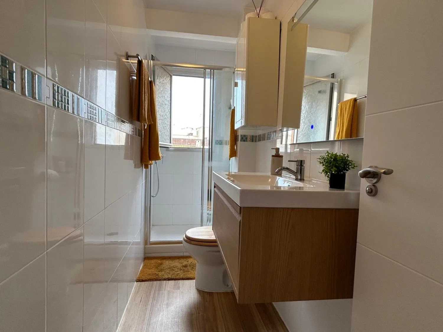 Мы рады приветствовать вас в этот элегантный и тщательно спланированный апартамент в популярном районе у моря. Апартамент находится на третьем этаже (без лифта) и включает три спальни, два ванных комнаты, уютную гостиную с кухней и балконом. Гостиная создает комфортную атмосферу, где есть пространство для зоны отдыха и обеденной зоны. Рабочая кухня удобно спроектирована с хорошими шкафами и рабочими поверхностями.