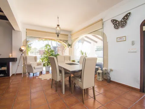 Este chalet en Pueblo Levantino, Santa Pola, goza de una fantástica ubicación en una zona residencial privilegiada y tranquila. Con una superficie construida de 406 m² sobre una parcela de casi 2000 m², ofrece amplios espacios interiores y exteriores. La vivienda dispone de 4 dormitorios, todos ellos luminosos y con vistas al jardín, así como 3 baños completos. El salón, con grandes ventanales, deja entrar mucha luz natural y ofrece una hermosa vista del jardín, creando un ambiente ideal para relajarse, haga el tiempo que haga. La villa está equipada con calefacción eléctrica en todas las habitaciones y una chimenea en el salón, proporcionando comodidad en los meses más fríos. Los acabados incluyen marcos de madera en las ventanas y suelos de baldosas y parquet, dando un toque cálido y elegante a las estancias. La vivienda está lista para entrar a vivir y no requiere reformas. En el exterior, la parcela ofrece muchas ventajas: una piscina privada con valla y un carril de natación de 15 metros de largo, una zona poco profunda de 3×5 metros ideal para niños, una sauna, vestuarios exteriores con duchas, un campo de panna con césped artificial y una pista de voley playa con arena de cuarzo. Además, hay un trastero exterior de más de 50 metros cuadrados y un amplio aparcamiento. La parcela, parcialmente rodeada de árboles en zonas concretas, ofrece rincones sombreados y frescos, perfectos para disfrutar de la tranquilidad del entorno. También hay una zona de juegos para niños y un jardín paisajístico. La parcela se encuentra en la parte alta de la urbanización, lindando con las montañas al este y nor En el exterior, la parcela ofrece muchas ventajas: una piscina privada con valla y un carril de natación de 15 metros de largo, una zona poco profunda de 3×5 metros ideal para niños, una sauna, vestuarios exteriores con duchas, un campo de panna con césped artificial y una pista de voley playa con arena de cuarzo. Además, hay un trastero exterior de más de 50 metros cuadrados y un amplio aparcamiento. La parcela, parcialmente rodeada de árboles en zonas concretas, ofrece rincones sombreados y frescos, perfectos para disfrutar de la tranquilidad del entorno. También hay una zona de juegos para niños y un jardín paisajístico. La parcela está situada en la parte alta de la urbanización, lindando con las montañas al este y al norte, sin obstáculos a la brisa marina del faro de Santa Pola. Esta ventaja se nota especialmente en los días calurosos y sobre todo por la noche, proporcionando un ambiente fresco y agradable. La parcela se puede dividir en dos parcelas edificables, permitiendo la posibilidad de construir una segunda villa o ampliar las instalaciones existentes. La orientación sureste garantiza que la casa reciba mucha luz natural durante todo el día, y la terraza cubierta es perfecta para disfrutar del aire libre en cualquier estación. Entre los extras se incluyen armarios empotrados, una despensa, un solarium y puertas automáticas. Pueblo Levantino cuenta con alumbrado público y alcantarillado, ofreciendo todas las comodidades de una zona urbana en un entorno natural. Ubicación estratégica: - A 15 minutos de Alicante - A 5 minutos de las playas de Santa Pola - Elche a unos 20 minutos - Cerca de colegios, centros comerciales y otros servicios, lo que lo convierte en una opción ideal tanto para familias como para aquellos que buscan tranquilidad cerca de la ciudad.