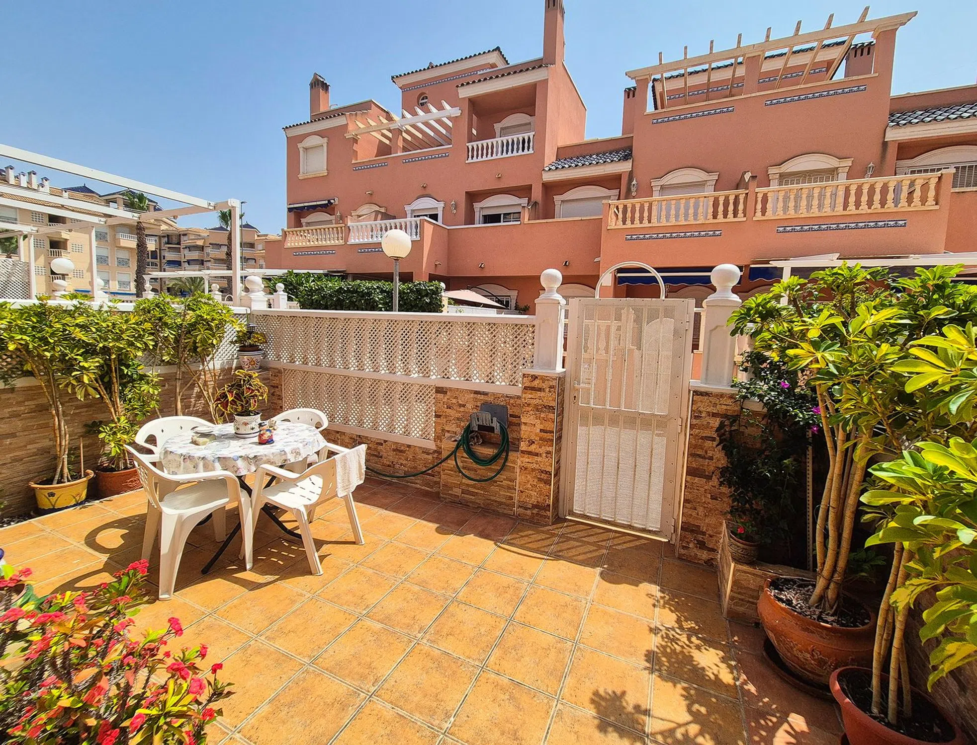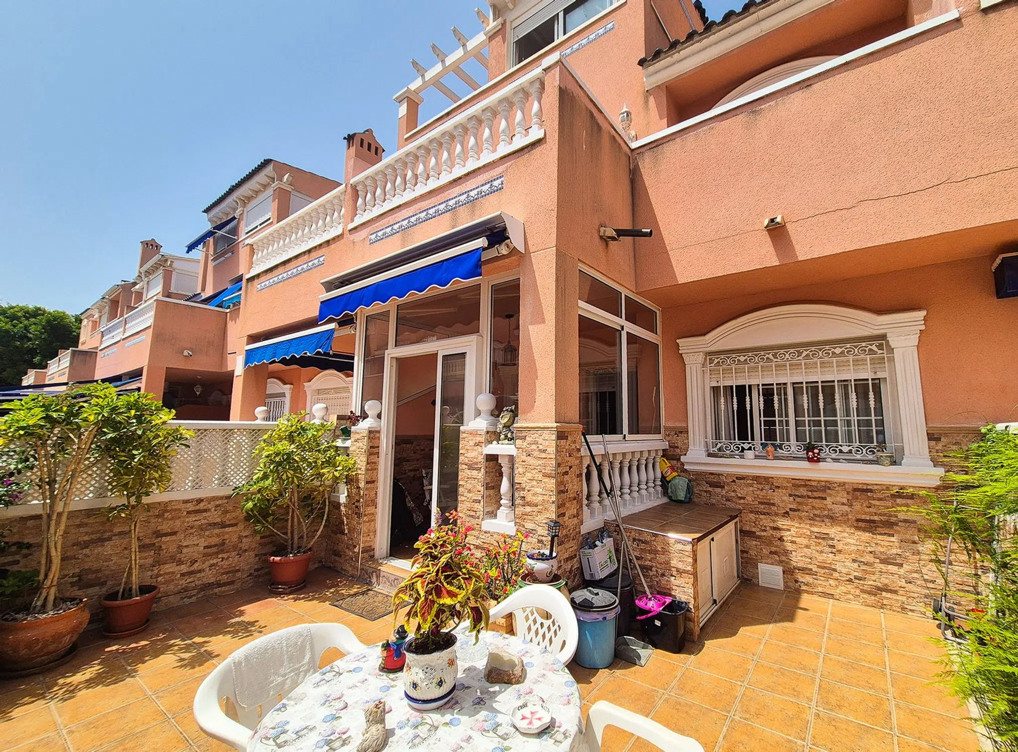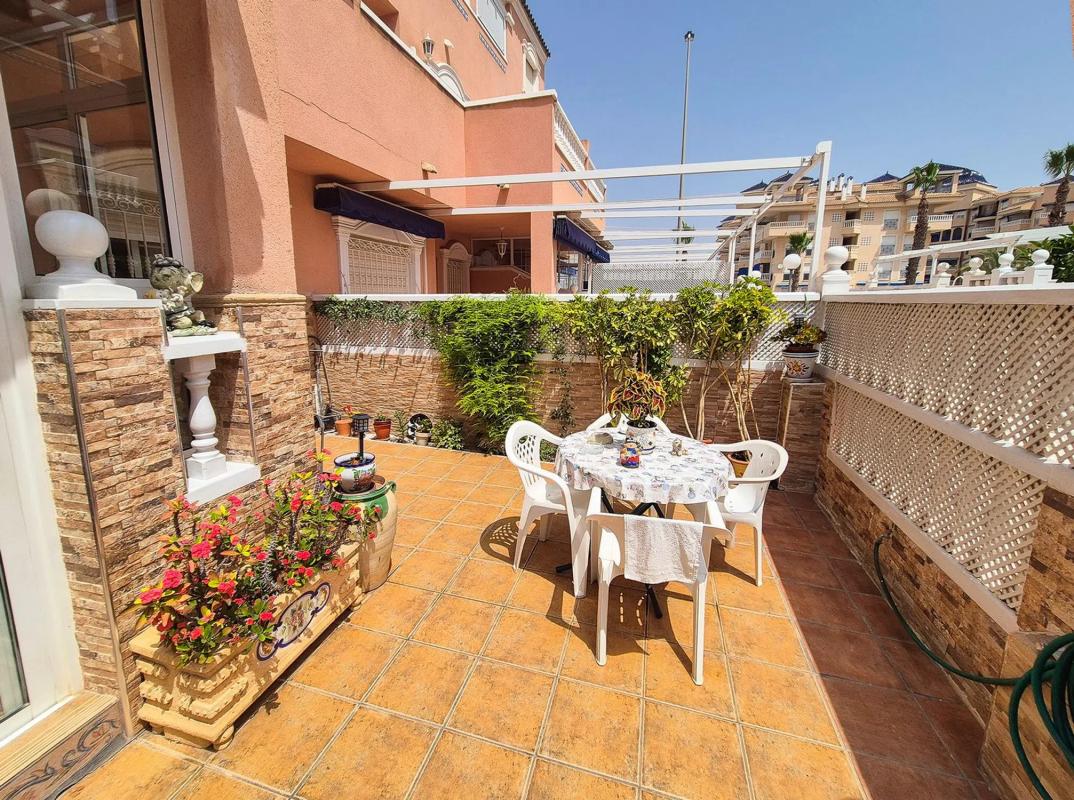 Esta encantadora vivienda se encuentra en una tranquila zona residencial de Santa Pola, rodeada de todos los servicios y perfectamente comunicada con las principales vías de acceso. Su excelente distribución en tres plantas la convierte en una opción cómoda y funcional tanto para vivir todo el año como para disfrutarla como segunda residencia. La entrada principal conduce a una amplia terraza ideal para disfrutar del clima mediterráneo. Desde allí se accede a un acogedor porche cerrado que da paso a un luminoso salón-comedor con chimenea, perfecto para reuniones familiares o momentos de relax. En esta misma planta se encuentra una cocina independiente con gran capacidad de almacenaje, un práctico aseo de cortesía y una galería con ducha y mampara que aporta aún más comodidad al conjunto. En la primera planta se ubican dos dormitorios dobles, ambos con armarios empotrados, y un baño completo. Uno de los dormitorios dispone además de acceso directo a una terraza privada, perfecta para disfrutar del sol o leer al aire libre. La segunda planta alberga un encantador dormitorio tipo buhardilla, con acceso a un amplio solárium que cuenta con zona de barbacoa y vistas despejadas, un espacio ideal para relajarse o disfrutar de veladas al aire libre durante todo el año. Entre sus equipamientos destacan los armarios empotrados, los electrodomésticos, el mobiliario incluido, las amplias terrazas y el acceso a bonitos jardines comunitarios que aportan un entorno agradable y bien cuidado. En definitiva, una propiedad con carácter, perfectamente mantenida y lista para entrar a vivir. Ideal para familias o como inversión, situada en una de las mejores zonas de Santa Pola, con todos los servicios a mano y un ambiente tranquilo y acogedor.