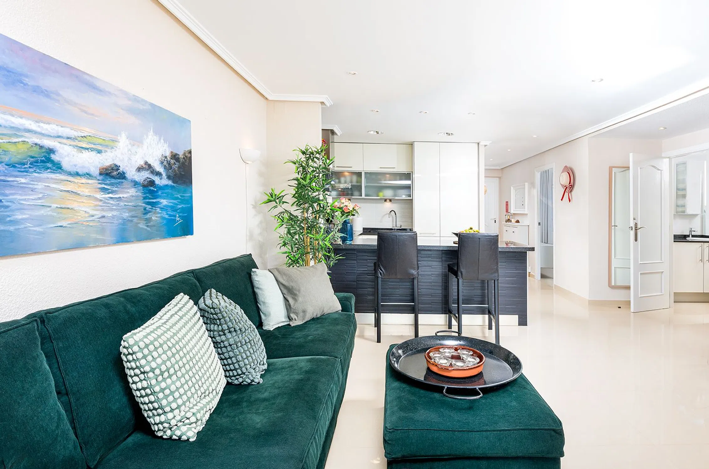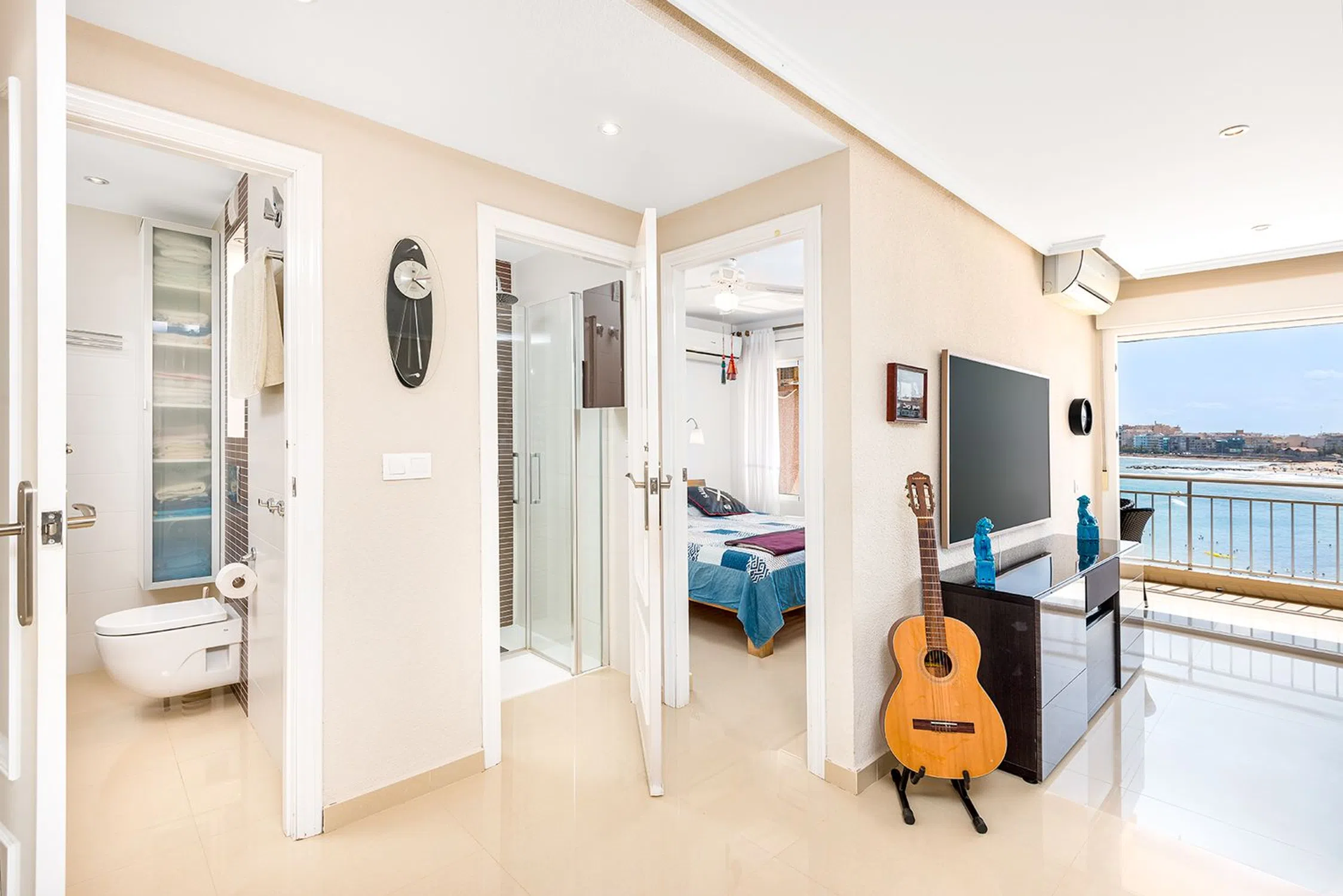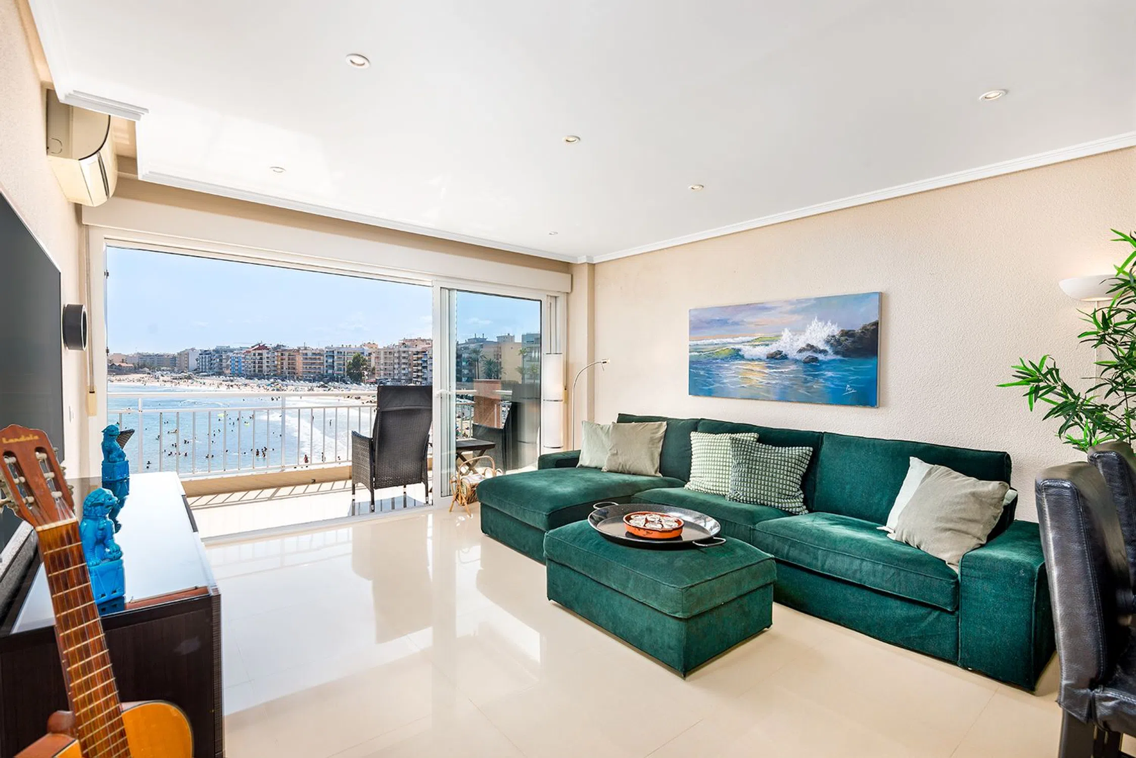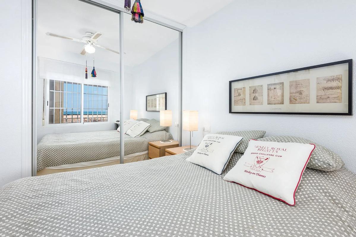 Felicidad frente a la playa en Playa de los Locos – Renovado con vistas panorámicas al mar Imagine despertarse con el sonido de las olas y las vistas panorámicas del Mediterráneo, todos los días. Este apartamento de primera línea, bellamente renovado, ubicado directamente en Playa de los Locos en Torrevieja, ofrece exactamente eso. Diseñado con un estilo escandinavo brillante y elegante, la casa de 3 dormitorios y 2 baños combina la vida de playa atemporal con el confort moderno. Los tres dormitorios, la cocina y la sala de estar ofrecen vistas ininterrumpidas al mar. La terraza de casi 20 m² orientada al sur se convierte en una verdadera extensión del hogar: el lugar perfecto para relajarse, cenar o simplemente escuchar las olas de abajo. Tome el ascensor directamente hacia abajo y salga directamente a la suave arena de una de las playas más queridas de Torrevieja. Dentro del edificio, encontrará una tienda de temporada para comprar pan fresco y artículos de primera necesidad, y justo abajo está el popular restaurante Luz de Mar, famoso por su pescado y carnes a la parrilla. A solo unos pasos más, el restaurante 222 es un favorito local para pizza y cenas informales. Se puede encontrar una amplia gama de restaurantes, bares y tiendas en un radio de 200 metros. Ya sea que esté buscando una residencia principal elegante, una casa de vacaciones o una inversión con potencial de alquiler durante todo el año, este apartamento cumple en todos los frentes. Características: 3 dormitorios, 2 baños Vistas panorámicas completas al mar desde todas las habitaciones Amplia terraza orientada al sur (aprox. 20 m²) Recientemente renovado en estilo escandinavo Ascensor con acceso directo a la playa Ubicación privilegiada frente a la playa con todos los servicios cerca Excelente potencial de alquiler.