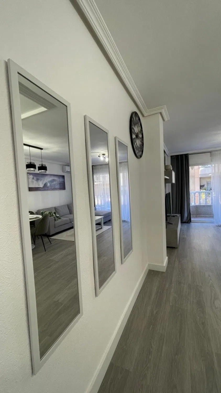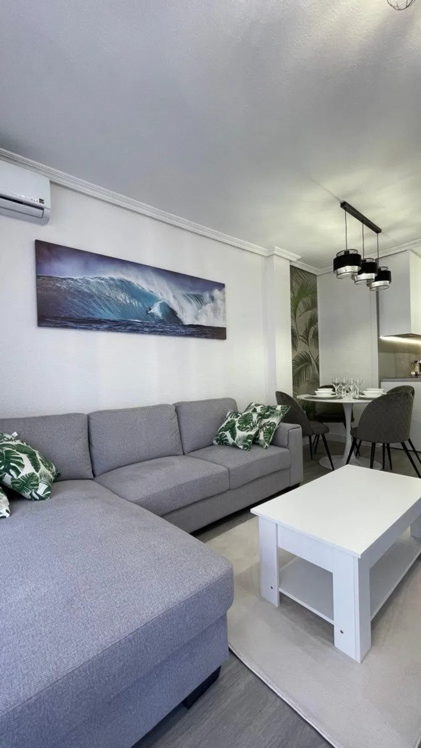 En el vibrante corazón de la ciudad, a solo unos pasos de las cristalinas aguas del paseo marítimo y del encanto de un pueblo pequeño, le espera esta joya completamente renovada: una casa que combina lo mejor de la ubicación, la comodidad y el estilo moderno. El apartamento, ubicado en la tercera planta de un edificio con ascensor, tiene 75 m² y ha sido completamente renovado con materiales cuidadosamente seleccionados y un mobiliario de buen gusto. Aquí encontrará un hogar donde cada detalle está en su lugar, listo para entrar a vivir sin tener que mover un dedo. La distribución incluye dos amplios dormitorios con armarios empotrados, un moderno baño con acabados elegantes y un luminoso salón con un ambiente abierto. Desde el salón se accede a un soleado balcón orientado al sur, el lugar perfecto para disfrutar del sol de la mañana, tomar un café al calor del sol o simplemente relajarse y disfrutar de la vida urbana. Gracias a su orientación sur, la casa disfruta de luz natural durante todo el día. El aire acondicionado garantiza un clima interior agradable durante todo el año, y la propiedad está en buen estado, con ascensor y buena accesibilidad. La ubicación es ideal para quienes desean estar a poca distancia de todo: tiendas, bares de tapas, farmacias, plazas, puerto deportivo y playa. Esta casa es ideal tanto para residencia permanente como para vacaciones o alquiler. Una fantástica oportunidad de adquirir una casa recientemente renovada en uno de los barrios más atractivos de Torrevieja, combinando las comodidades modernas con el pulso de una pequeña ciudad y la proximidad del mar Mediterráneo. Bienvenido a contactarnos para obtener más información o reservar una visita; estaremos encantados de mostrarle tanto física como digitalmente.