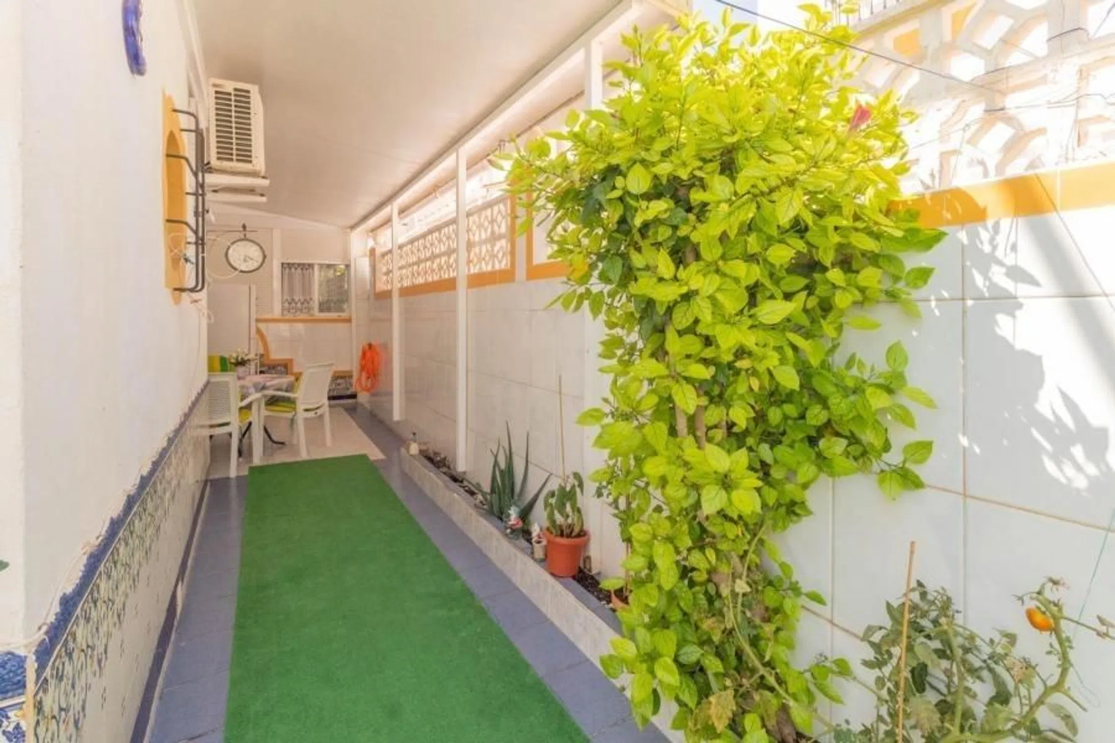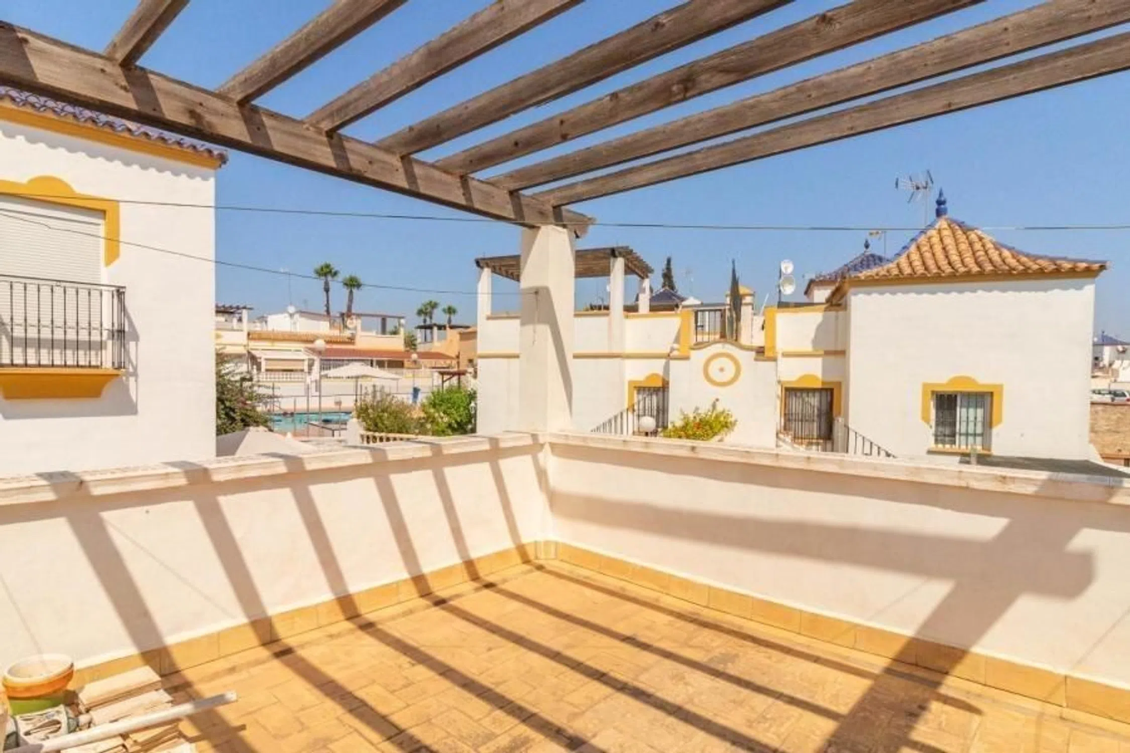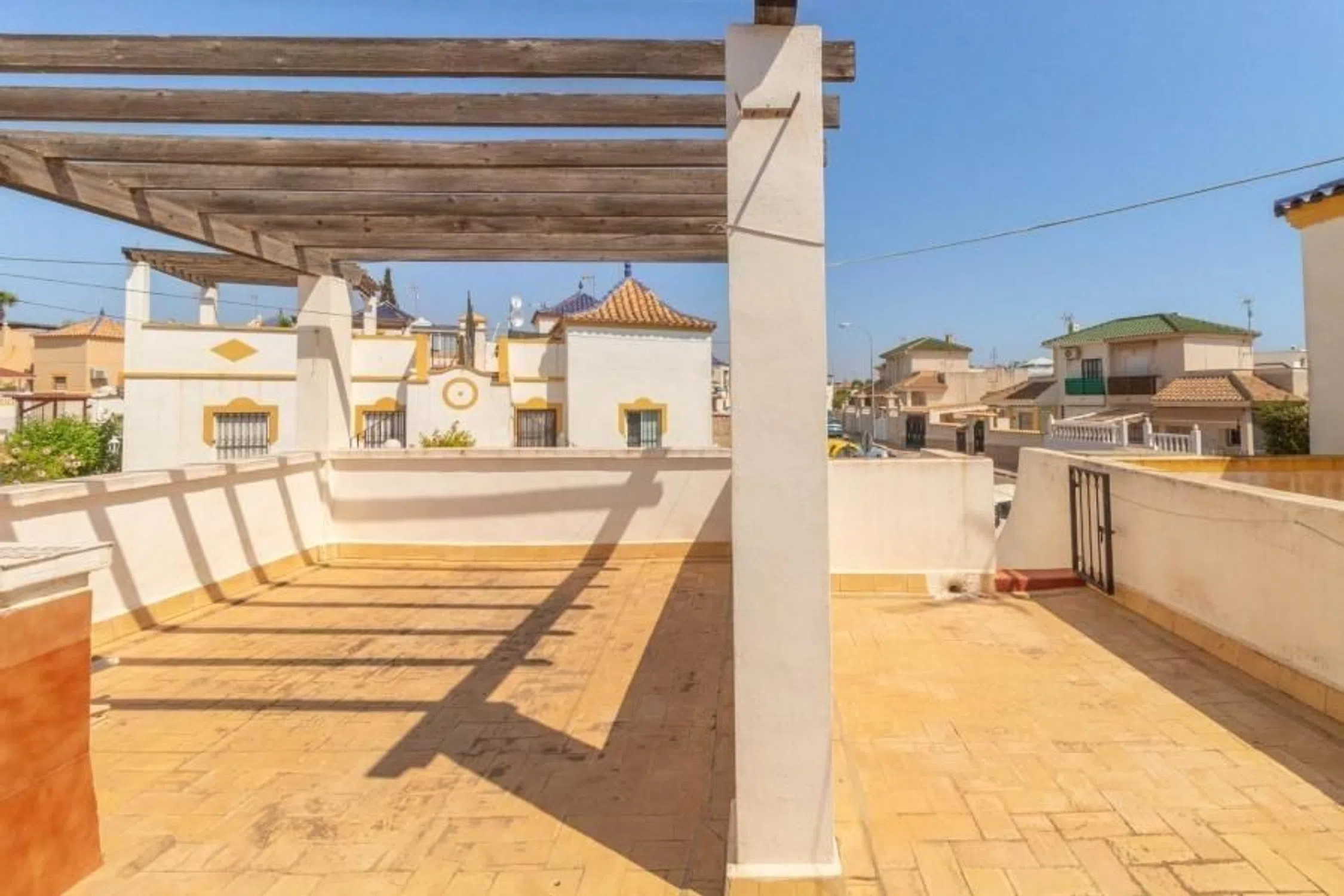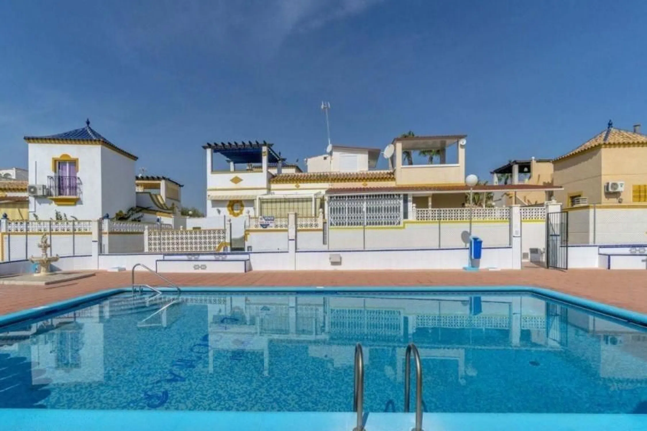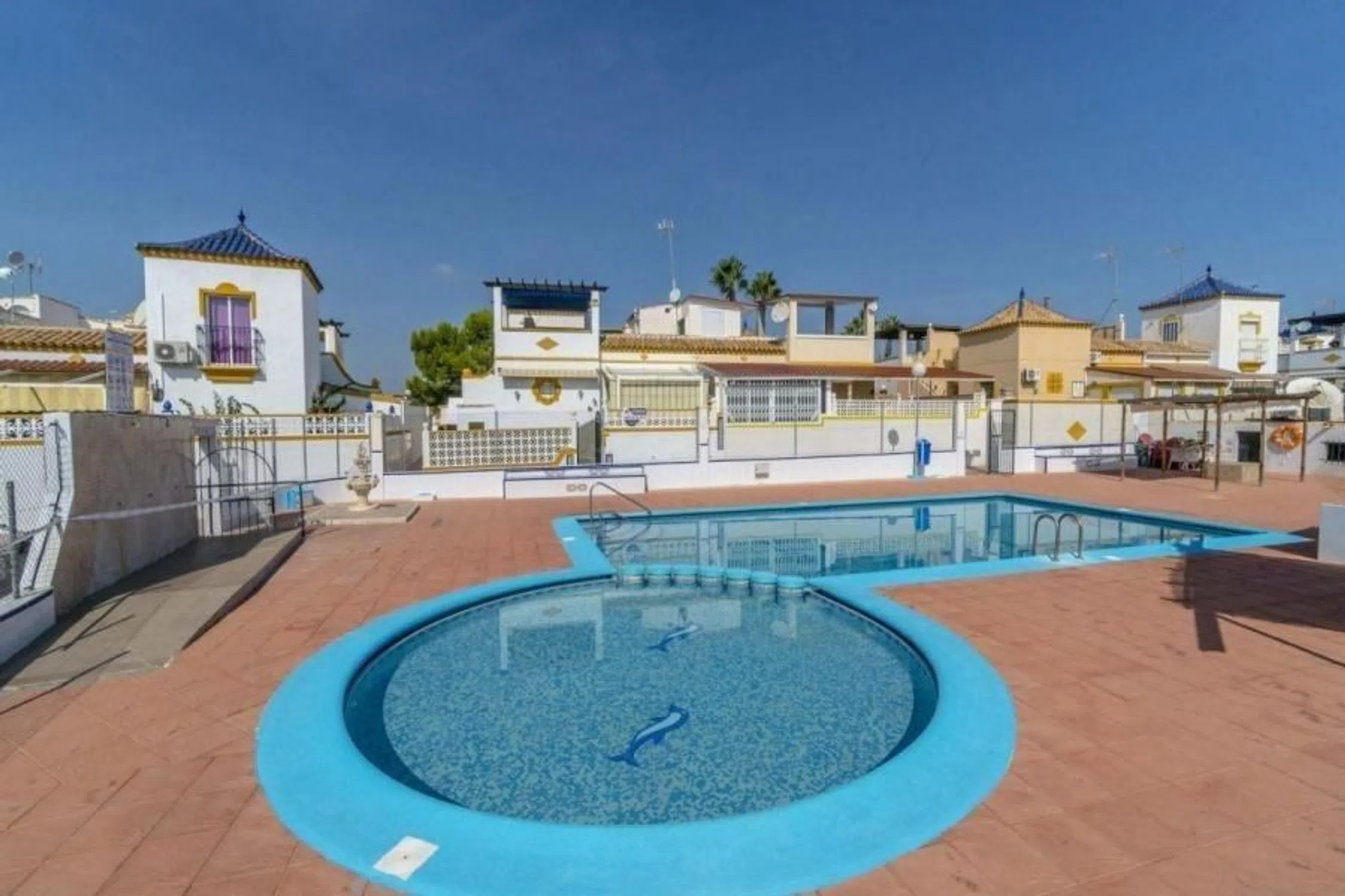 Vivienda pareada ubicada en una de las zonas más deseadas de la Costa Blanca. Esta propiedad en esquina combina comodidad, privacidad y ubicación privilegiada Características principales: . 2 amplios dormitorios con excelente iluminación natural. 1 baño completo. Salón luminoso y acogedor. Cocina totalmente equipada, lista para disfrutar. Terraza exterior de 44 m² ideal para reuniones, barbacoas o simplemente relajarte. Solárium privado de 45 m² con vistas despejadas y espacio para tomar el sol. Se vende amueblado y en perfecto estado, ¡solo necesitas traer tus maletas! . El residencial privado Lagomar I ofrece tranquilidad y seguridad, además de dos piscinas comunitarias para disfrutar en familia o con amigos. Ubicación inmejorable: a pocos minutos andando de bares, restaurantes, supermercados y centros comerciales. Las playas más cercanas son Punta Prima, Playa Flamenca, La Zenia y las espectaculares playas de Torrevieja. A solo 45 minutos en coche de los aeropuertos de Alicante y Murcia, lo que lo convierte en una opción ideal tanto para residencia habitual como para inversión vacacional. plaza de parking fuera siempre hay.