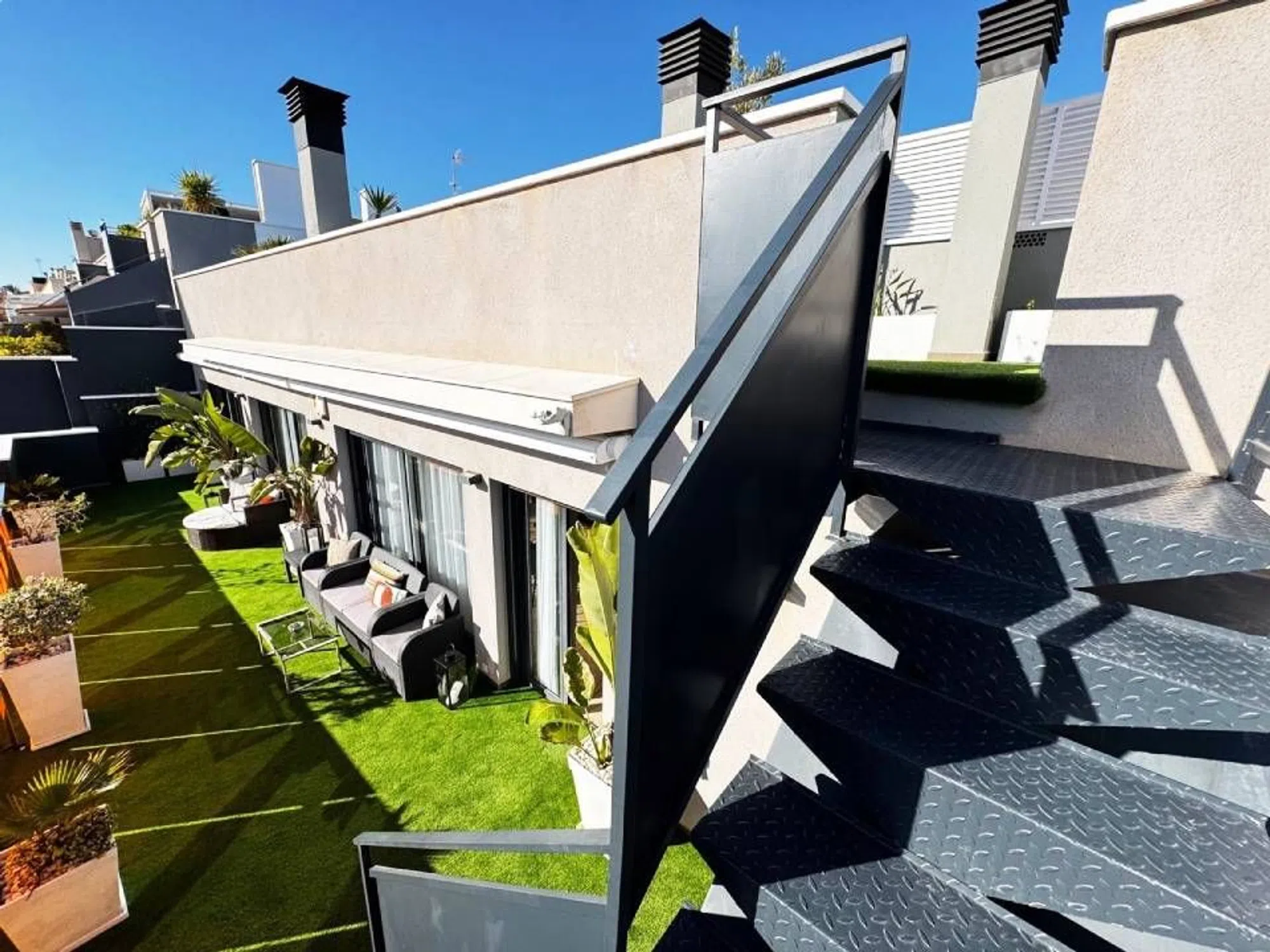 Ático con orientación sur en venta en una ubicación ideal en el centro de Torrevieja, a solo 700 m de Playa del Cura y Playa de los Locos, y a un paseo de todos los servicios. Este espacioso y luminoso ático cuenta con 4 dormitorios (el principal con vestidor y baño en suite), 2 baños, un amplio salón, un luminoso comedor con chimenea y cocina abierta, y un lavadero exterior. Dispone de una amplia terraza y un espacioso solárium con una caseta de madera de 35 m² con cocina, zona de barbacoa y sala de estar. El precio incluye 2 plazas de aparcamiento, trastero, aire acondicionado, suelo radiante en toda la casa y domótica. Está adaptado para personas con movilidad reducida y dispone de ascensor. Además, dispone de un jardín comunitario con piscina comunitaria y zona chill out, parque infantil, sauna finlandesa y solárium comunitario con zona de barbacoa. ¡No lo dude, esta es una oportunidad única!