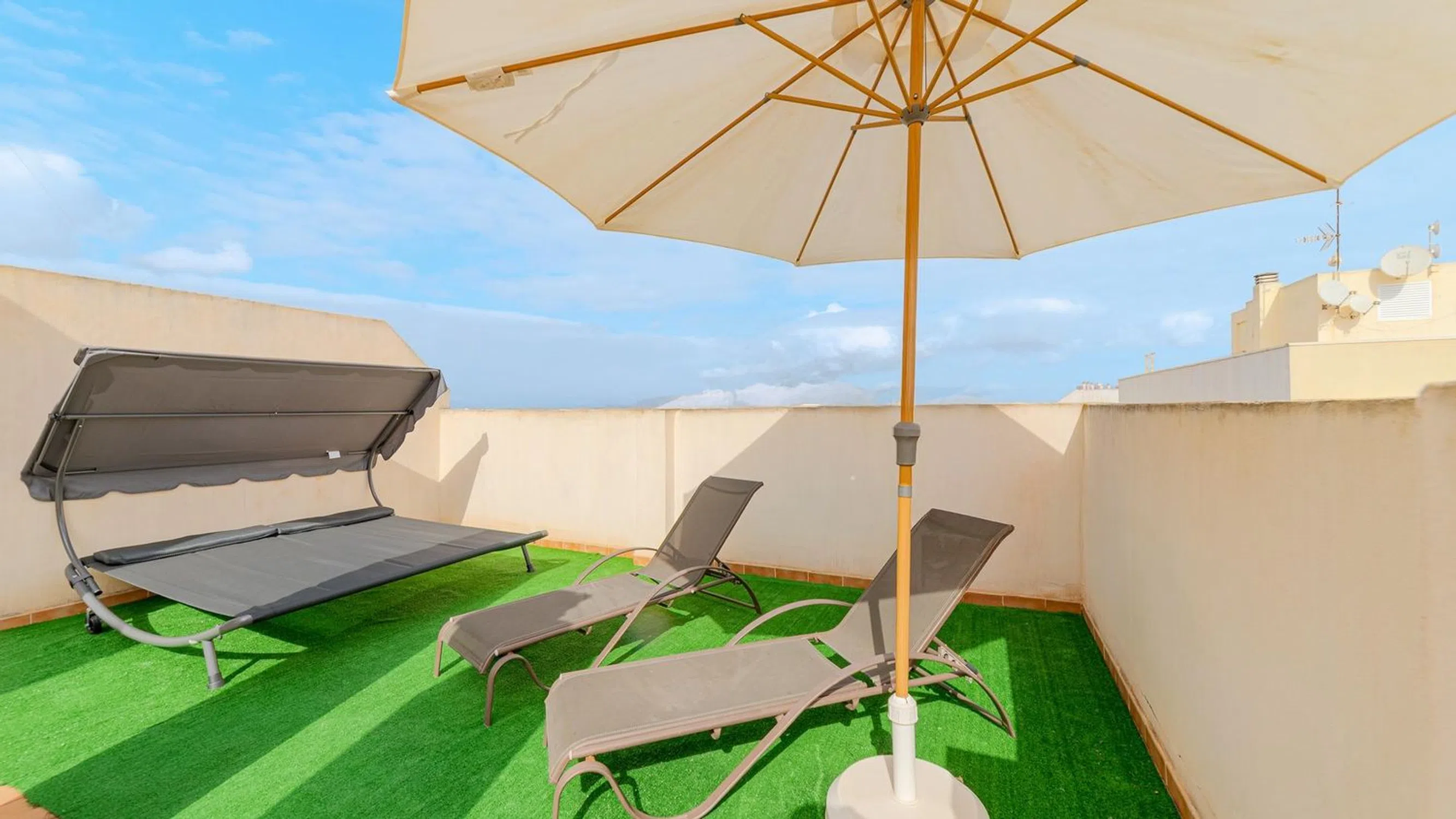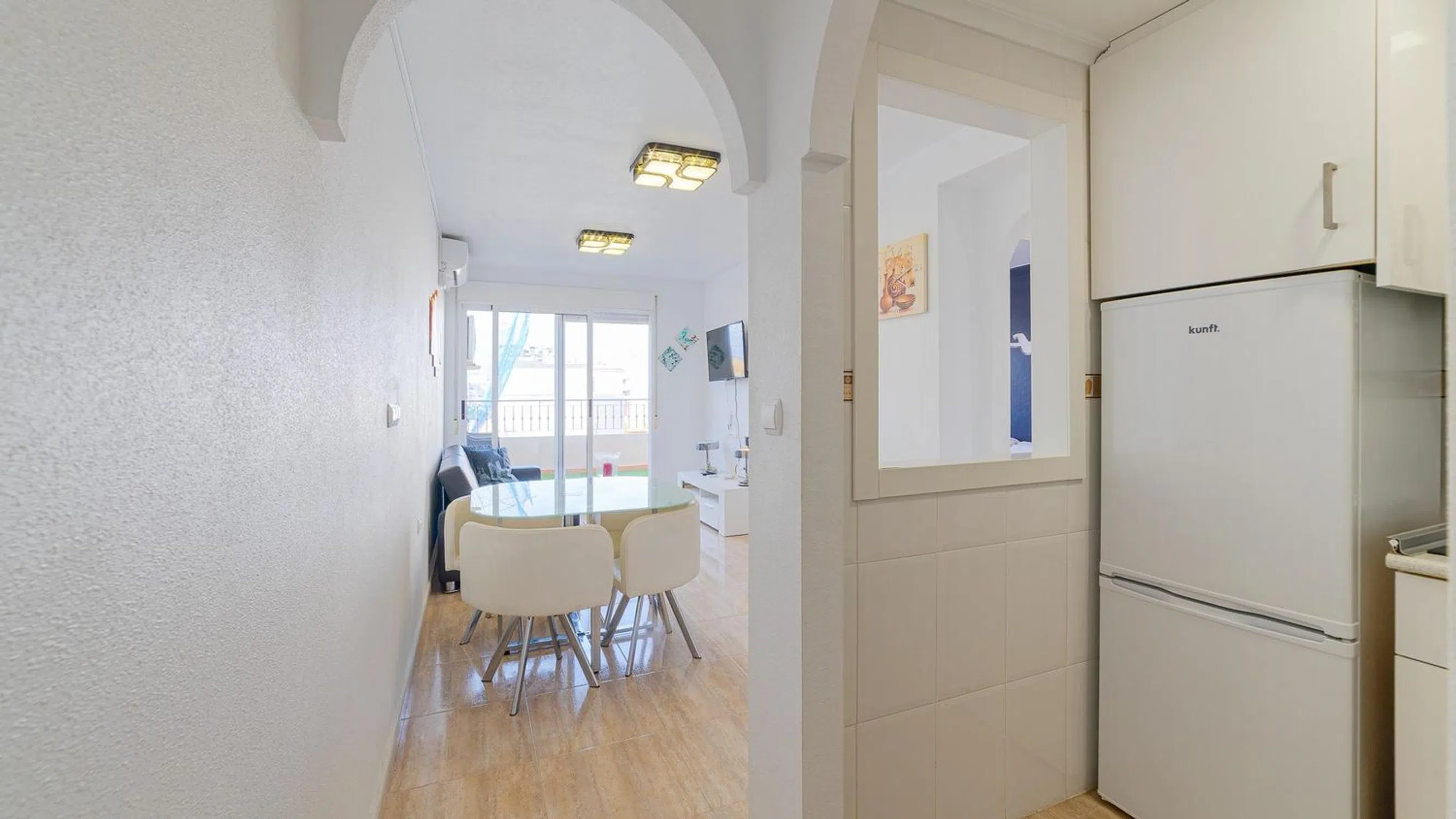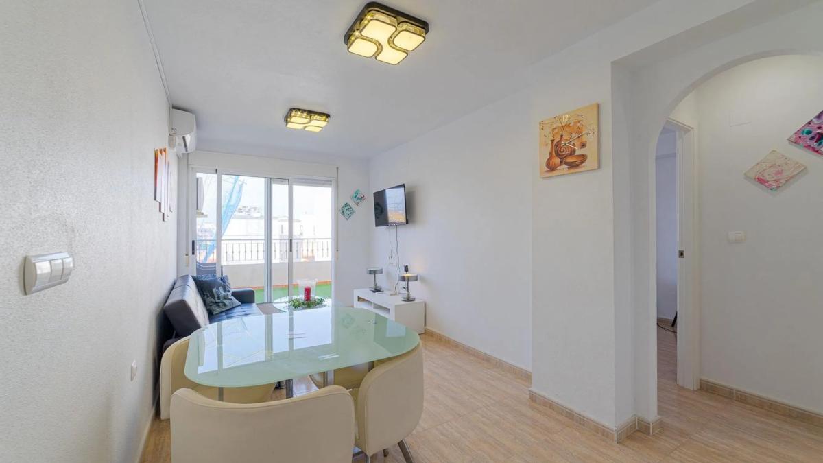 MAYMAR les presenta este acogedor ático ubicado en la Calle Santa Trinidad, en pleno corazón de Torrevieja, una de las zonas más codiciadas de la Costa Blanca. Situada a escasos minutos a pie del Paseo Marítimo y rodeada de todos los servicios, esta propiedad goza de una ubicación privilegiada que combina la tranquilidad residencial con la cercanía al ocio, comercios y playas. Con una superficie de 52 m2, esta vivienda se sitúa en una quinta planta de un edificio con ascensor, y destaca por su luminosidad y estado de conservación muy bueno. Representa una excelente opción tanto como residencia vacacional como para inversión con alta rentabilidad. En la zona de día encontramos un salón-comedor acogedor con acceso directo a una terraza soleada, ideal para disfrutar del clima mediterráneo. La cocina, integrada, está completamente equipada. La zona de noche dispone de un dormitorio doble con armario empotrado y un baño completo. Uno de los mayores atractivos de esta propiedad es su solárium privado, perfecto para tomar el sol con total privacidad o disfrutar de cenas al aire libre. Además, incluye plaza de garaje en el mismo edificio, lo que añade comodidad y valor. Gracias a su orientación oeste, la vivienda disfruta de luz natural durante toda la tarde y vistas despejadas que aportan amplitud y confort visual. Una propiedad práctica y con encanto, pensada para quienes valoran el confort, la funcionalidad y una excelente ubicación en el centro de Torrevieja.