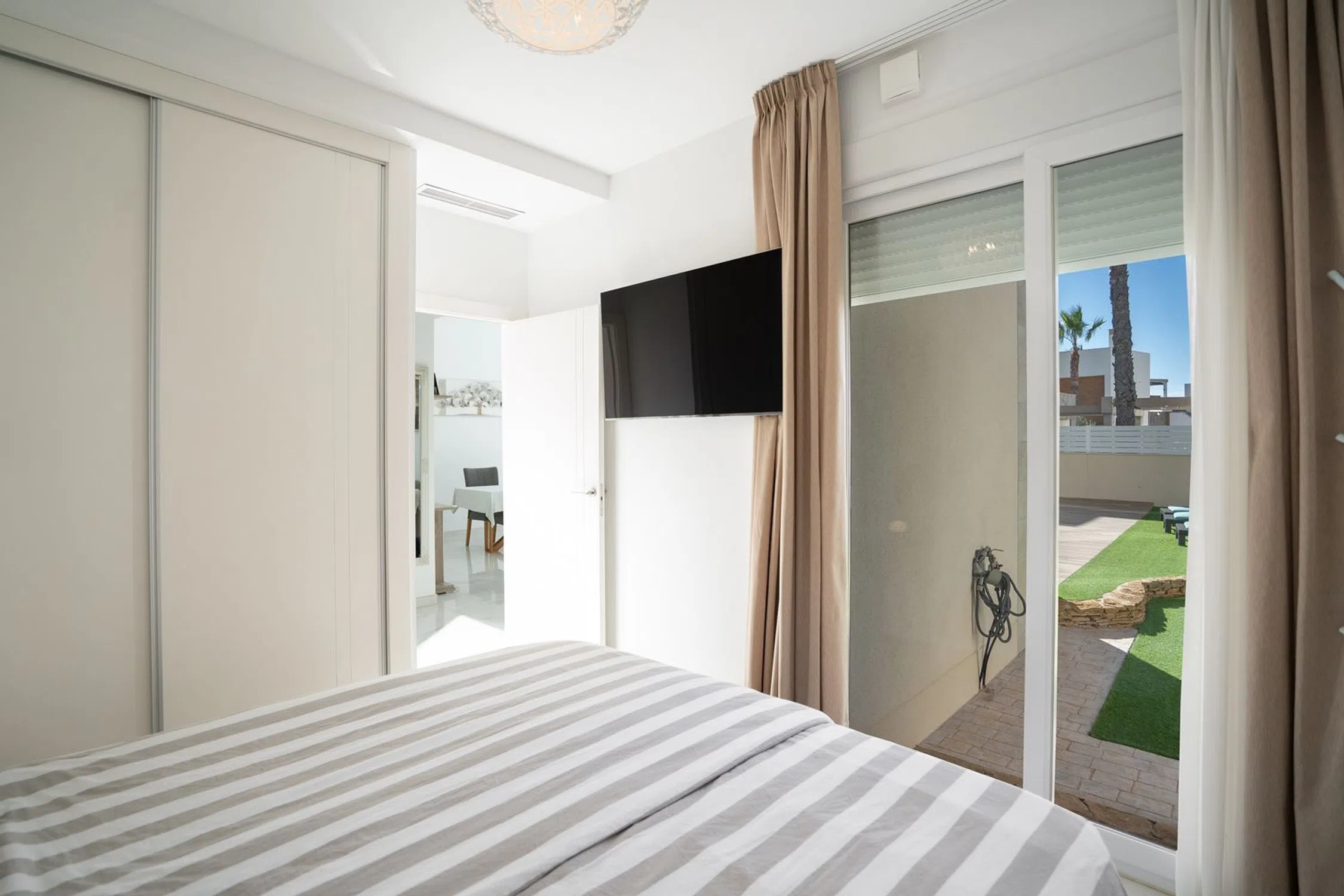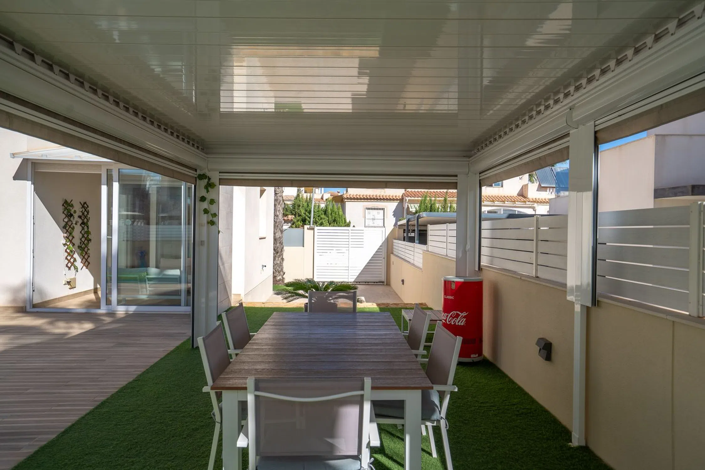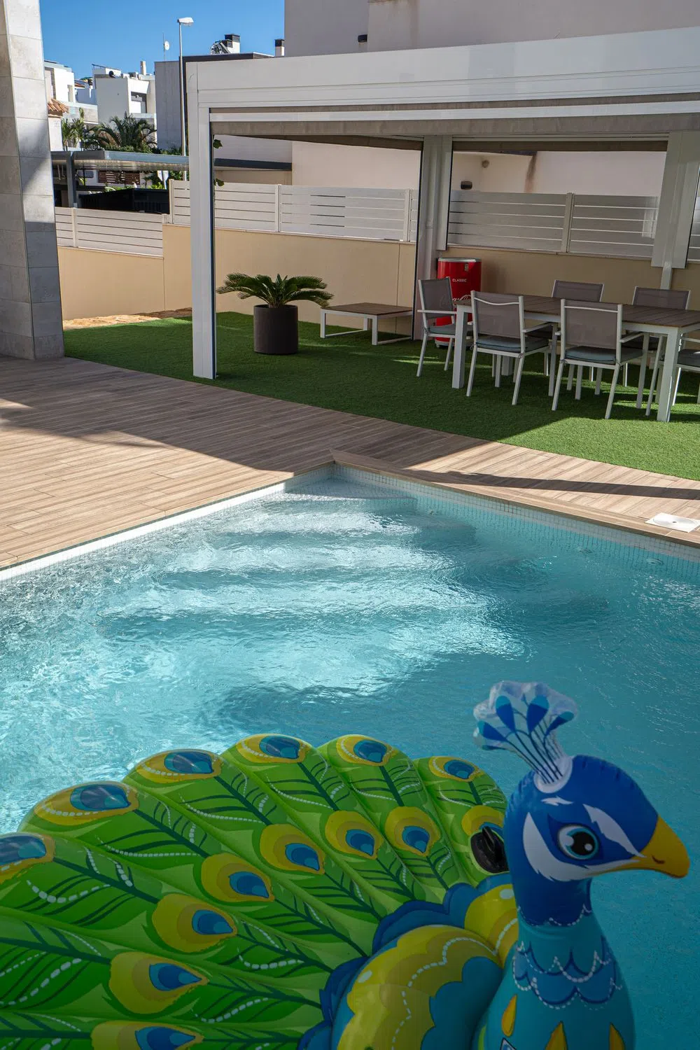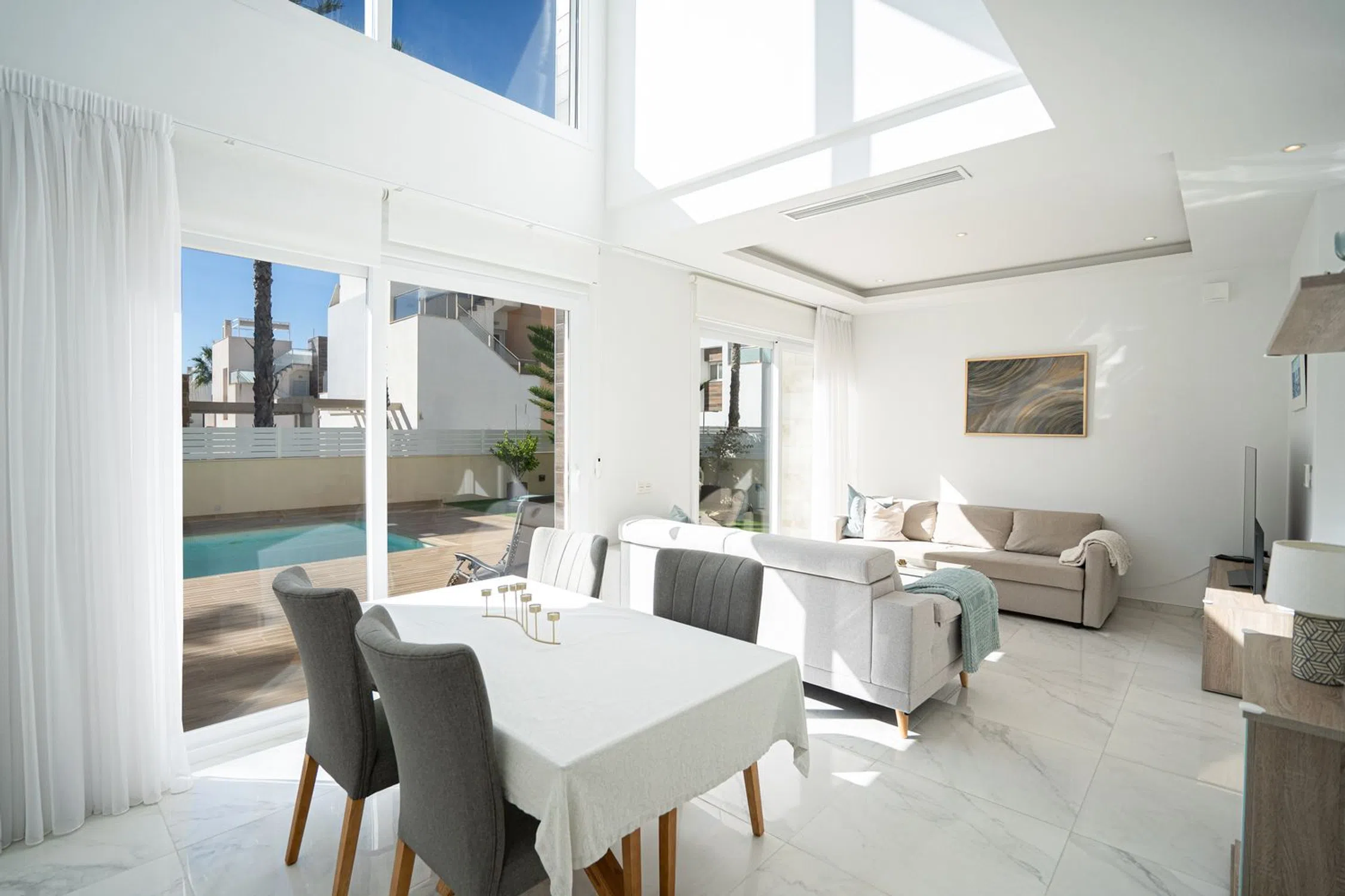 En SkandiaMäklarna, en Torrevieja, nos complace dar la bienvenida a nuestros clientes a esta espaciosa y moderna villa en la popular zona de Torre La Mata, al norte del centro de Torrevieja. La villa cuenta con una preciosa parcela verde con amplias terrazas y una atractiva piscina privada de agua salada. También dispone de aparcamiento. La casa se distribuye en dos plantas. En la planta baja se encuentran un dormitorio, un baño, el salón, la cocina y un invernadero acristalado. Bajo la escalera que conduce a la planta superior hay un trastero. Subiendo las escaleras, se accede a dos dormitorios con baño privado, uno de los cuales tiene acceso a un balcón. El recibidor de la planta superior se abre al salón, ofreciendo la posibilidad de habilitar un cuarto dormitorio si fuera necesario. En la planta superior se encuentra la gran terraza en la azotea con espectaculares vistas de los alrededores y del mar Mediterráneo. A pocos pasos encontrará una amplia variedad de restaurantes, bares y todos los servicios necesarios para su estancia en España, tanto si reside allí de forma permanente como si está de vacaciones. La playa más cercana, la popularísima playa de La Mata, está a un paso y atrae a cientos de miles de visitantes cada año. Además, cerca de acantilados desde los que se puede saltar, se encuentra Torrevieja, una ciudad con una amplia oferta de entretenimiento. Aquí podrá disfrutar de campos de golf, tiendas, rutas de senderismo en la montaña y otras actividades como el alquiler de barcos, motos acuáticas y mucho más. Hay opciones para todas las edades. La propiedad está ubicada en una zona tranquila con mucha vida y actividad durante todo el año. ¿Busca una casa exclusiva con espacio para toda la familia? Entonces, ¡ha encontrado el lugar perfecto! Bienvenido a casa.