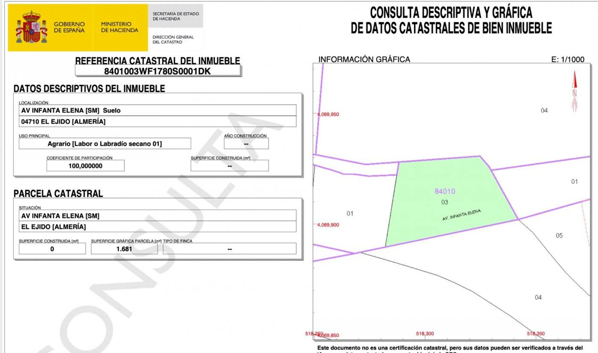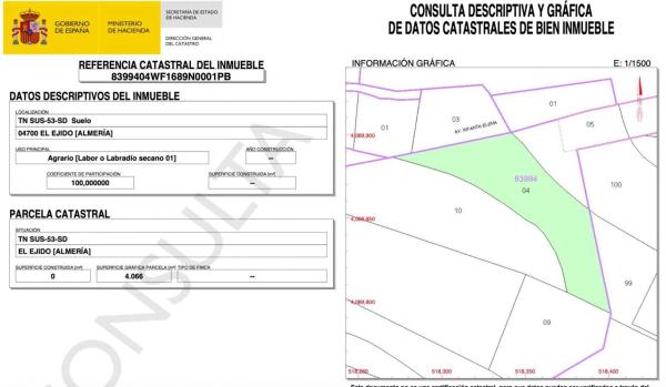 Se vende finca de 6.000 m2 perfecta para invernadero con 12 horas de agua. Con posibilidad de alquiler de otros 6.000 m2 lindantes. Ubicada a la entrada de El Ejido detrás de Ejido Hotel. Esta finca es una buena oportunidad con gran proyección de futuro dada su ubicación y el proyecto de actuación de la zona a residencial revalorizando esta en un futuro pudiendo rentabilizarla haciendo un invernadero ahora y vendiendola mas tarde cuando se revalorice. Si desea mas información no dude en consultarnos y no deje escapar esta oportunidad.
