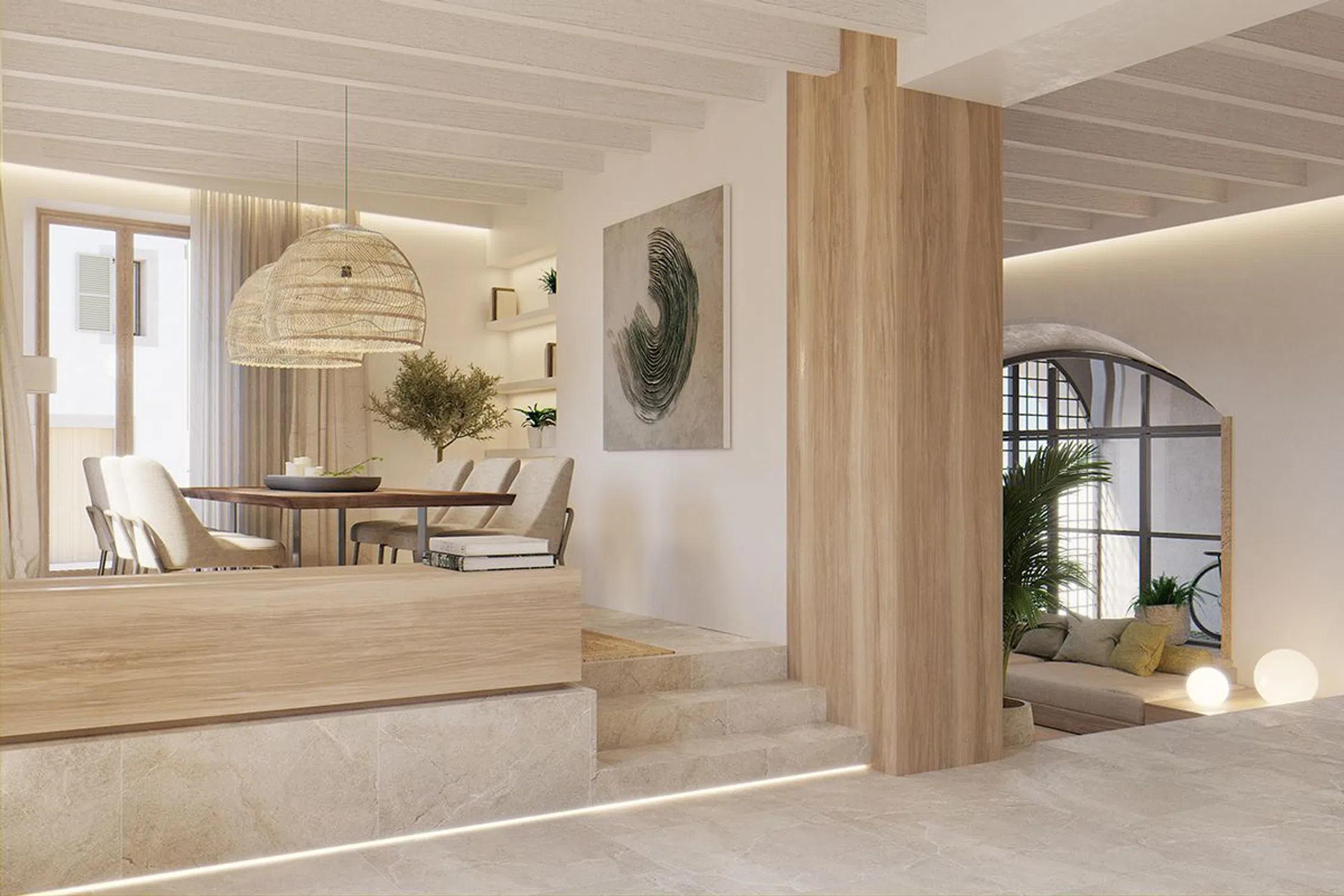 A partir de 2.200. 000 -Piscina (agua salada) - Patio interior - Garaje - Ascensor - Ventanas (vidrio de seguridad, madera) - Persianas (madera) - Sistema de bomba de calor (Altherma) Le espera una preciosa vivienda de nueva construcción en el corazón de la ciudad de Artà, en el noreste de la isla de Mallorca. La propiedad le ofrece 234 m² de superficie habitable distribuidos en 3 plantas sobre un terreno de 183 m². La zona de entrada es diáfana y luminosa. Desde ella se accede al amplio salón con techos altos y vistas al cuidado patio interior con piscina. La gran cocina-comedor, equipada con modernos electrodomésticos, satisfará todas sus necesidades. Desde el salón también se accede a la bodega de la casa, que ha sido maravillosamente decorada con piedras marinas e iluminación indirecta. En la primera planta se encuentran dos de los cuatro dormitorios con baño en suite. En la segunda planta, a la que se puede acceder tanto en ascensor como por las escaleras, se encuentra el precioso dormitorio principal con vestidor y baño en suite, otro dormitorio con bano en-suite, así como una bonita y acogedora terraza con vistas al patio interior. Una vivienda de ensueño moderna en la popular ciudad artística de Artà. Póngase en contacto con nosotros para concertar una cita para visitarla. Esperamos su llamada.