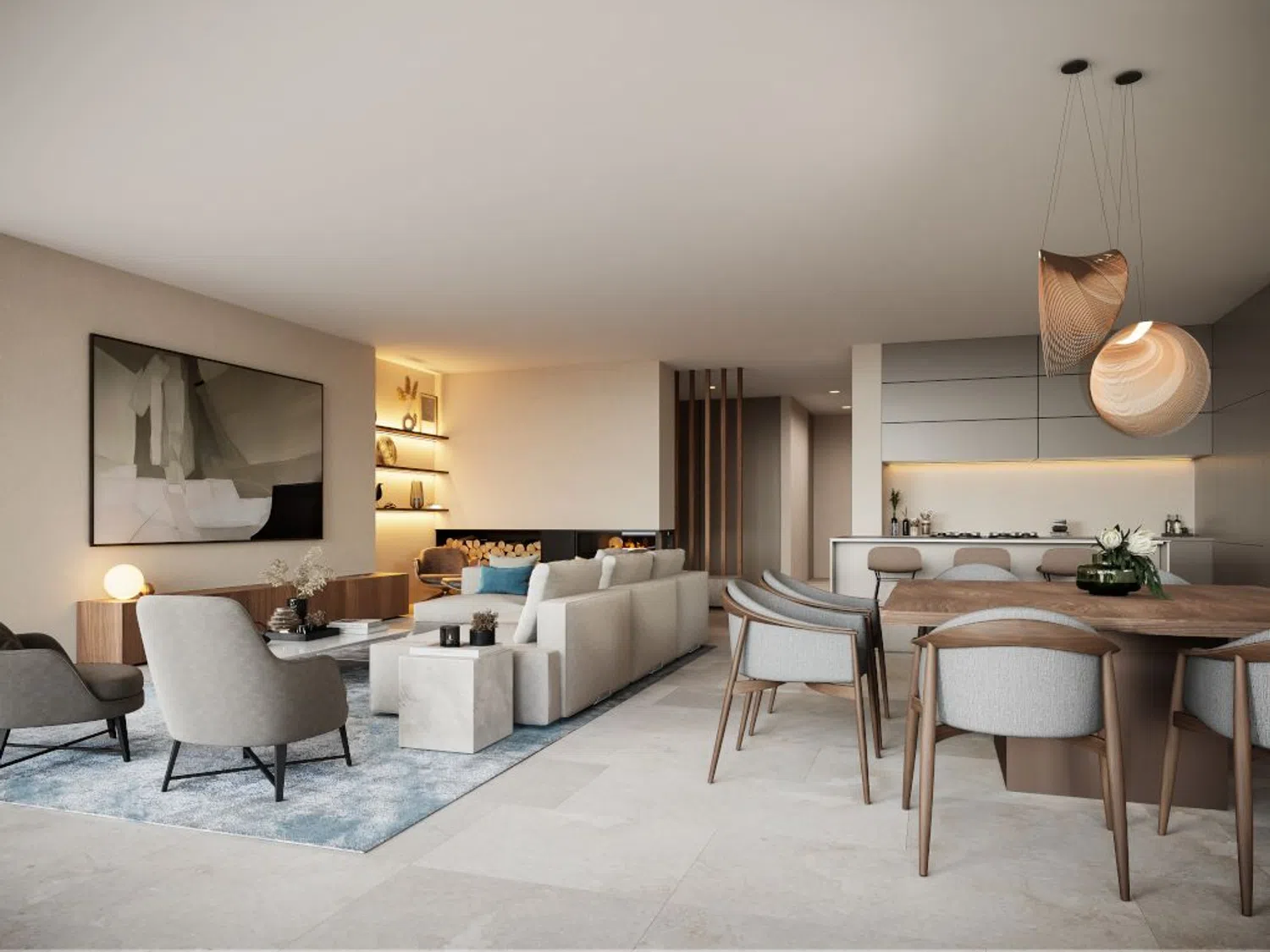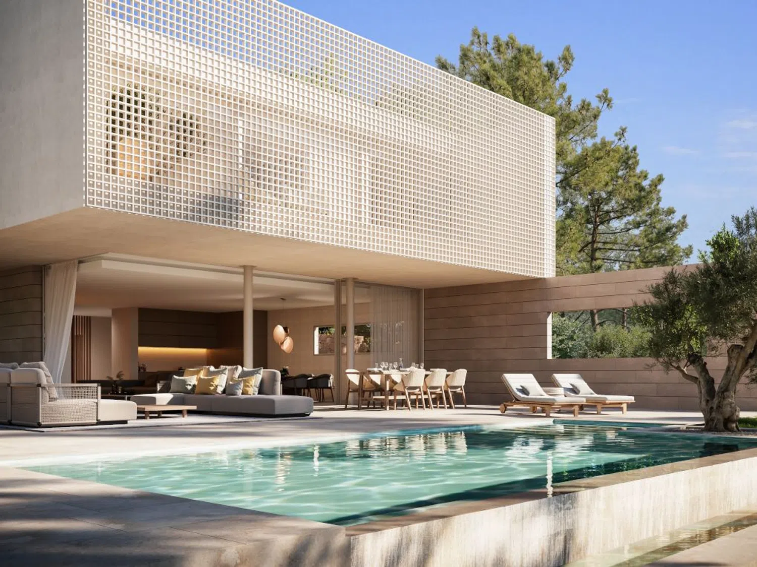 Все спальни (3-4) просторны и оснащены встроенными шкафами и собственными ванными комнатами. Главная спальня обладает ванной комнатой с огромным душем с гидромассажем. Главной частью вилл является гостиная и столовая с открытой кухней, имеющей остров и окна от пола до потолка, которые полностью открывают выход на террасу и в сад с бассейном, обеспечивая плавный переход от внутренних помещений к жизни на открытом воздухе. Пол из крупноформатного натурального камня во всём доме и на террасах создаёт дополнительное ощущение простора. Деревянные элементы и тёплое освещение создают уютную атмосферу. Виллы оборудованы встроенной техникой, минималистичными окнами, системой умного дома, индивидуально регулируемым кондиционированием и тёплым полом. Каждая вилла имеет гараж или крытую парковку для нескольких машин.