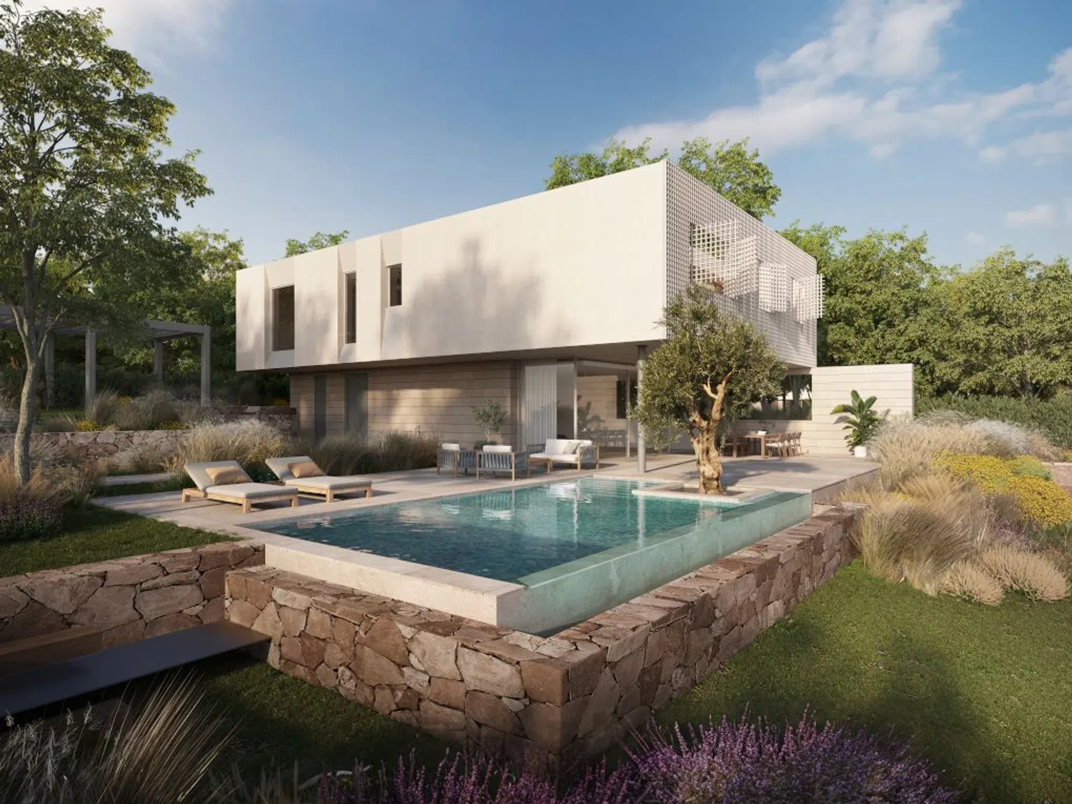 11 вилл объединены некоторыми элементами дизайна и отличаются архитектурой с чистыми линиями и современной интерпретацией традиционной решётки. Они также гармонично сочетают внутренние и внешние пространства. Виллы обеспечивают уединение и тишину. При планировке было уделено особое внимание ориентации зданий для максимальной приватности. В то же время ощущение сообщества создается благодаря дорожке, соединяющей все дома с частной зелёной зоной. Было уделено внимание использованию местных и устойчивых материалов, а металлические решетки вокруг передних спален не только служат визуальным акцентом, но и позволяют свободному циркулированию воздуха, фильтруя солнечный свет и сохраняя прохладу в домах. Это также позволяет превратить спальни и террасу в уединённый оазис спокойствия.
