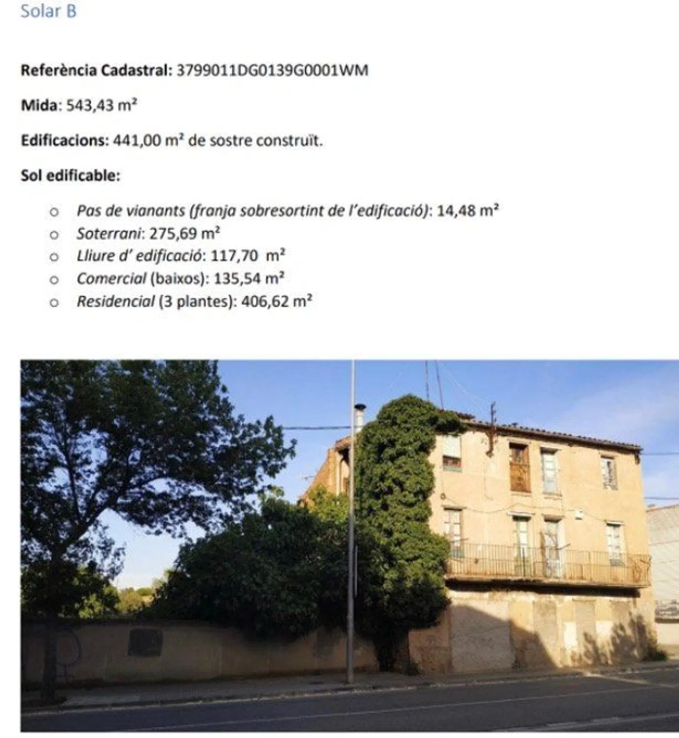 Dos solars en venda amb moltes posibilitats, en total sumen 1.442 M2 de parcela amb una capacitat residencial de 1.069 m2 de vivienda ( unes 8-10 vivendes) y 356 m2 comercials. Situat en una bona zona comercial, al costat del Mercadona i el supermercat dia. Molt ben comunicada, i de fàcil accés.