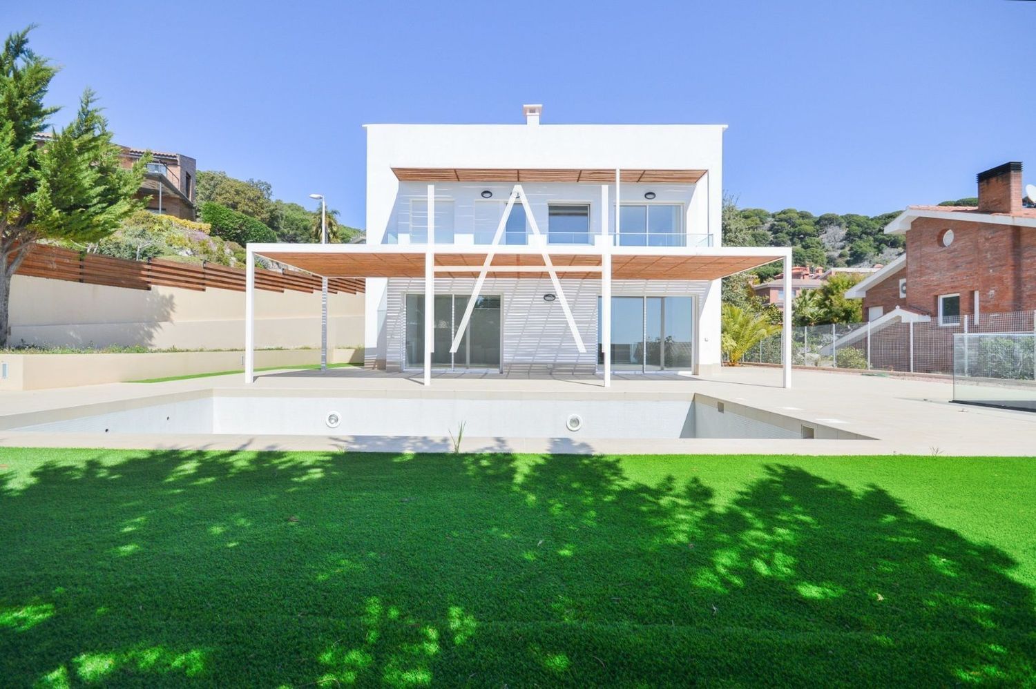 Costa de Barcelona · El Maresme · Teià Excelente casa de diseño de 401m2 construidos situada en la urbanización privada de Sant Berger con vigilancia 24h y a un paso del conocido Club de Tennis Barcelona - Teià. Un entorno con amplias y cuidadas zonas ajardinadas y vistas despejadas que acompañan perfectamente con el clima mediterráneo. Muy bien comunicada, a tan sólo 5 minutos del acceso a Autopista C-32, a 25 km de la ciudad de Barcelona y a 35 km del Aeropuerto del Prat. La vivienda dispone de espacios muy luminosos gracias a las lineas que consigue el diseño moderno y unos grandes ventanales que permiten una gran entrada de luz natural. Accediendo a la casa, en planta principal nos encontramos con un amplio salón comedor con chimenea y salida directa a jardín y zona porche y una moderna cocina office. Esta misma planta cuenta con un aseo de cortesía, además de un ascensor que comunica con todas las plantas. La primera planta dispone de tres dormitorios, uno de ellos en suite y dos dobles, con acceso a una terraza y dos cuartos de baño. En la ultima planta, cuenta con un amplio dormitorio muy luminoso con salida a exterior, un vestidor y un baño completo. Dispone de un gran garaje con capacidad para 4 vehículos, sala de juegos, bodega, trastero, sala de máquinas y cuarto de lavandería. En la zona exterior cuenta con un amplio jardín con piscina y una zona porche donde relajarse frente al mar mediterráneoConsulte nuestro catálogo de propiedades en nuestra pagina web.Access Home · Real Estate.