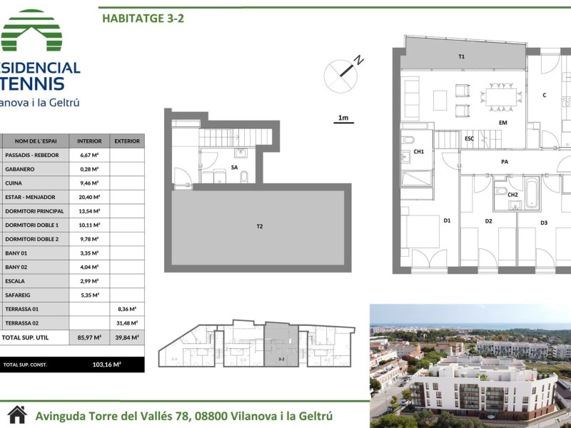 Sitges Quality Developments presenta su nueva promoción exclusiva de viviendas en Vilanova i la Geltrú.Un complejo residencial magnifico de tan solo 16 viviendas que consiste en unidades de 2 a 4 habitaciones, con terrazas y balcones, plantas bajas con jardínes y dúplex con grandes terrazas.El proyecto cuenta con una zona comunitaria con piscina y parking subterráneo.Residencial Tennis se caracteriza por sus excelentes calidades de acabados y sistema de climatización & A. C. S. (tanto en salón como en dormitorios) mediante aerotermia, energía renovable. Es por ello, que esta promoción se convierte en un residencial que apuesta por la sostenibilidad y eficiencia energética.Residencial Tennis, recibe el nombre debido a su ubicación que se encuentra muy próximo a de Tennis Club.Con una ubicación Premium, en una zona tranquila, próxima a colegios, polideportivo y próximamente a una importante cadena de supermercados y con fácil acceso desde la autopista C-31.