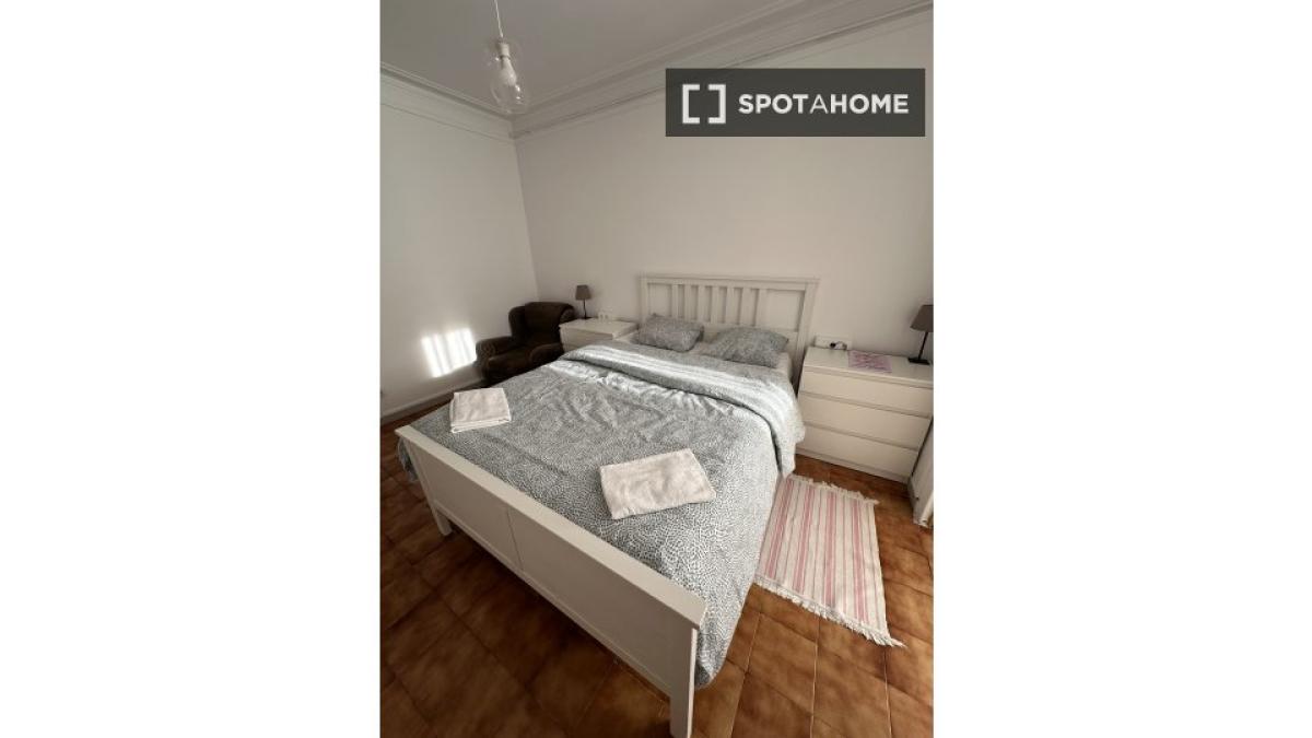 Cama doble en habitación en piso compartido de 7 habitaciones en alquiler en El Gòtic, apto para profesionales o estudiantes
