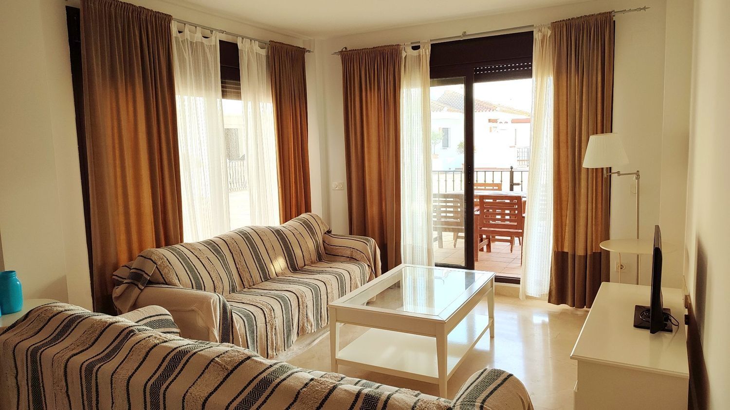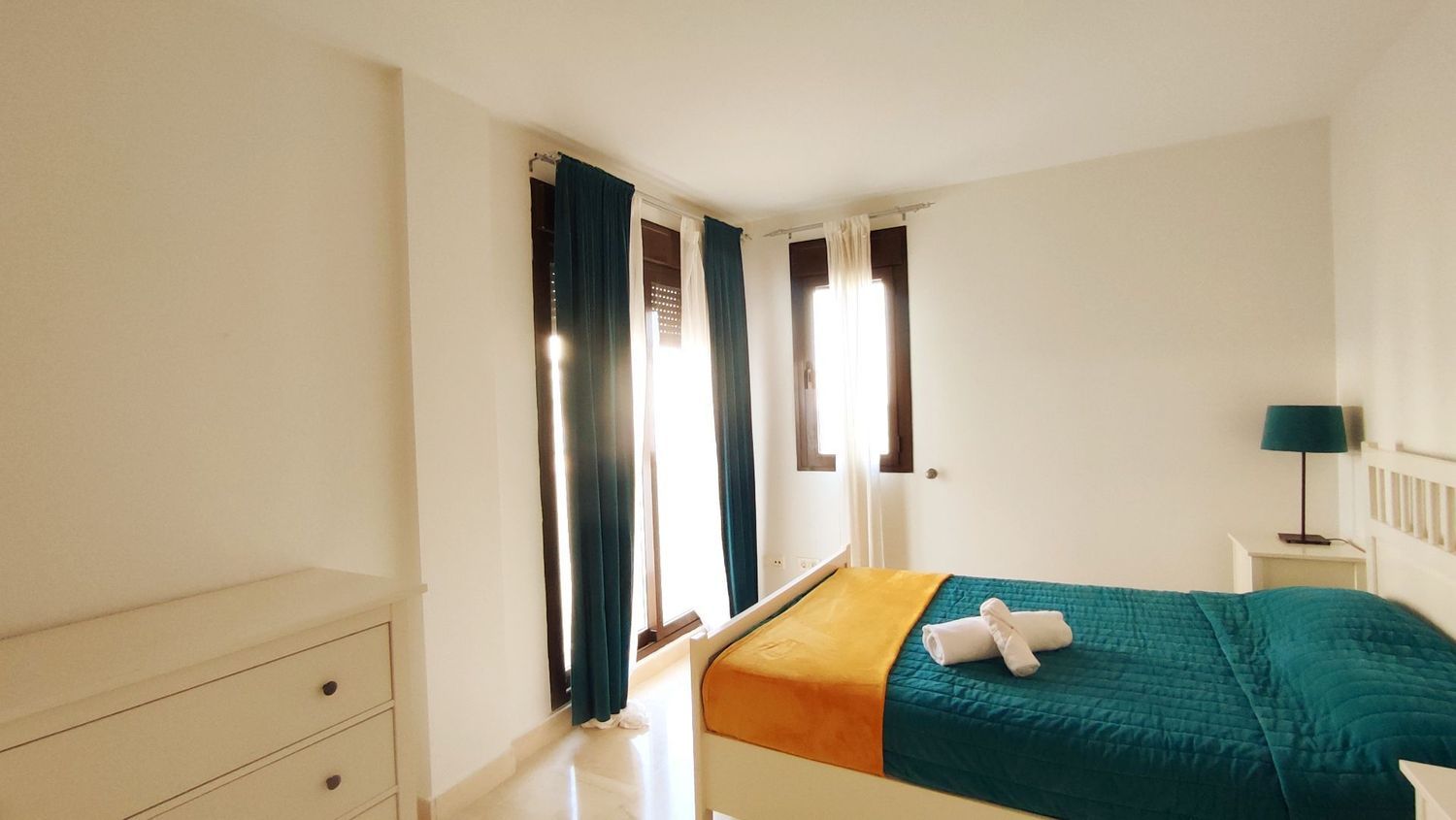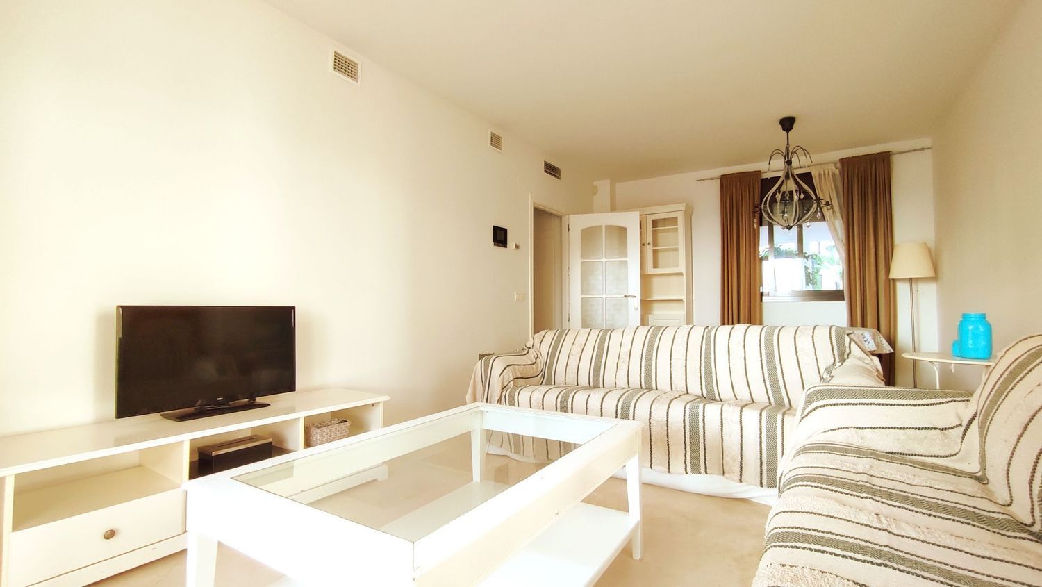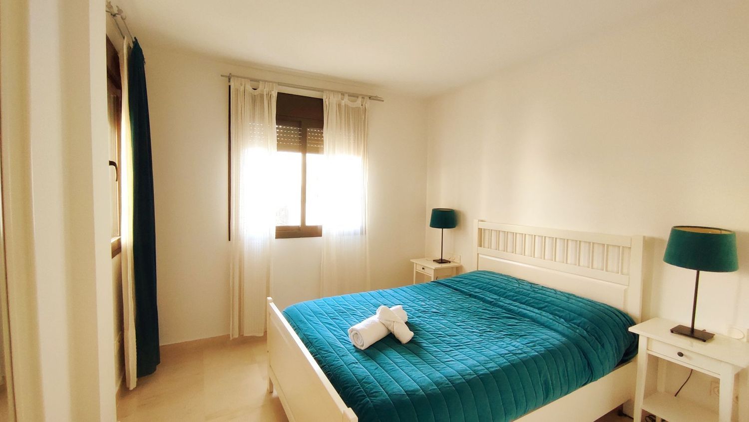 Los honorarios de la inmobiliaria van por cuenta de la propiedad; el inquilino NO PAGA nada a la inmobiliaria.DISPONIBLE HASTA EL 30 DE JUNIOAcogedor apartamento completamente amueblado de dos habitaciones, terraza y plaza de aparcamiento privada cuyo acceso y salida es de los más prácticos del garaje comunitario, muy cerca del ascensor que da acceso a la vivienda.Tiene tres piscinas comunitaria de mayo a octubre, dos de ellas comunicadas por una catarata.El apartamento se alquila amueblado y con todo el menaje que se necesita para vivir, incluso el menaje de cocina. Este apartamento consta de una acogedora entrada que de frente da lugar a un amplio y luminoso salón comedor, con acceso a la terraza. Tiene una cocina equipada con espacio de lavandería y en la parte derecha del apartamento encontramos dos amplias y lumninosas habitaciones, una de ellas con baño en suite. Toda la casa tiene armarios empotrados por lo que le da amplitud. Los suelos son de mármol y gres y las ventanas de climalite.Las cuotas comunitarias y de la macrocomunidad, tanto ordinarias y extraordinarias van por cuenta de la propiedad, siendo una cifra importante en su totalidad.Los gastos de electricidad, agua, basuras y cualquier otro servicio que contrate el inquilino, irán por cuenta de éste. [IW].